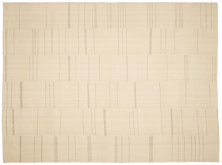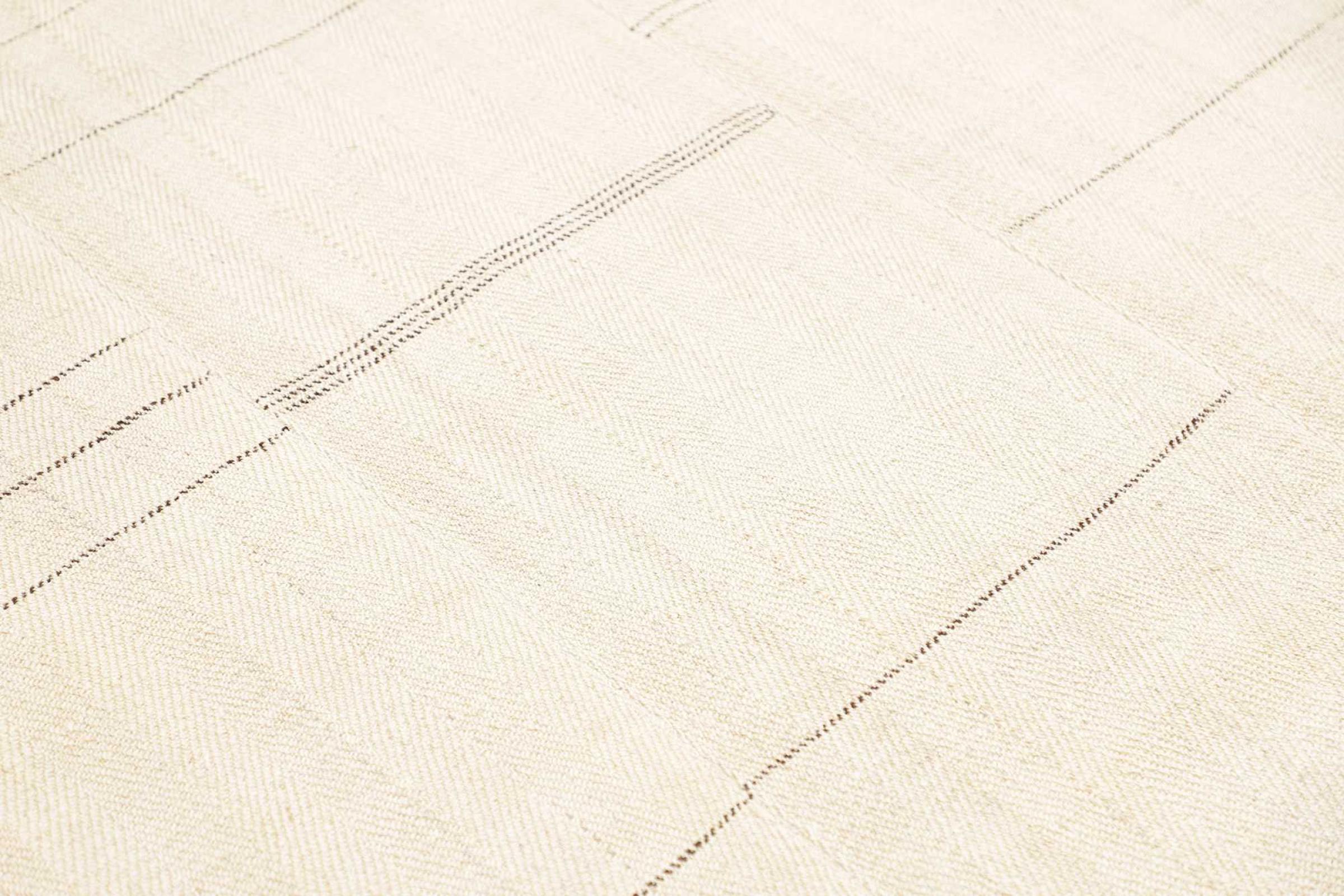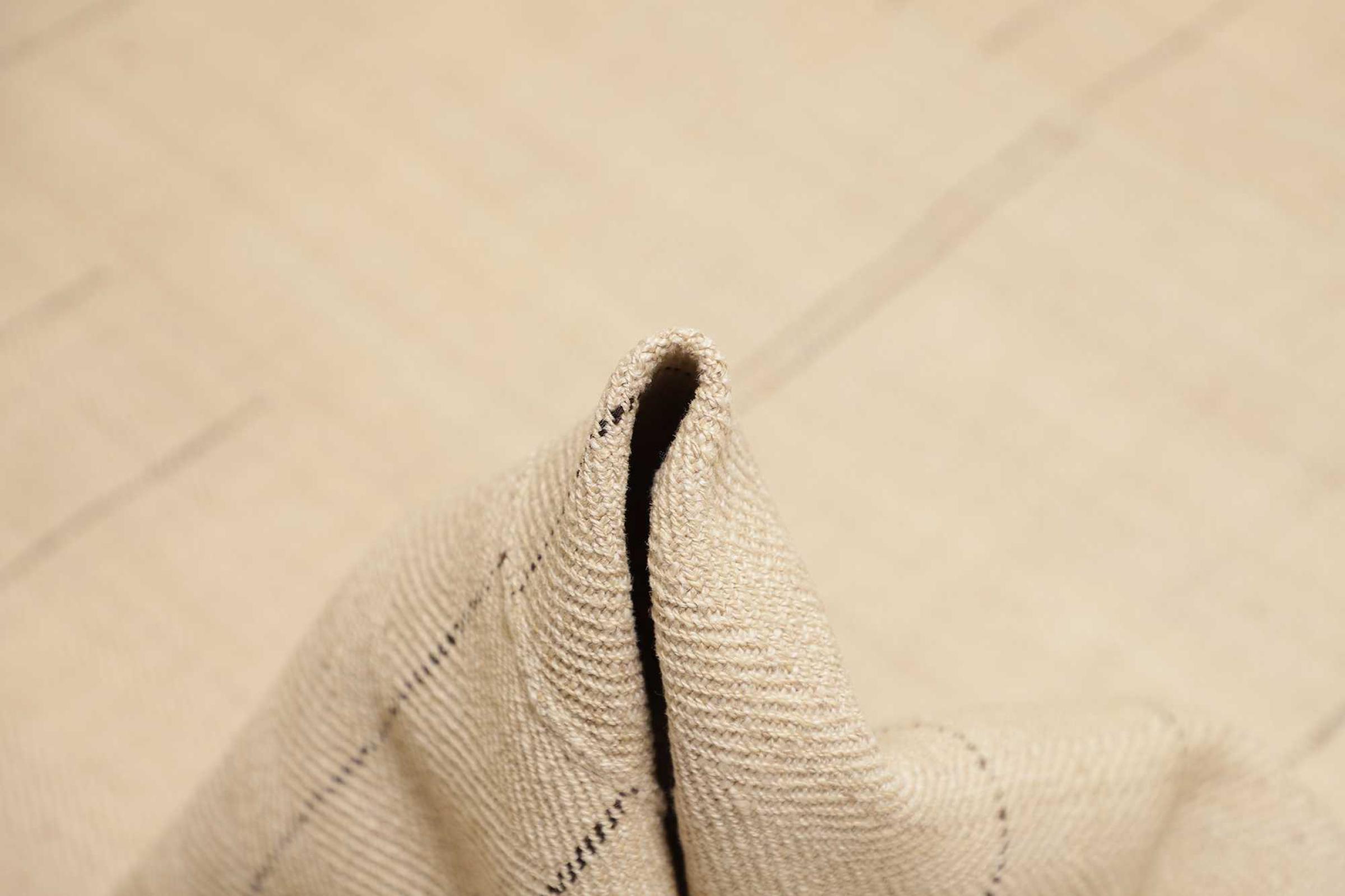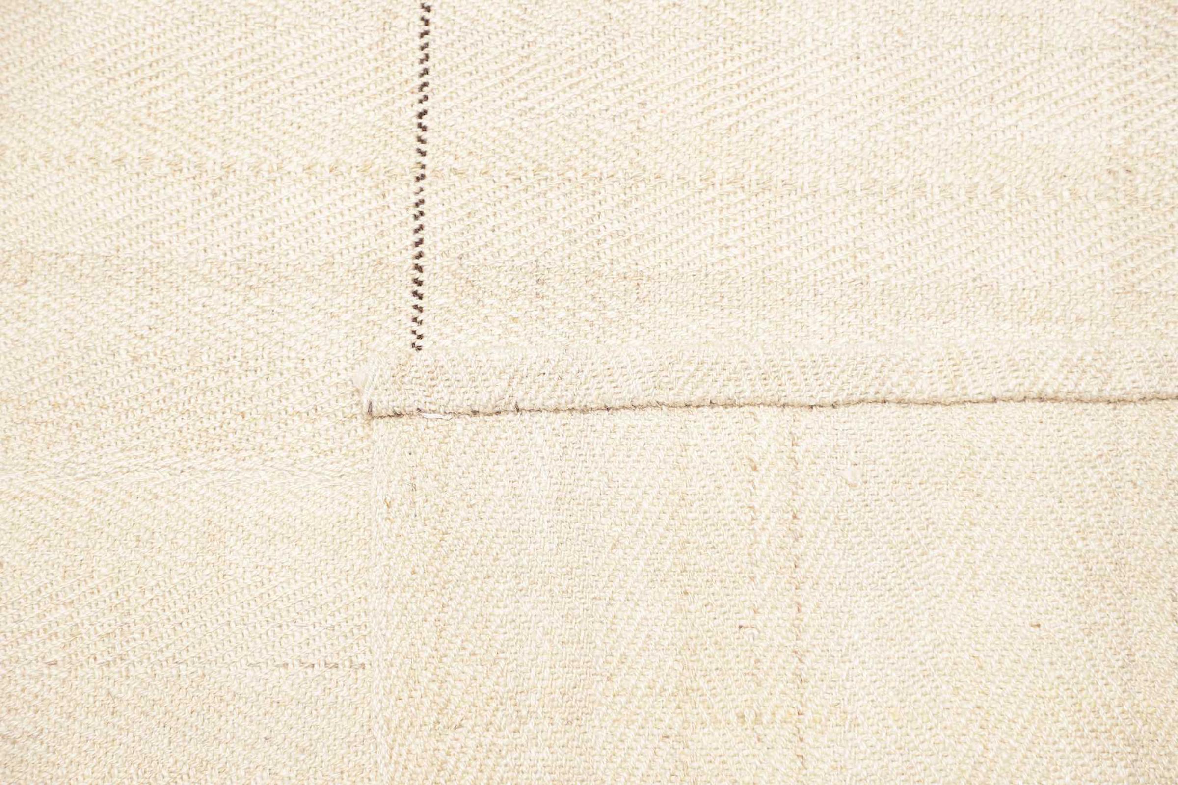 Este tapete foi feito à mão sobre um tear como uma trama plana. Flatweave é o termo utilizado para descrever tapetes que não têm pêlo. Como o nome promete, estes tapetes são tecidos e não atados. Isto resulta num tapete plano com uma superfície estruturada. Os tecidos planos não são tão macios e geralmente mais finos do que os tapetes com nós. Ao mesmo tempo, são muito menos complexos de fabricar e podem normalmente ser dispostos de ambos os lados (frente e verso). Os seus padrões são normalmente geométricos, o que é determinado pelo tecido.