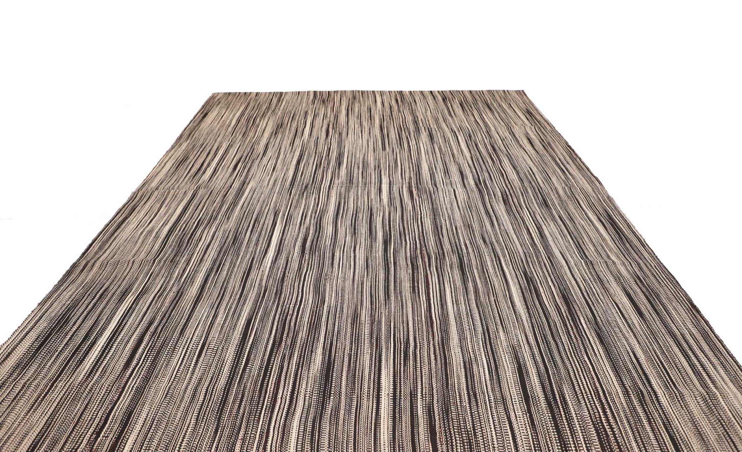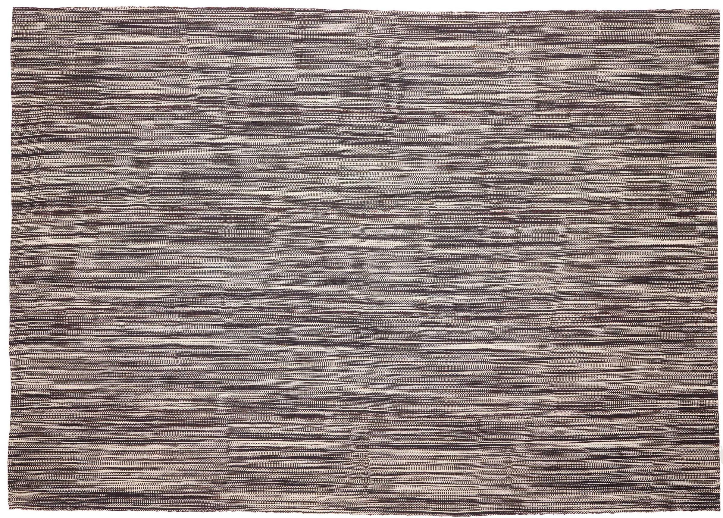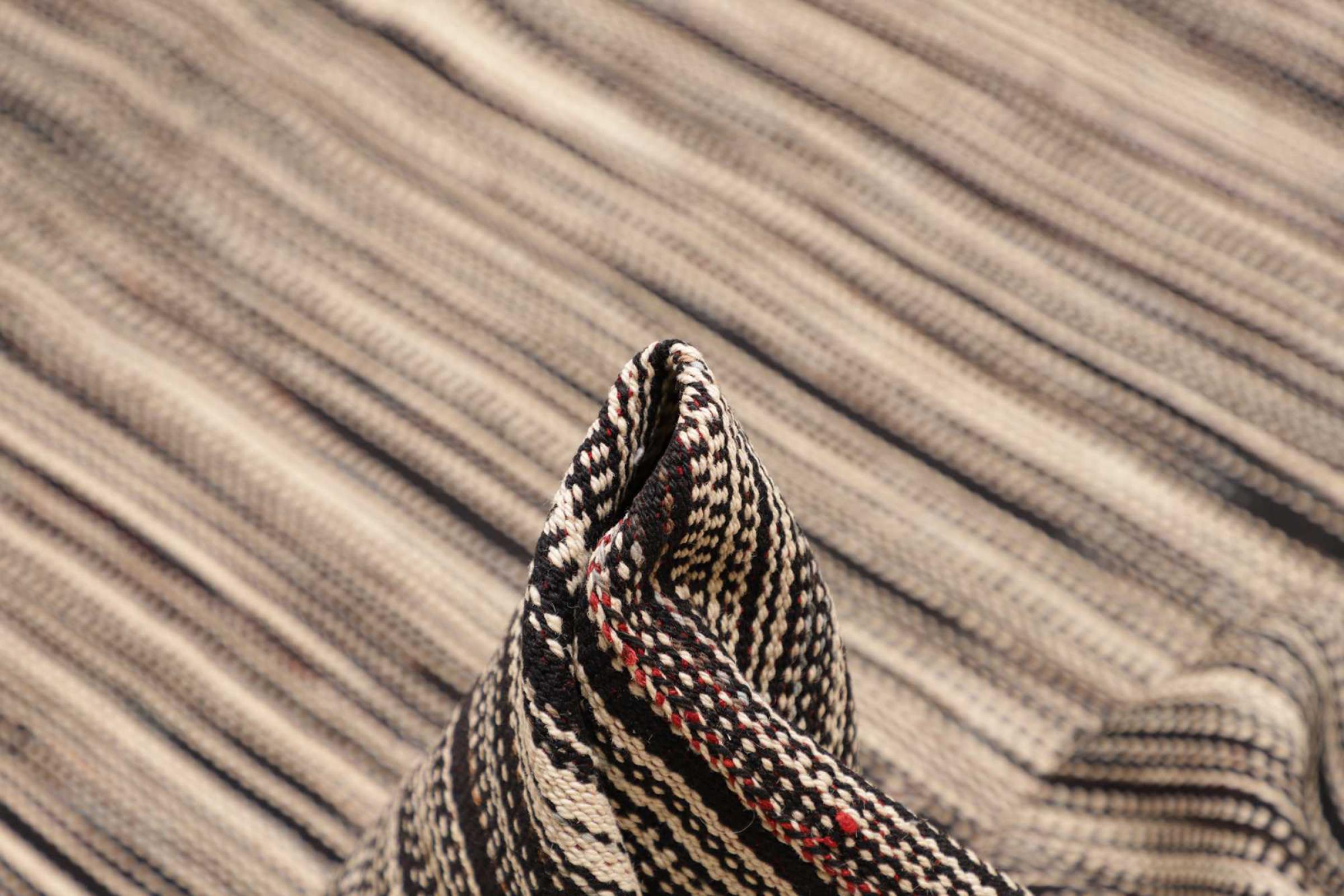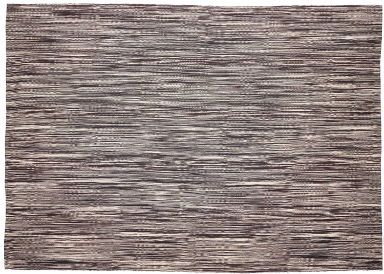 Este tapete foi feito à mão sobre um tear como uma trama plana. Flatweave é o termo utilizado para descrever tapetes que não têm pêlo. Como o nome promete, estes tapetes são tecidos e não atados. Isto resulta num tapete plano com uma superfície estruturada. Os tecidos planos não são tão macios e geralmente mais finos do que os tapetes com nós. Ao mesmo tempo, são muito menos complexos de fabricar e podem normalmente ser dispostos de ambos os lados (frente e verso). Os seus padrões são normalmente geométricos, o que é determinado pelo tecido.