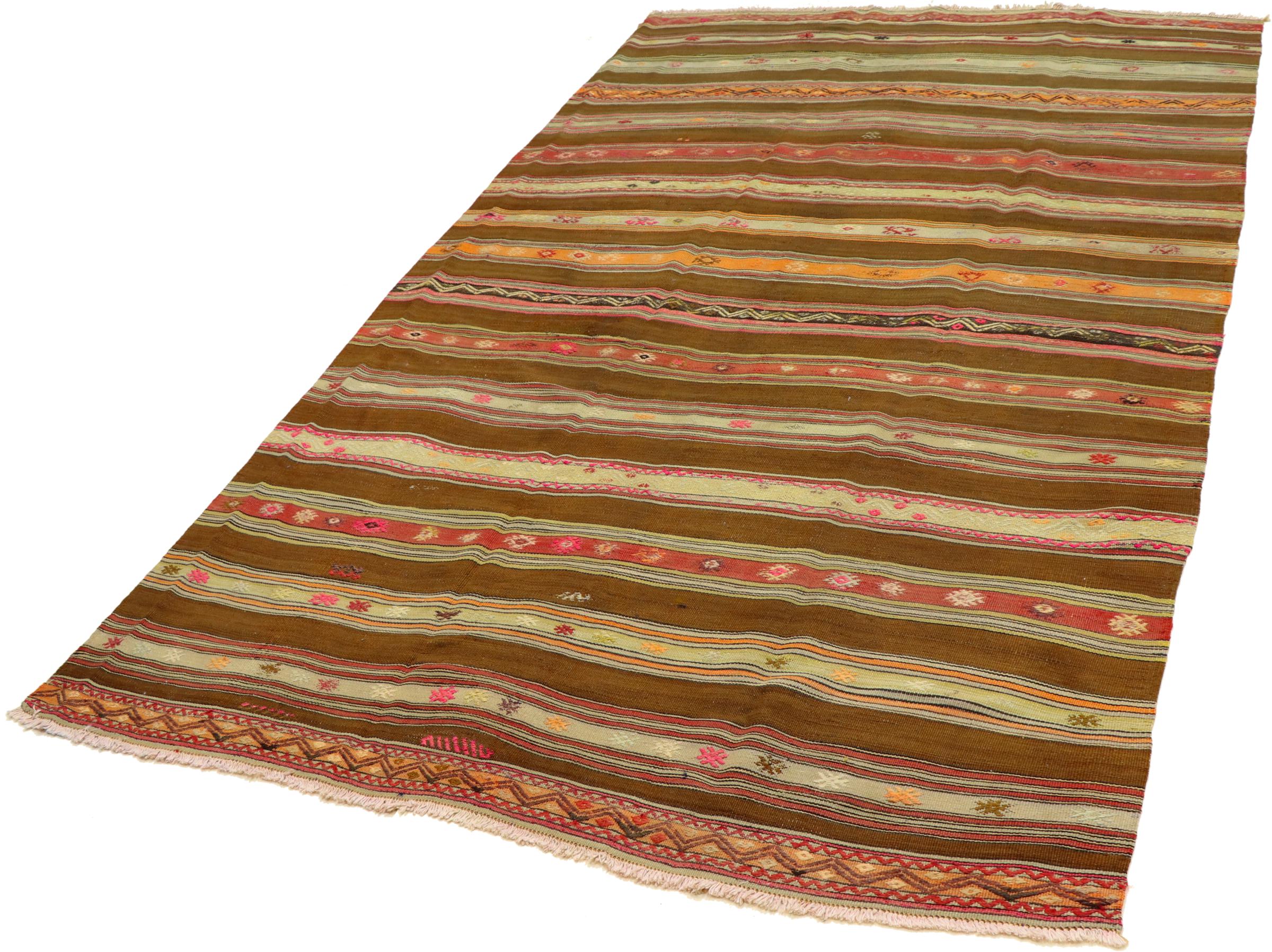 Estes tapetes quilim mostram uma diferença decisiva em relação aos tapetes feitos à mão - são tecidos à mão. Assim, não têm uma grande pilha de lã e são frequentemente mais achatados e ásperos do que os tapetes de lã nodados. O seu fabrico é menos elaborado e, por isso, são normalmente muito mais baratos. Como vantagem, os tapetes kilim são também muito mais leves e podem ser colocados pela frente e por trás. Os quilims tecidos à mão provêm originalmente da antiga Pérsia e são agora frequentemente fabricados também no Afeganistão. Têm padrões bastante simples e simples, que se devem à sua técnica de tecelagem.