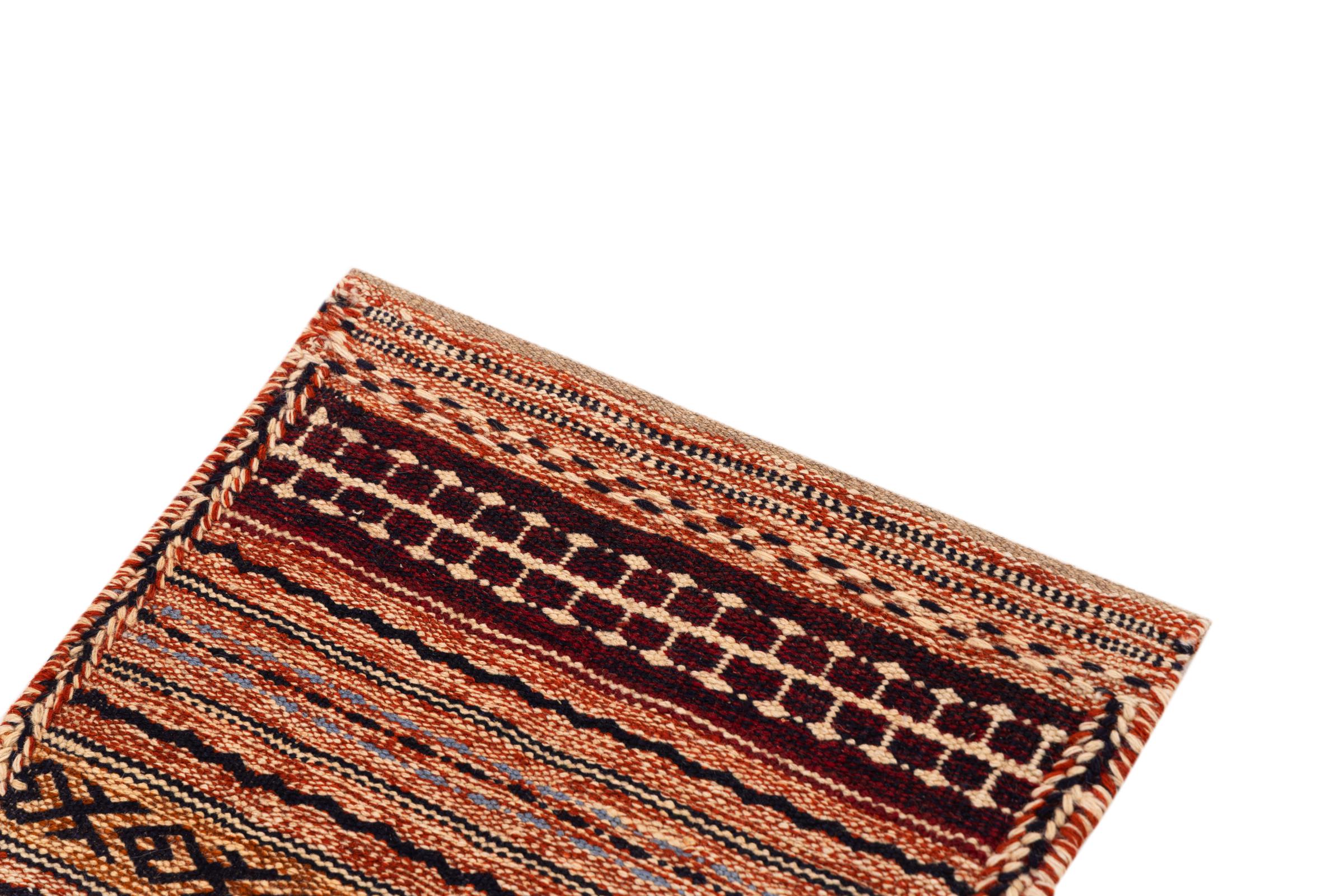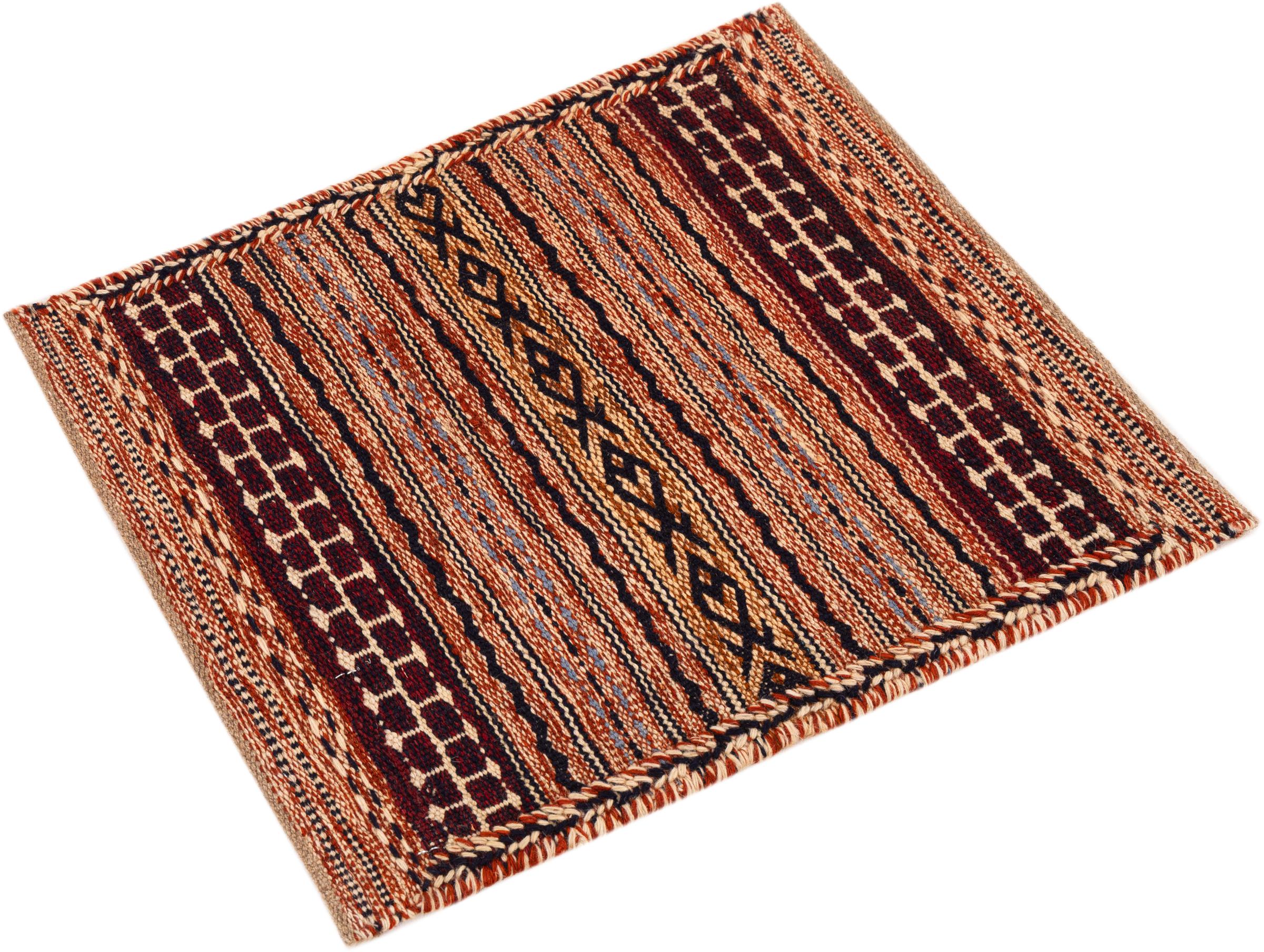 Este tapete foi feito à mão sobre um tear como uma trama plana. Flatweave é o termo utilizado para descrever tapetes que não têm pêlo. Como o nome promete, estes tapetes são tecidos e não atados. Isto resulta num tapete plano com uma superfície estruturada. Os tecidos planos não são tão macios e geralmente mais finos do que os tapetes com nós. Ao mesmo tempo, são muito menos complexos de fabricar e podem normalmente ser dispostos de ambos os lados (frente e verso). Os seus padrões são normalmente geométricos, o que é determinado pelo tecido.