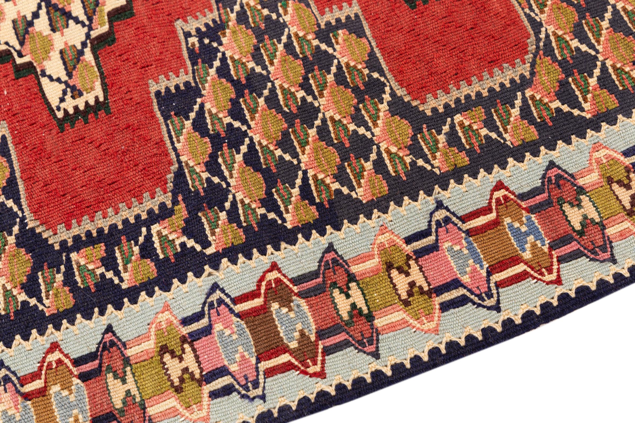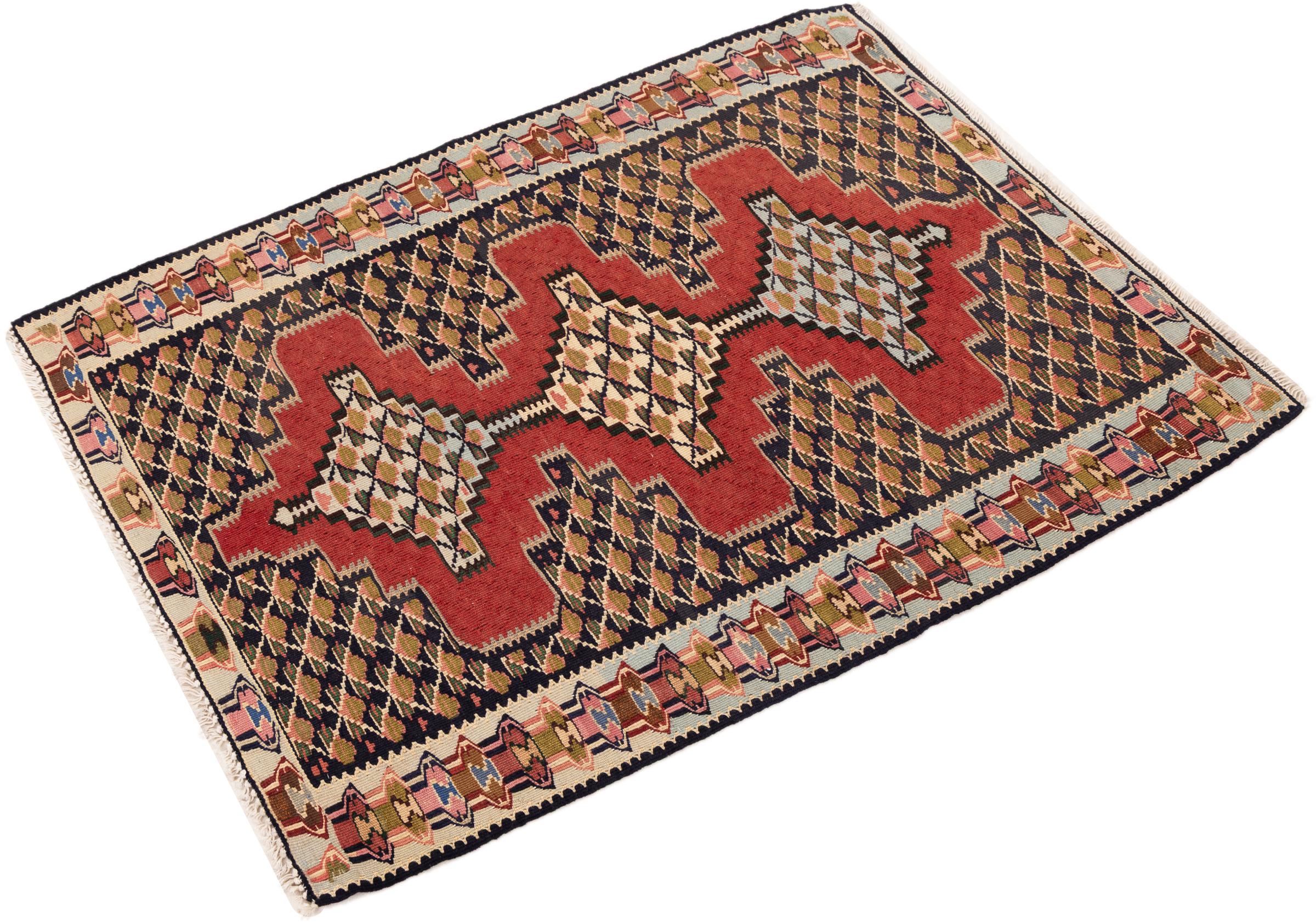 Este tapete Senneh foi feito na província do Curdistão, que fica na parte ocidental do Irã. A peça única feita à mão é feita de lã natural robusta e é extremamente resistente. Com sua estrutura resiliente e design detalhado, este tapete Senneh é adequado como um elemento de vida impressionante e duradouro em áreas muito frequentadas, como o corredor e a sala de estar.