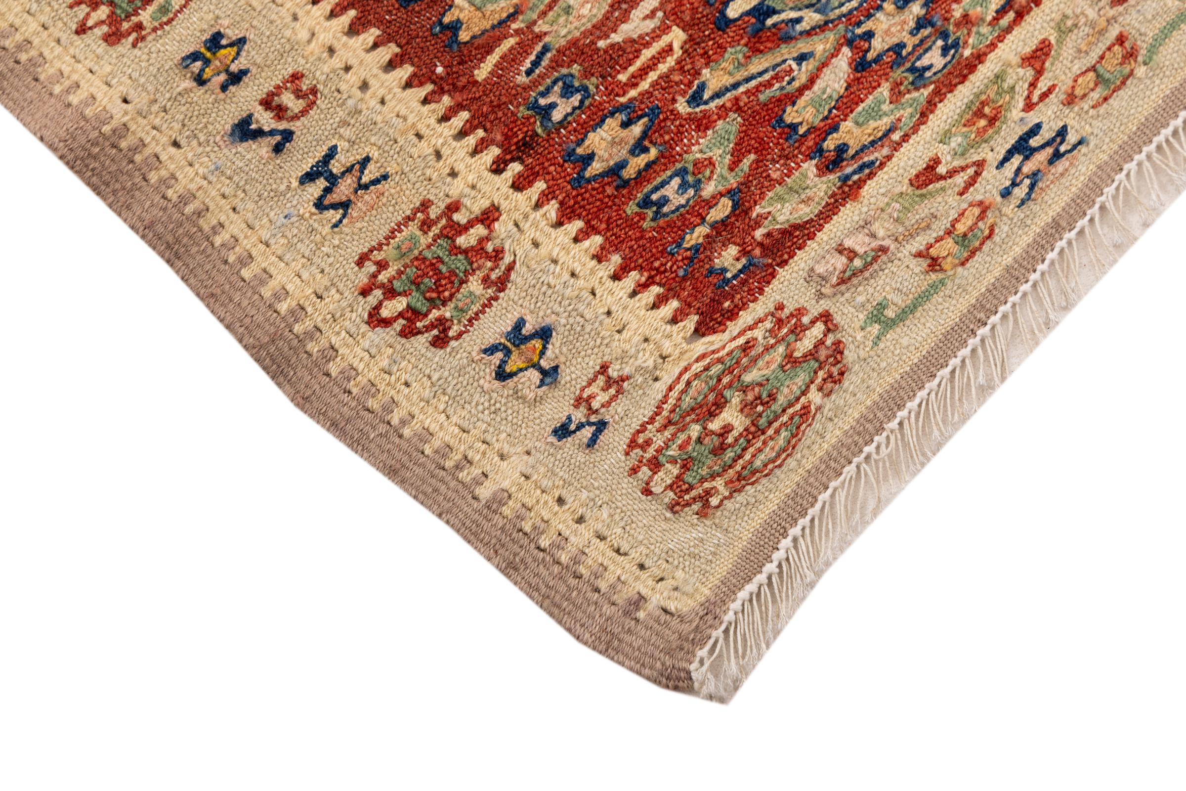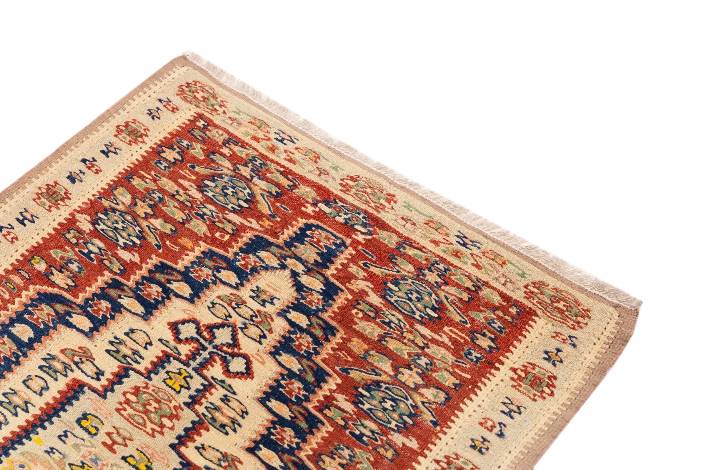 Este tapete Senneh foi feito na província do Curdistão, que fica na parte ocidental do Irã. A peça única feita à mão é feita de lã natural robusta e é extremamente resistente. Com sua estrutura resiliente e design detalhado, este tapete Senneh é adequado como um elemento de vida impressionante e duradouro em áreas muito frequentadas, como o corredor e a sala de estar.