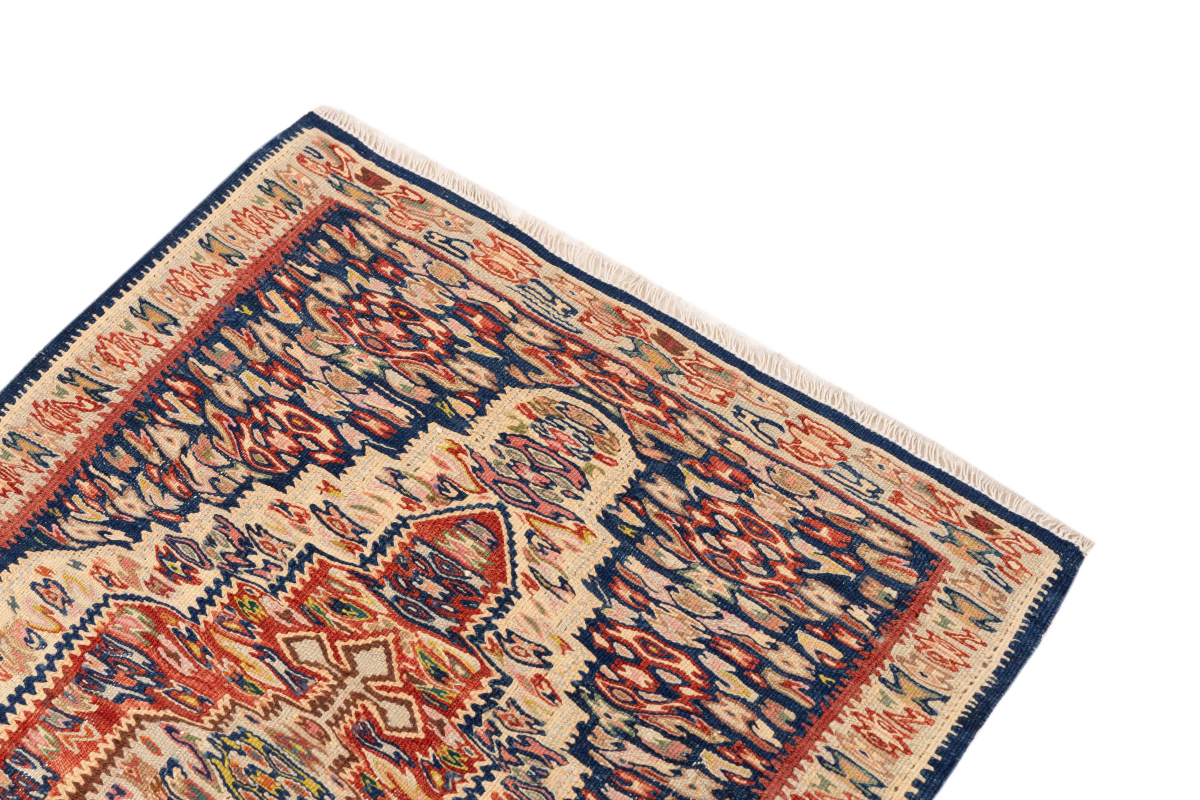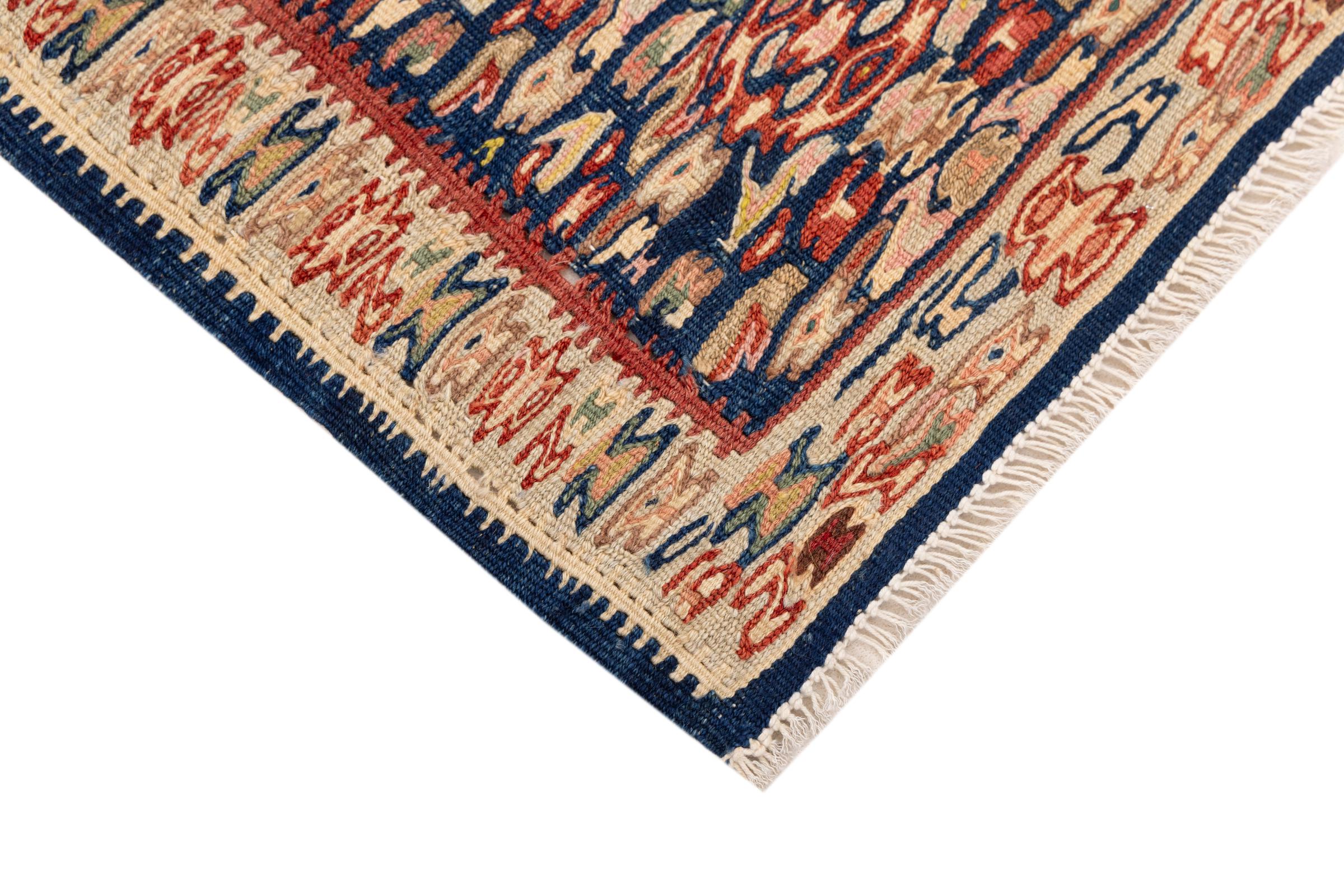 Este tapete Senneh foi feito na província do Curdistão, que fica na parte ocidental do Irã. A peça única feita à mão é feita de lã natural robusta e é extremamente resistente. Com sua estrutura resiliente e design detalhado, este tapete Senneh é adequado como um elemento de vida impressionante e duradouro em áreas muito frequentadas, como o corredor e a sala de estar.