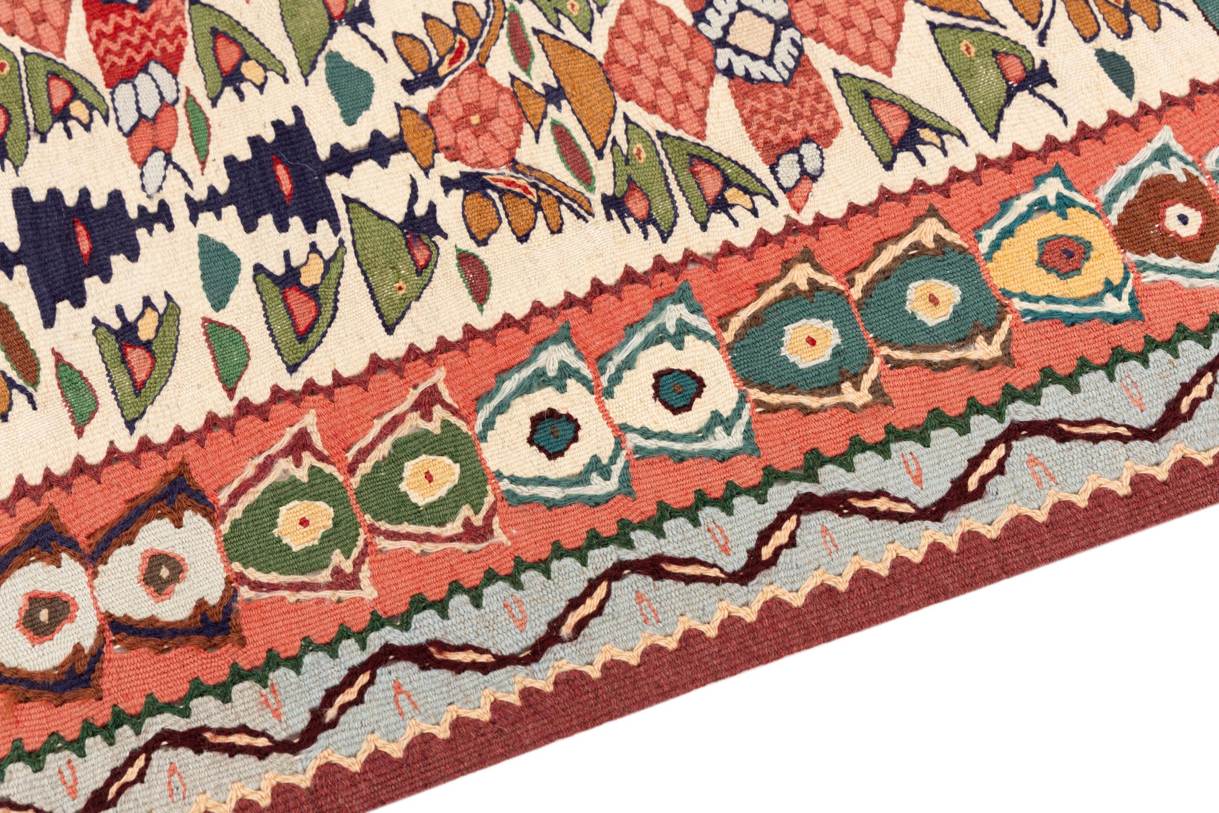 Este tapete Senneh foi feito na província do Curdistão, que fica na parte ocidental do Irã. A peça única feita à mão é feita de lã natural robusta e é extremamente resistente. Com sua estrutura resiliente e design detalhado, este tapete Senneh é adequado como um elemento de vida impressionante e duradouro em áreas muito frequentadas, como o corredor e a sala de estar.