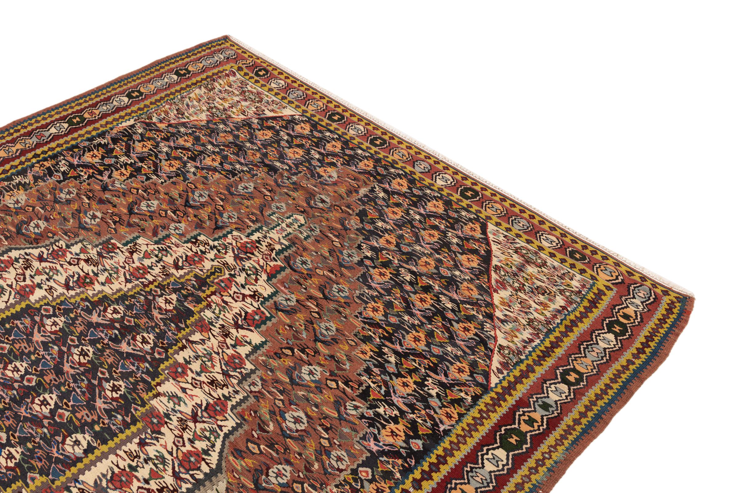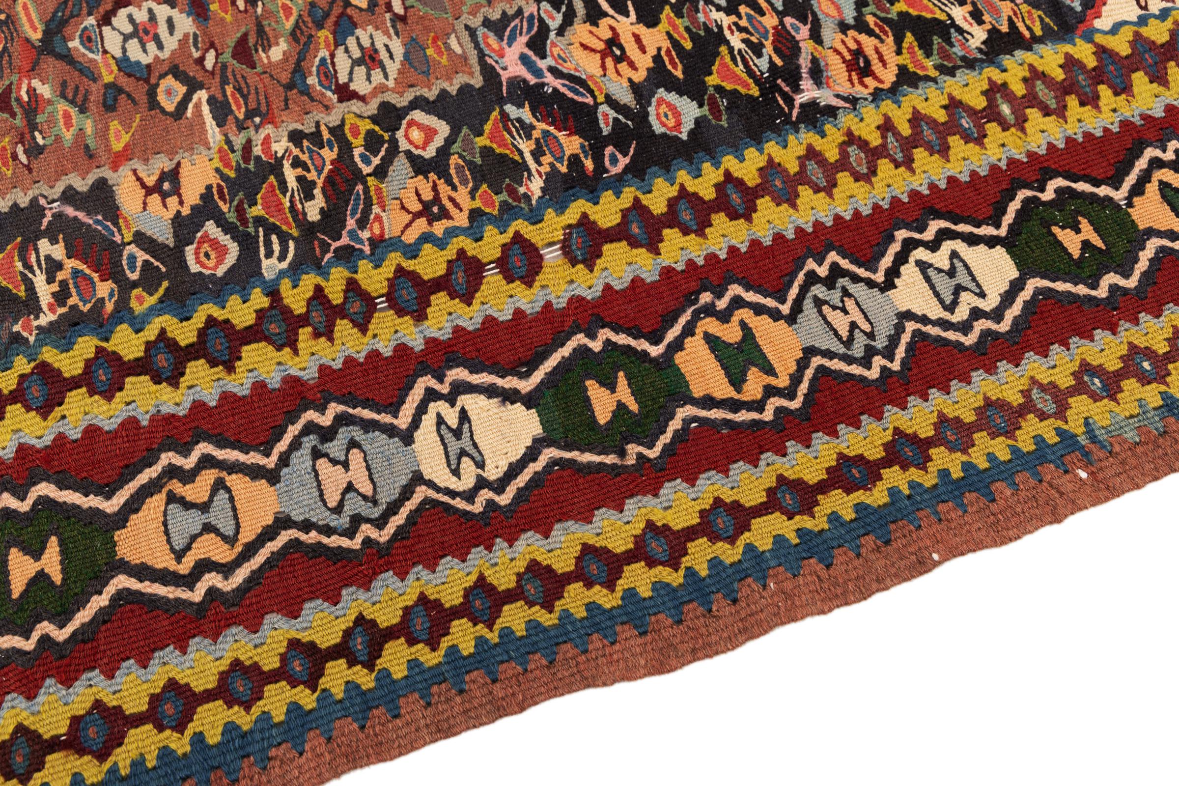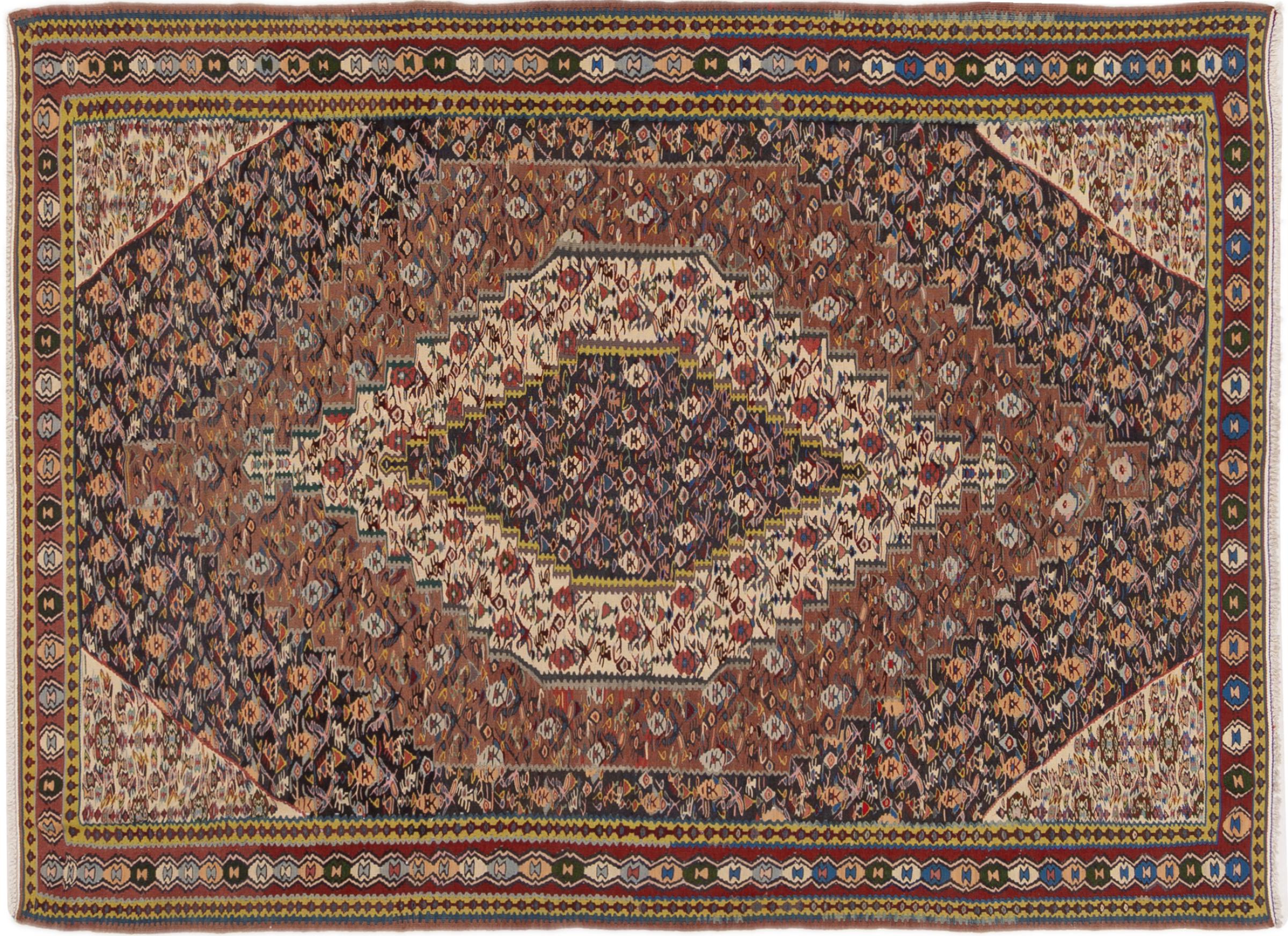 Este tapete Senneh foi feito na província do Curdistão, que fica na parte ocidental do Irã. A peça única feita à mão é feita de lã natural robusta e é extremamente resistente. Com sua estrutura resiliente e design detalhado, este tapete Senneh é adequado como um elemento de vida impressionante e duradouro em áreas muito frequentadas, como o corredor e a sala de estar.