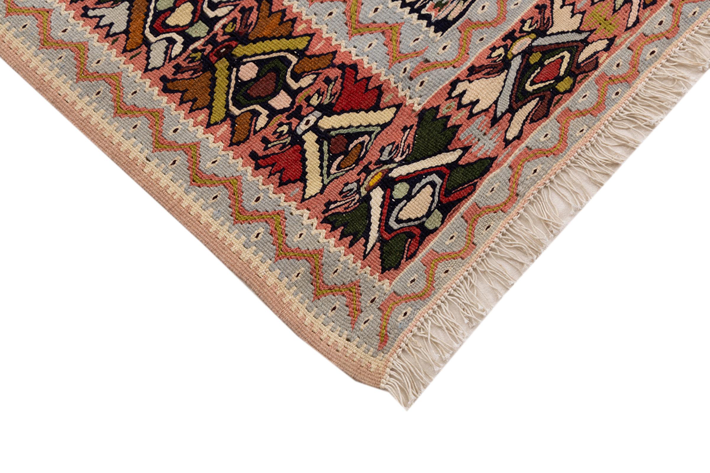 Este tapete Senneh foi feito na província do Curdistão, que fica na parte ocidental do Irã. A peça única feita à mão é feita de lã natural robusta e é extremamente resistente. Com sua estrutura resiliente e design detalhado, este tapete Senneh é adequado como um elemento de vida impressionante e duradouro em áreas muito frequentadas, como o corredor e a sala de estar.