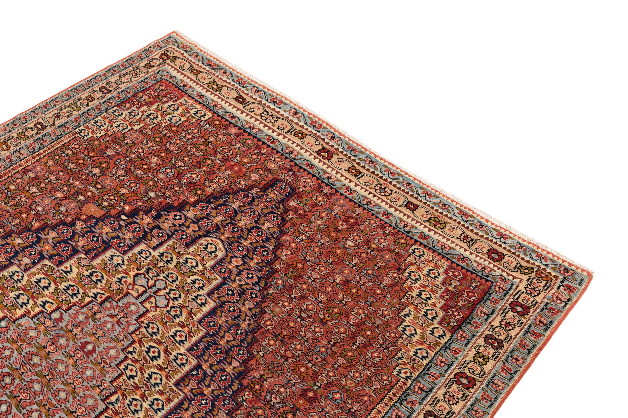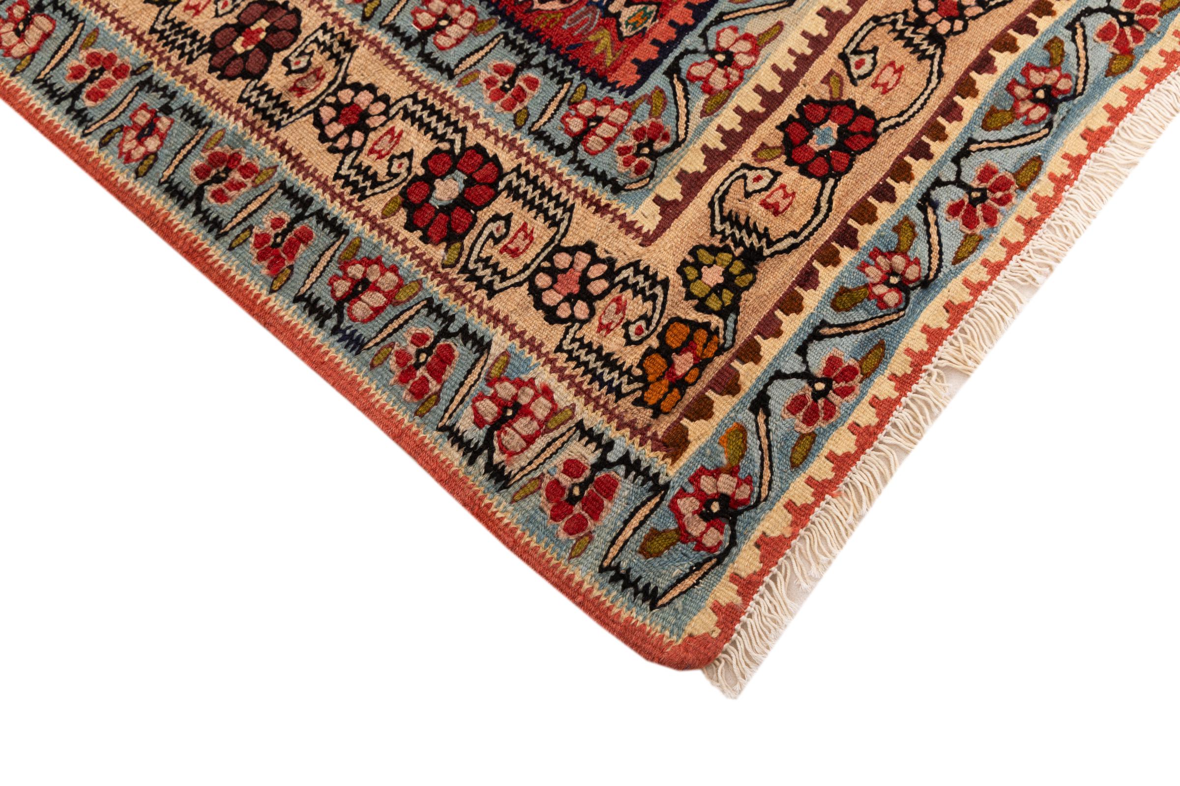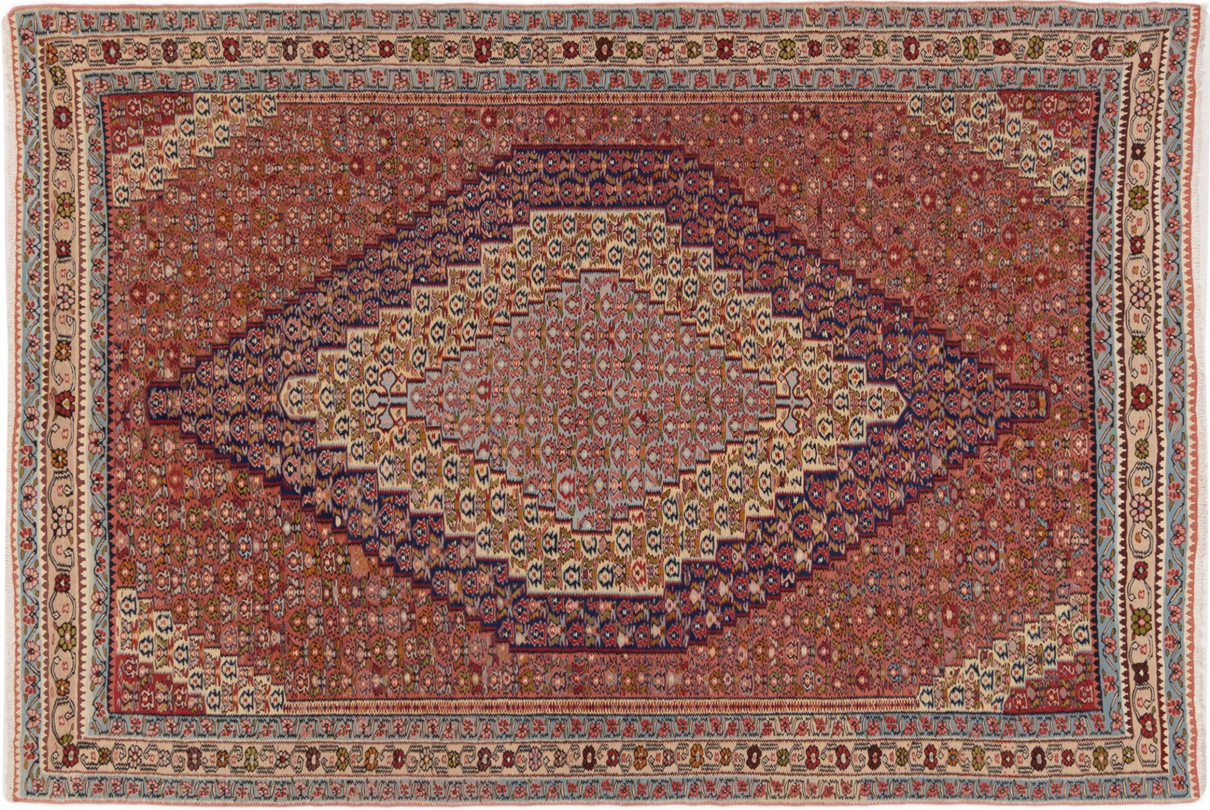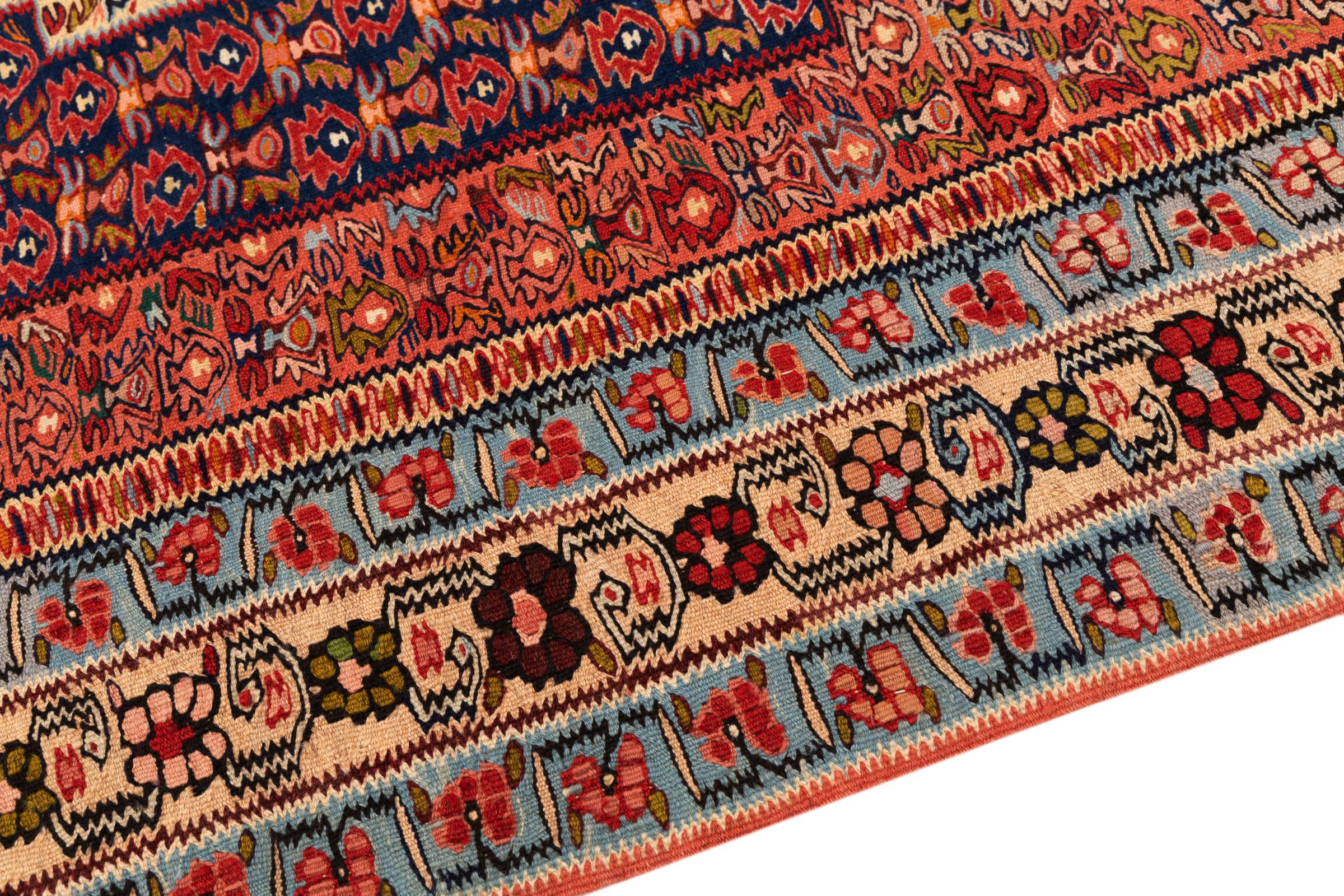 Este tapete Senneh foi feito na província do Curdistão, que fica na parte ocidental do Irã. A peça única feita à mão é feita de lã natural robusta e é extremamente resistente. Com sua estrutura resiliente e design detalhado, este tapete Senneh é adequado como um elemento de vida impressionante e duradouro em áreas muito frequentadas, como o corredor e a sala de estar.