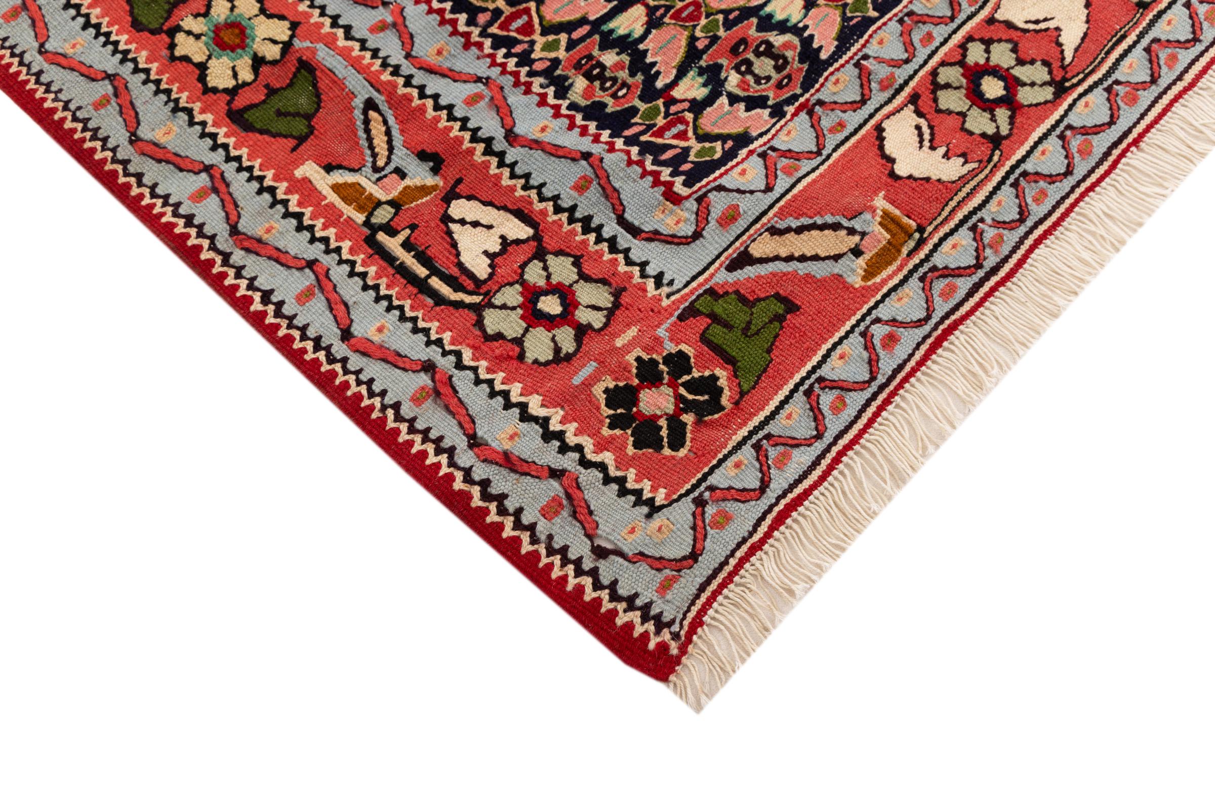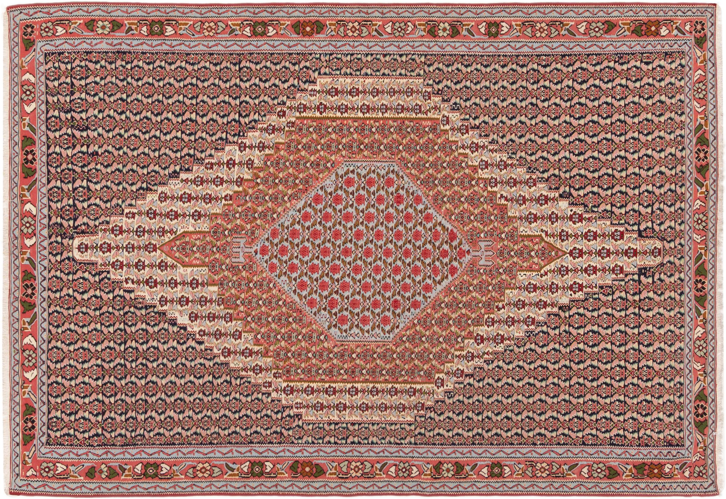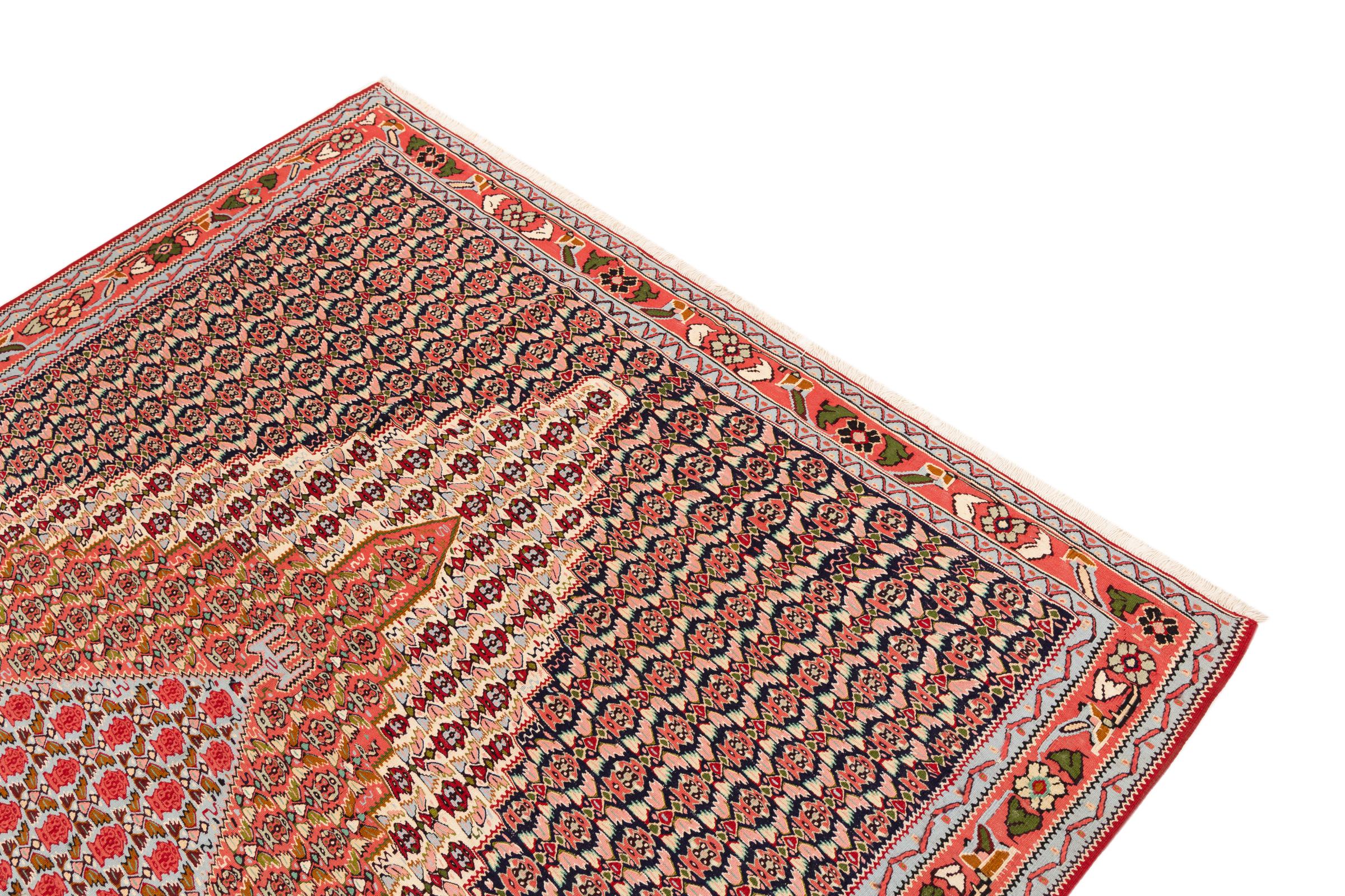Este tapete Senneh foi feito na província do Curdistão, que fica na parte ocidental do Irã. A peça única feita à mão é feita de lã natural robusta e é extremamente resistente. Com sua estrutura resiliente e design detalhado, este tapete Senneh é adequado como um elemento de vida impressionante e duradouro em áreas muito frequentadas, como o corredor e a sala de estar.
