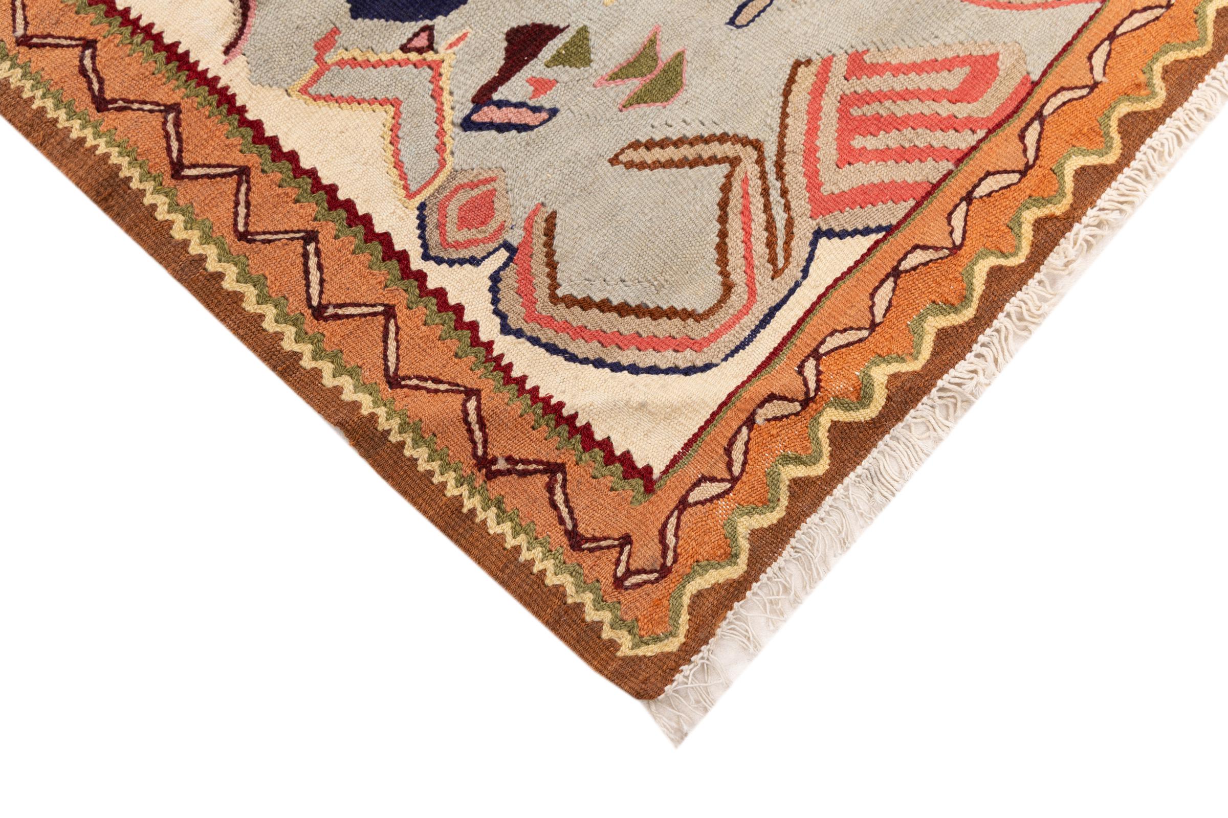 Este tapete Senneh foi feito na província do Curdistão, que fica na parte ocidental do Irã. A peça única feita à mão é feita de lã natural robusta e é extremamente resistente. Com sua estrutura resiliente e design detalhado, este tapete Senneh é adequado como um elemento de vida impressionante e duradouro em áreas muito frequentadas, como o corredor e a sala de estar.