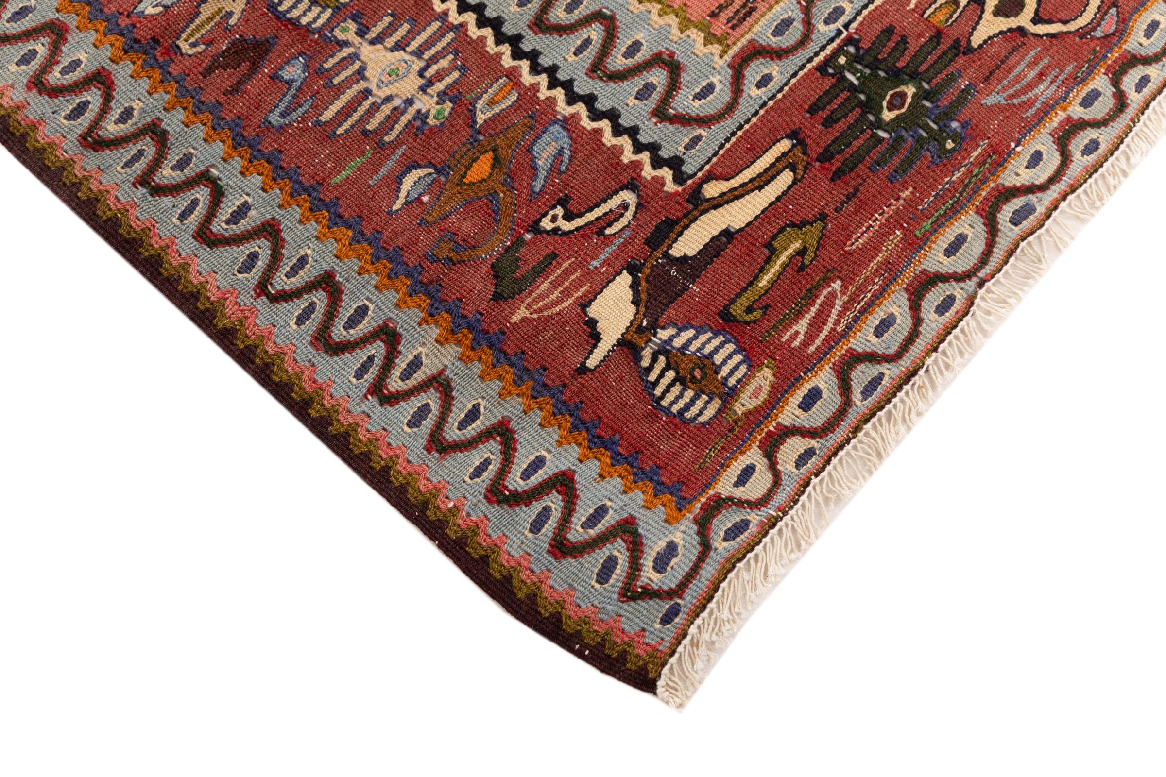 Este tapete Senneh foi feito na província do Curdistão, que fica na parte ocidental do Irã. A peça única feita à mão é feita de lã natural robusta e é extremamente resistente. Com sua estrutura resiliente e design detalhado, este tapete Senneh é adequado como um elemento de vida impressionante e duradouro em áreas muito frequentadas, como o corredor e a sala de estar.