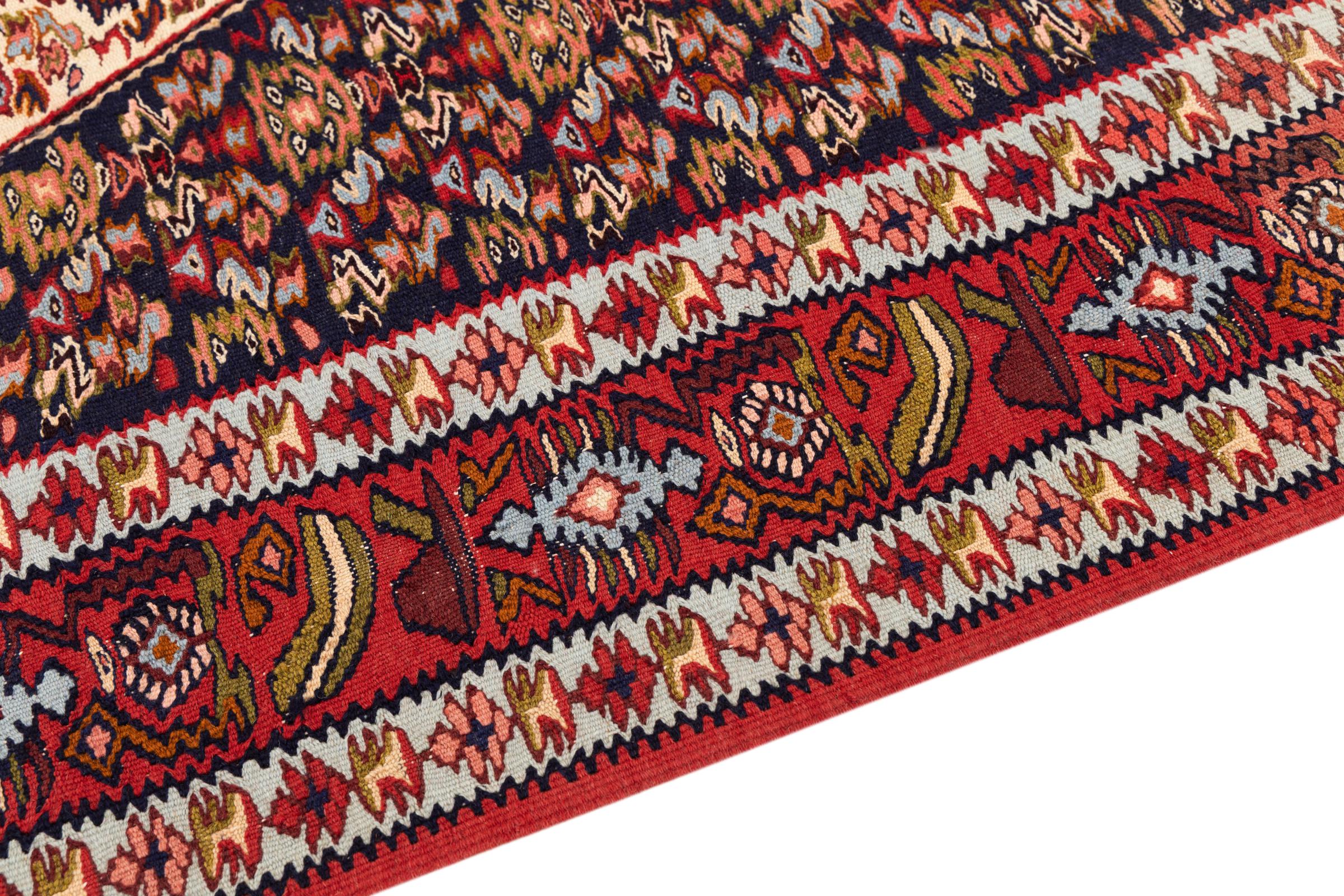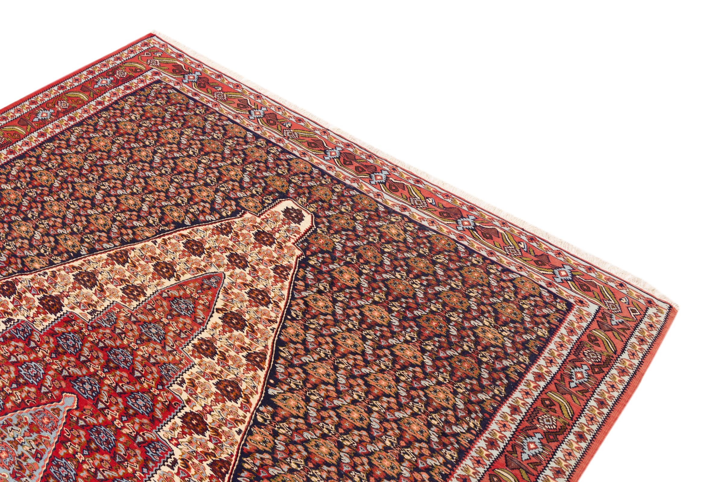 Este tapete Senneh foi feito na província do Curdistão, que fica na parte ocidental do Irã. A peça única feita à mão é feita de lã natural robusta e é extremamente resistente. Com sua estrutura resiliente e design detalhado, este tapete Senneh é adequado como um elemento de vida impressionante e duradouro em áreas muito frequentadas, como o corredor e a sala de estar.