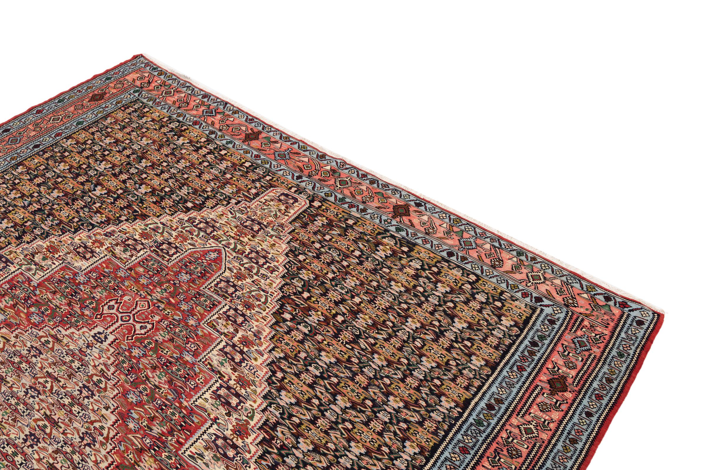 Este tapete Senneh foi feito na província do Curdistão, que fica na parte ocidental do Irã. A peça única feita à mão é feita de lã natural robusta e é extremamente resistente. Com sua estrutura resiliente e design detalhado, este tapete Senneh é adequado como um elemento de vida impressionante e duradouro em áreas muito frequentadas, como o corredor e a sala de estar.