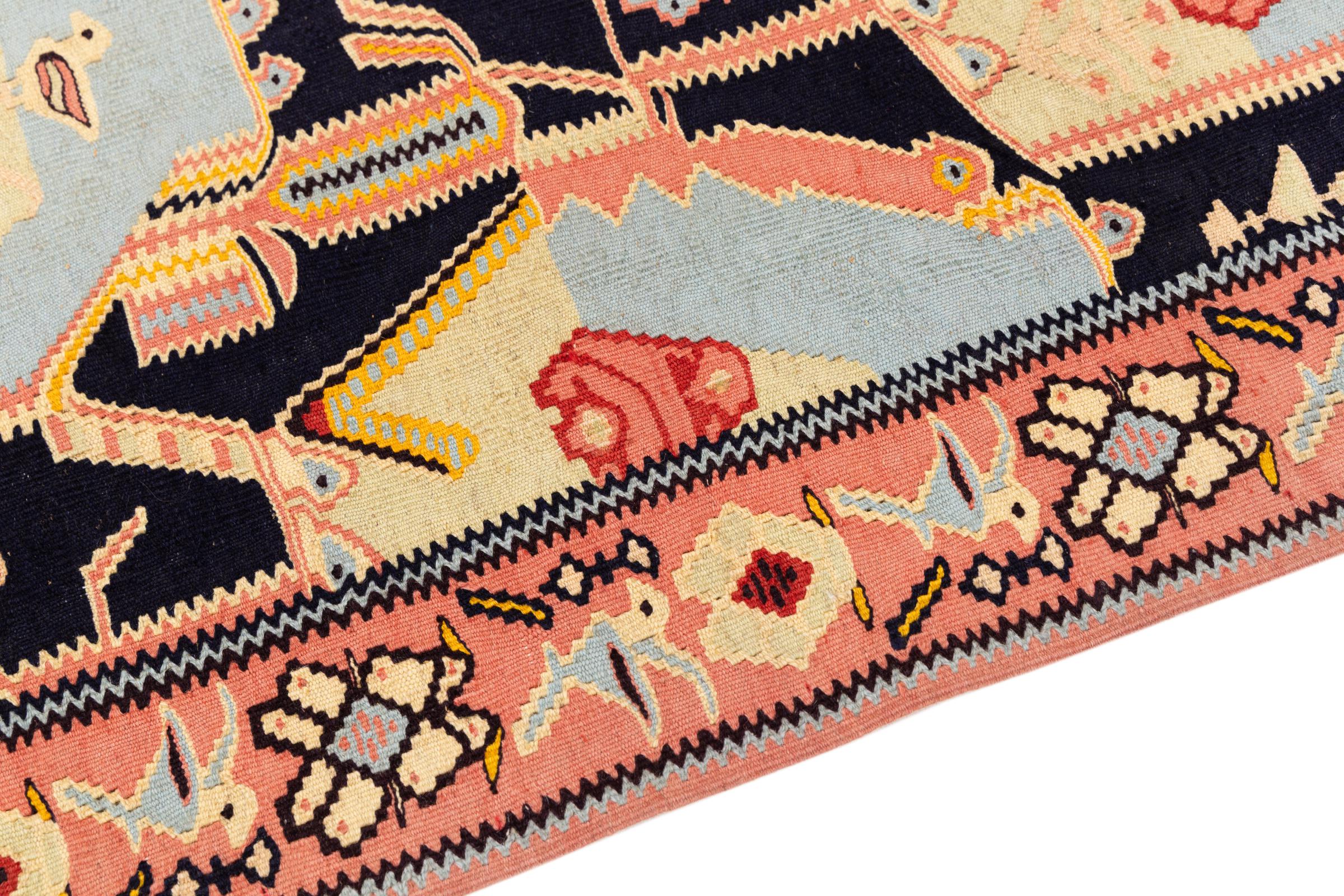 Este tapete Senneh foi feito na província do Curdistão, que fica na parte ocidental do Irã. A peça única feita à mão é feita de lã natural robusta e é extremamente resistente. Com sua estrutura resiliente e design detalhado, este tapete Senneh é adequado como um elemento de vida impressionante e duradouro em áreas muito frequentadas, como o corredor e a sala de estar.