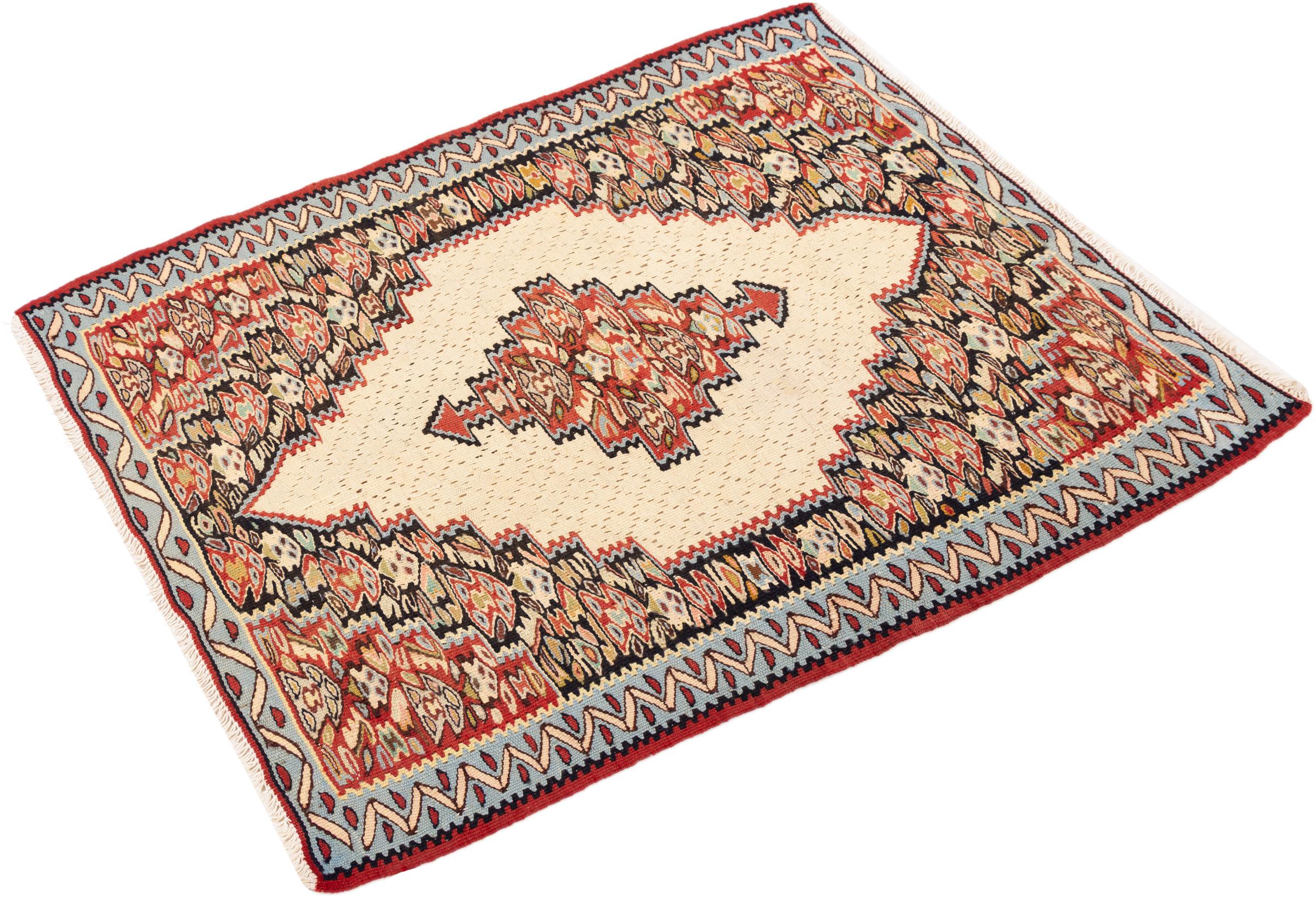 Este tapete Senneh foi feito na província do Curdistão, que fica na parte ocidental do Irã. A peça única feita à mão é feita de lã natural robusta e é extremamente resistente. Com sua estrutura resiliente e design detalhado, este tapete Senneh é adequado como um elemento de vida impressionante e duradouro em áreas muito frequentadas, como o corredor e a sala de estar.