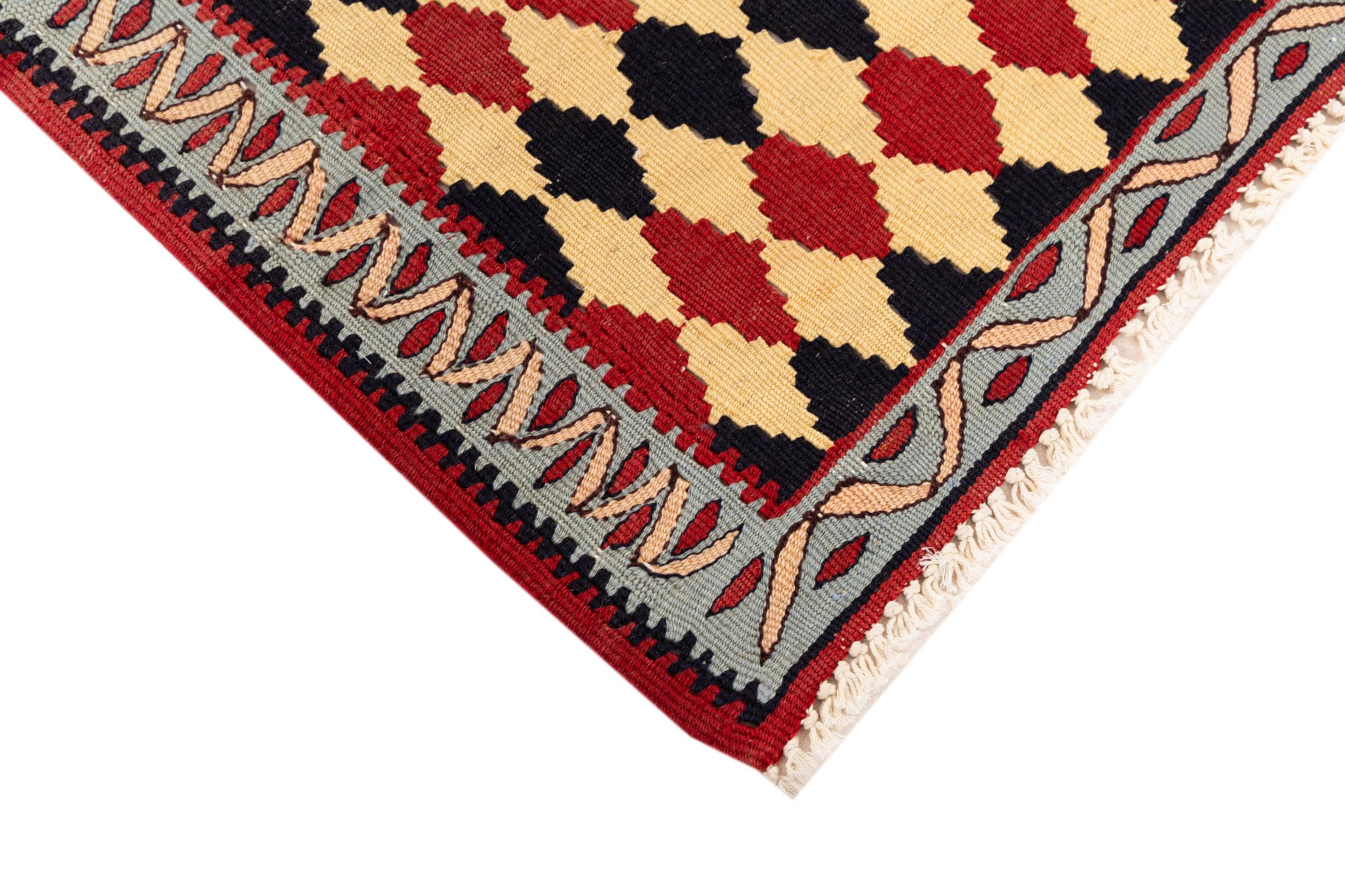 Este tapete Senneh foi feito na província do Curdistão, que fica na parte ocidental do Irã. A peça única feita à mão é feita de lã natural robusta e é extremamente resistente. Com sua estrutura resiliente e design detalhado, este tapete Senneh é adequado como um elemento de vida impressionante e duradouro em áreas muito frequentadas, como o corredor e a sala de estar.