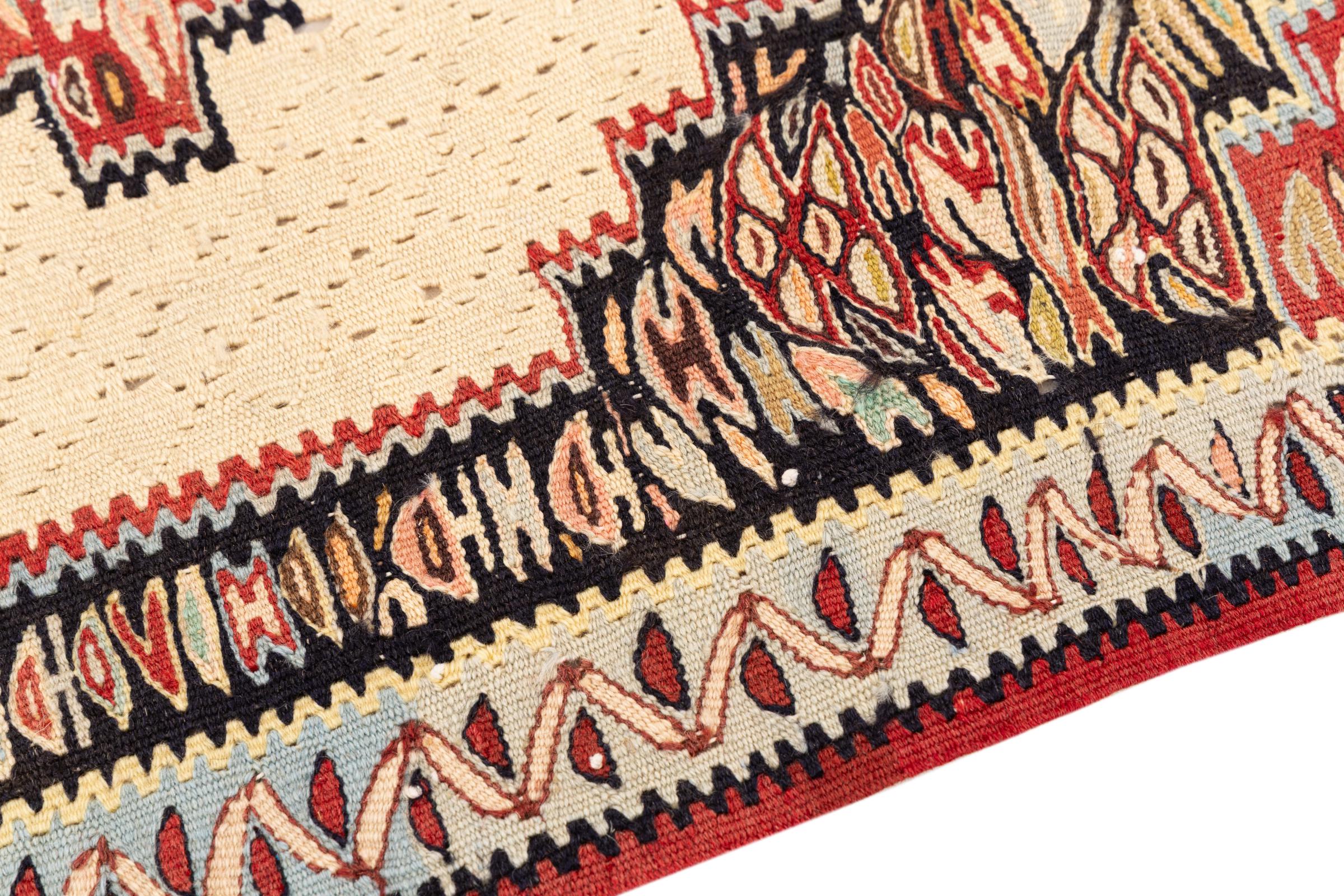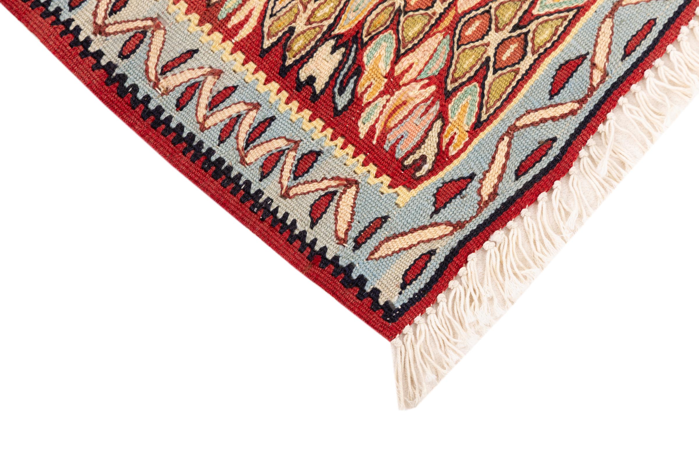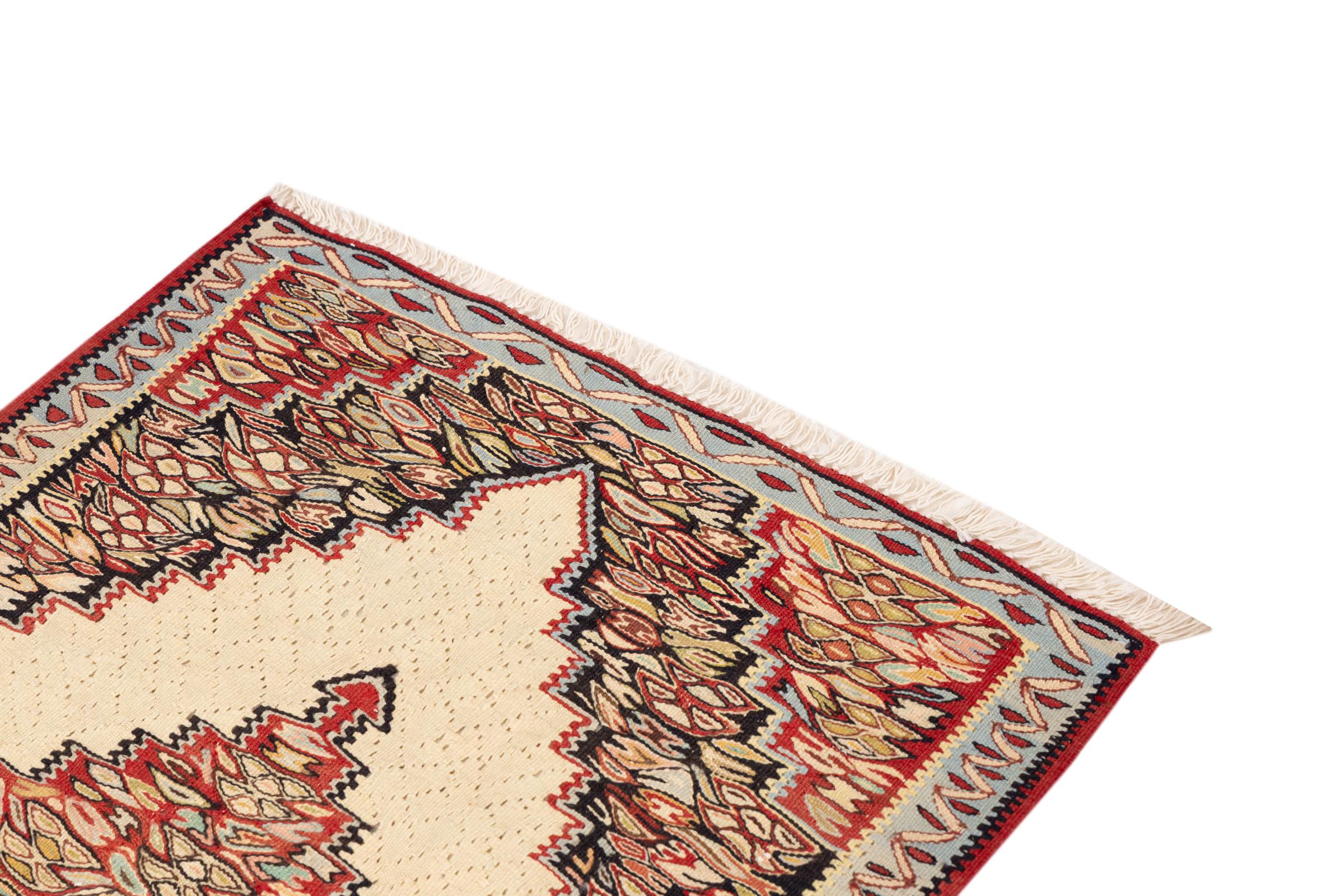 Este tapete Senneh foi feito na província do Curdistão, que fica na parte ocidental do Irã. A peça única feita à mão é feita de lã natural robusta e é extremamente resistente. Com sua estrutura resiliente e design detalhado, este tapete Senneh é adequado como um elemento de vida impressionante e duradouro em áreas muito frequentadas, como o corredor e a sala de estar.