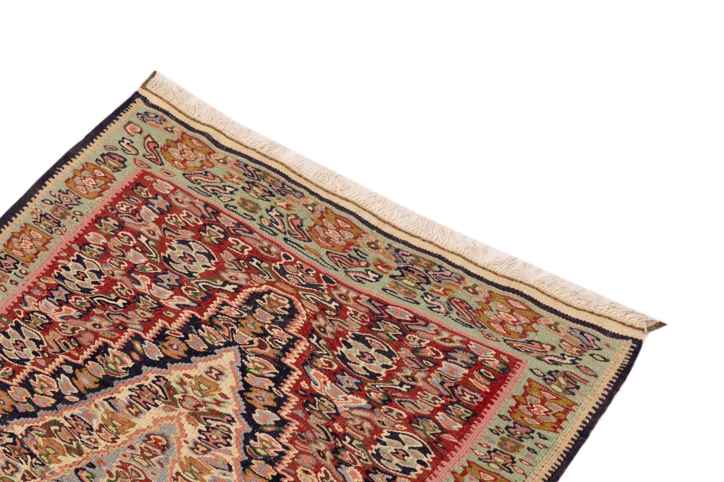 Este tapete Senneh foi feito na província do Curdistão, que fica na parte ocidental do Irã. A peça única feita à mão é feita de lã natural robusta e é extremamente resistente. Com sua estrutura resiliente e design detalhado, este tapete Senneh é adequado como um elemento de vida impressionante e duradouro em áreas muito frequentadas, como o corredor e a sala de estar.