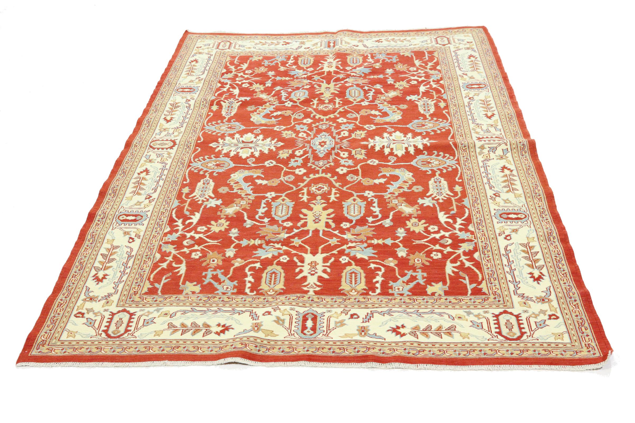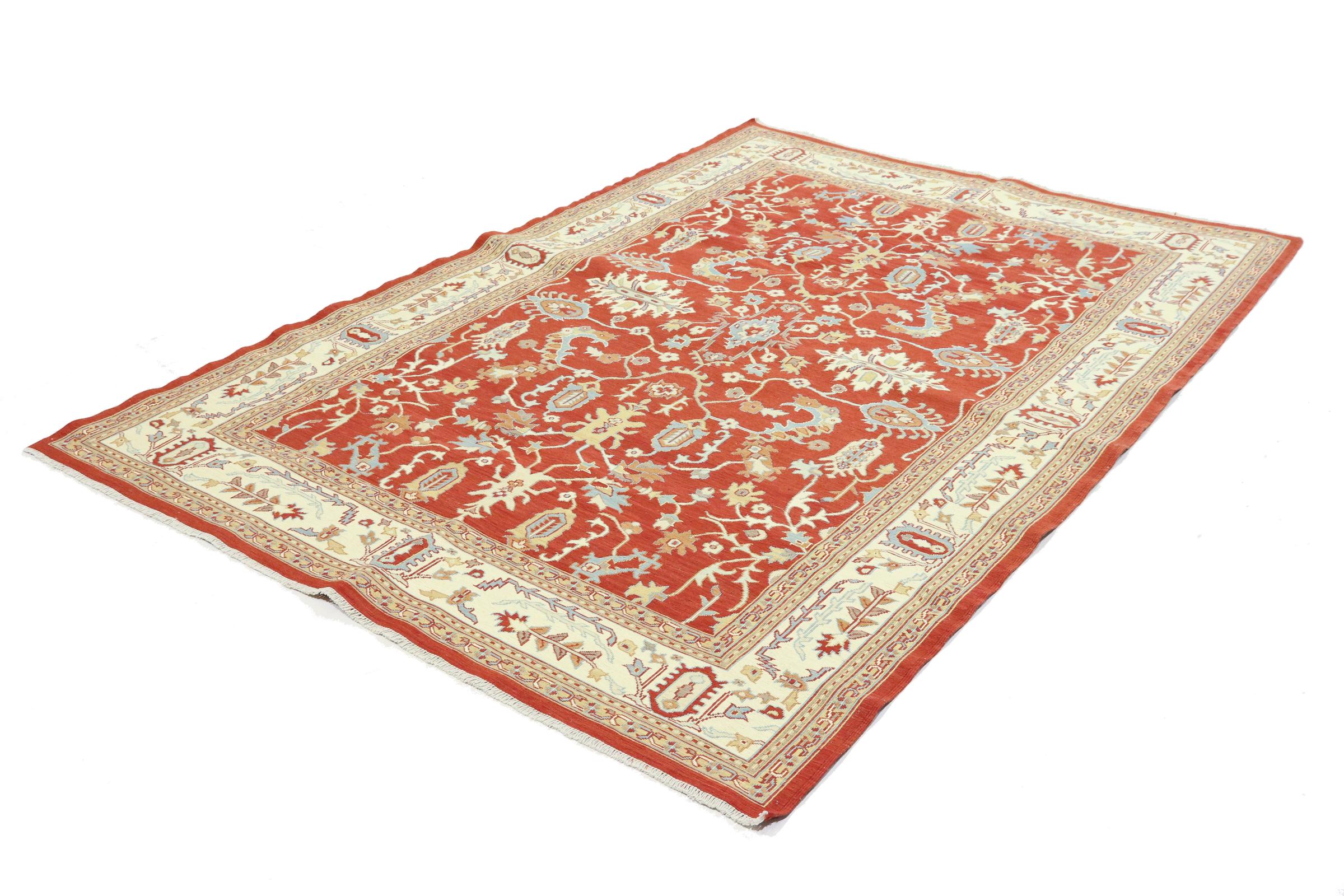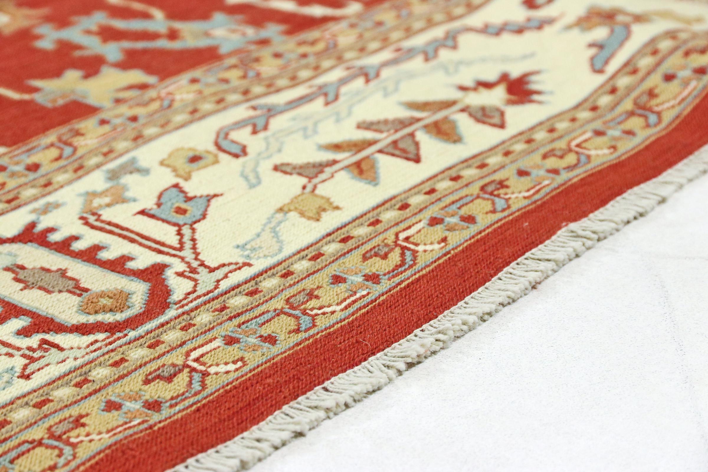 Este soumakh tecido à mão foi feito com uma técnica de enrolamento. Este é muito claro a partir de suas costas e da trama termina que pendurar para fora. Um belo tapete oriental de tecido plano.