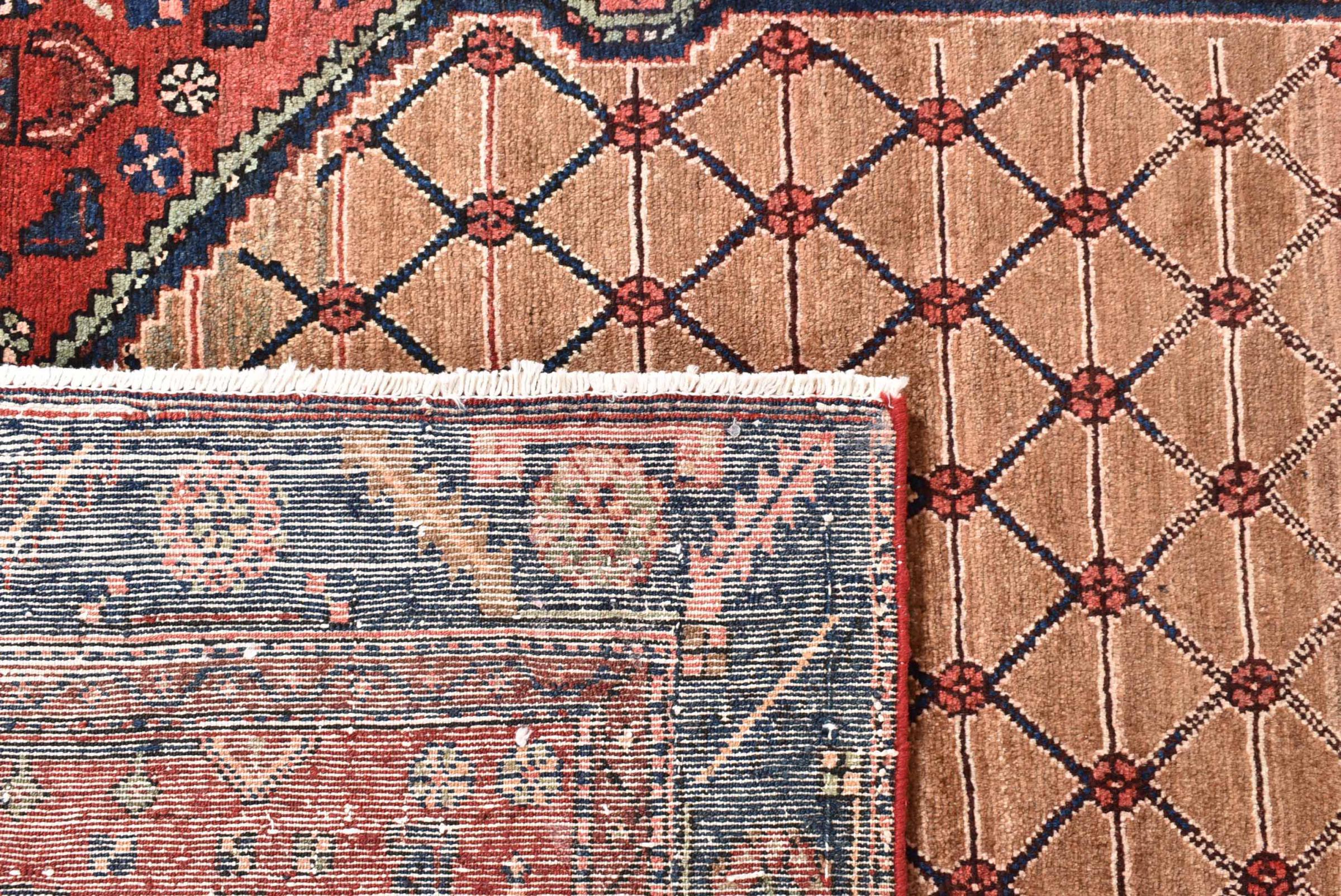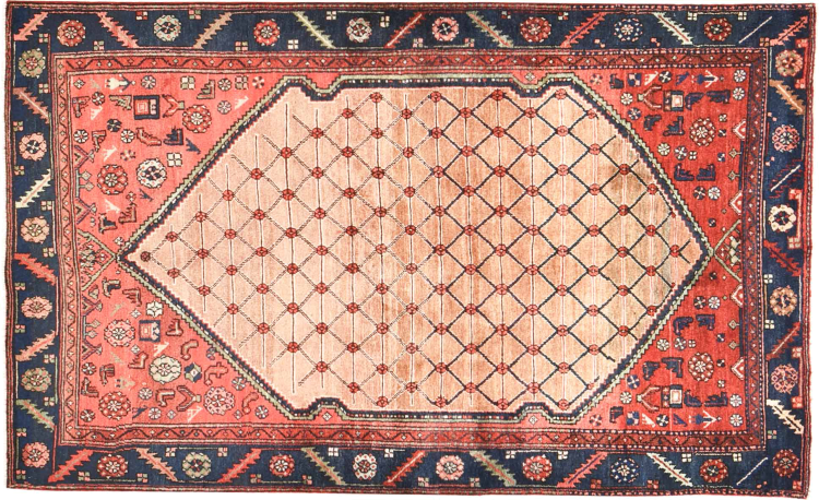 Este tapete pertence a tapetes de aldeia e nómadas do Irão, antiga Pérsia. Este tipo de tapete é atado à mão em cidades mais pequenas e aldeias da velha tradição. Mesmo os nómadas ainda atam tapetes persas ao ar livre. Os tapetes são atados sem padrão e completamente a partir da cabeça. Caracterizam-se por ornamentos clássicos, dispostos em padrões rectos e geométricos. Graças à sua origem cultural-tradicional, estes tapetes têm um carácter único que encarna a antiga Pérsia.