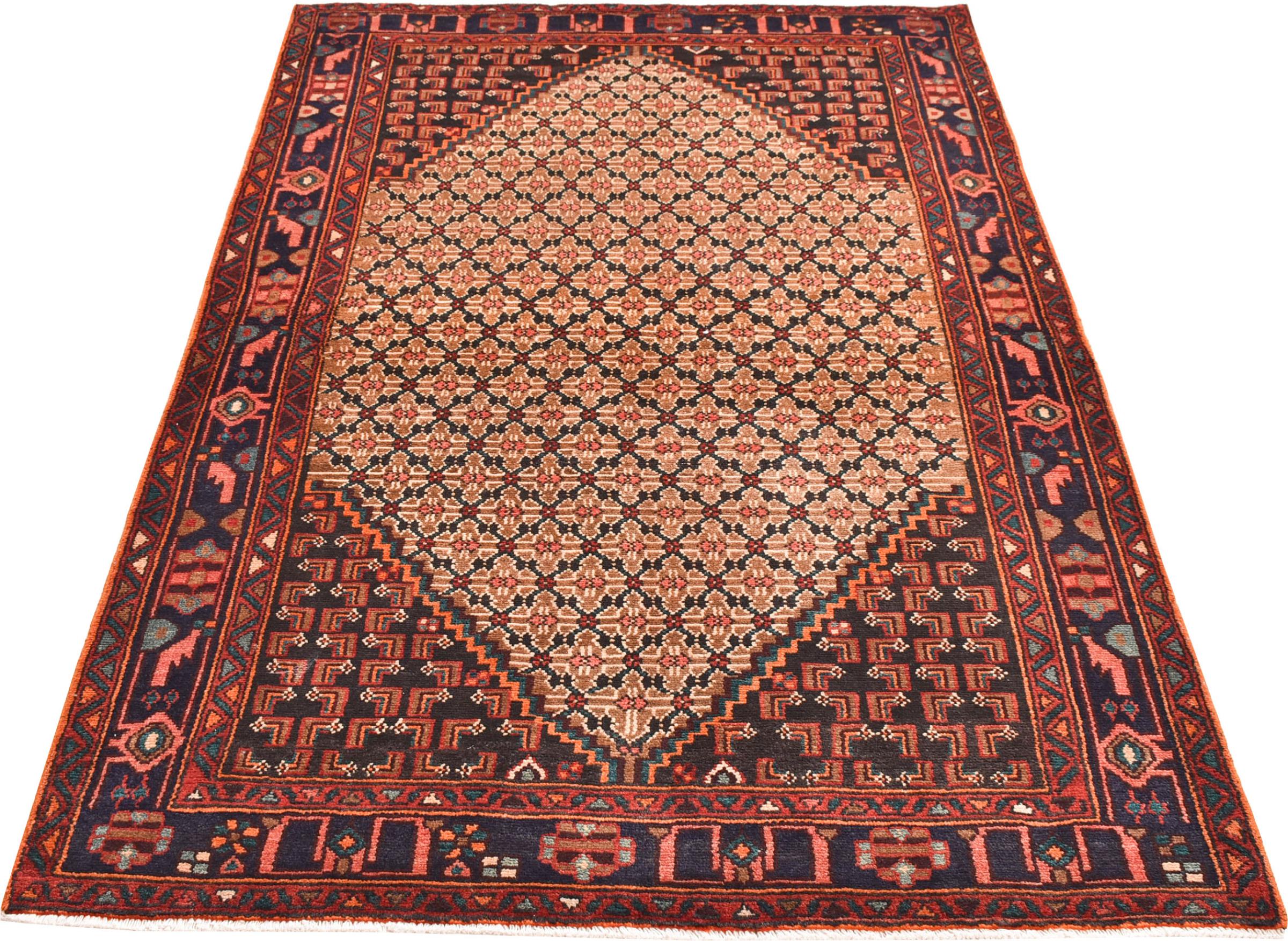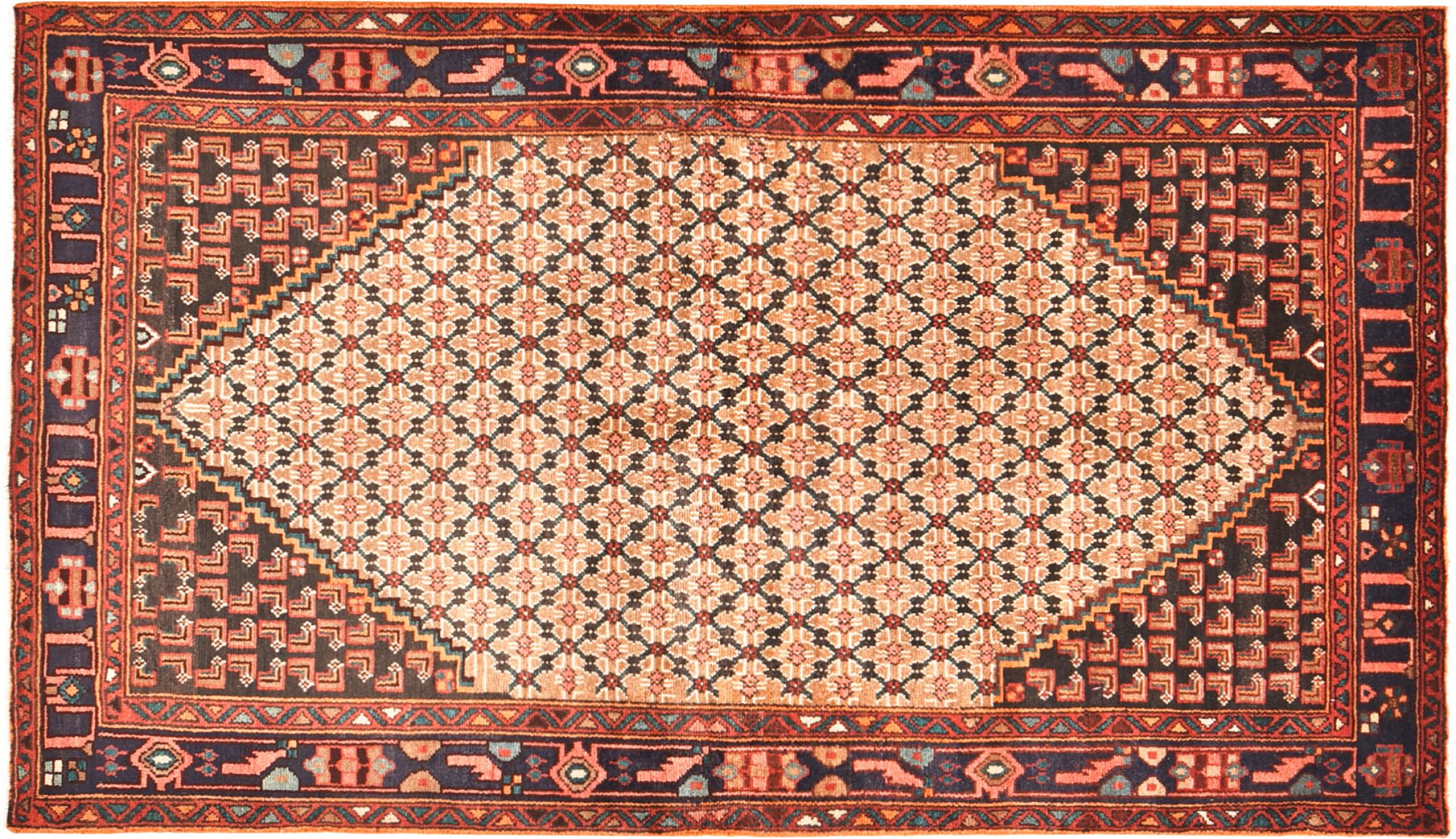 Este tapete pertence a tapetes de aldeia e nómadas do Irão, antiga Pérsia. Este tipo de tapete é atado à mão em cidades mais pequenas e aldeias da velha tradição. Mesmo os nómadas ainda atam tapetes persas ao ar livre. Os tapetes são atados sem padrão e completamente a partir da cabeça. Caracterizam-se por ornamentos clássicos, dispostos em padrões rectos e geométricos. Graças à sua origem cultural-tradicional, estes tapetes têm um carácter único que encarna a antiga Pérsia.