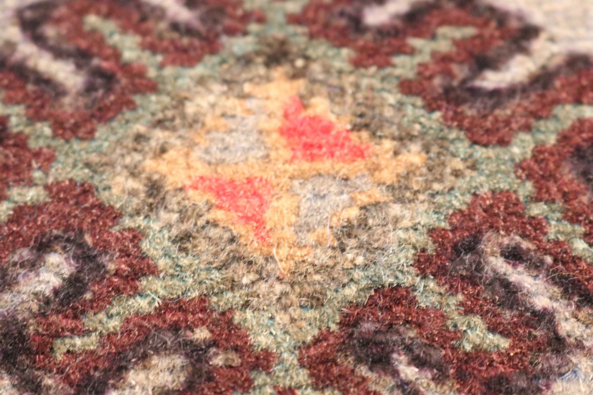 Este tapete é feito de lã de ovelha fiada à mão, da mais alta qualidade. Especialmente no Irão (antiga Pérsia), Afeganistão e Paquistão, a lã ainda é fiada à mão antes do início do nó do tapete. A lã tem provado ser um material natural e extremamente resistente ao longo dos séculos. Entre outras coisas, tem propriedades repelentes de impurezas e isolantes térmicos. Ao mesmo tempo, a lã é incomparavelmente macia e tem um brilho natural.