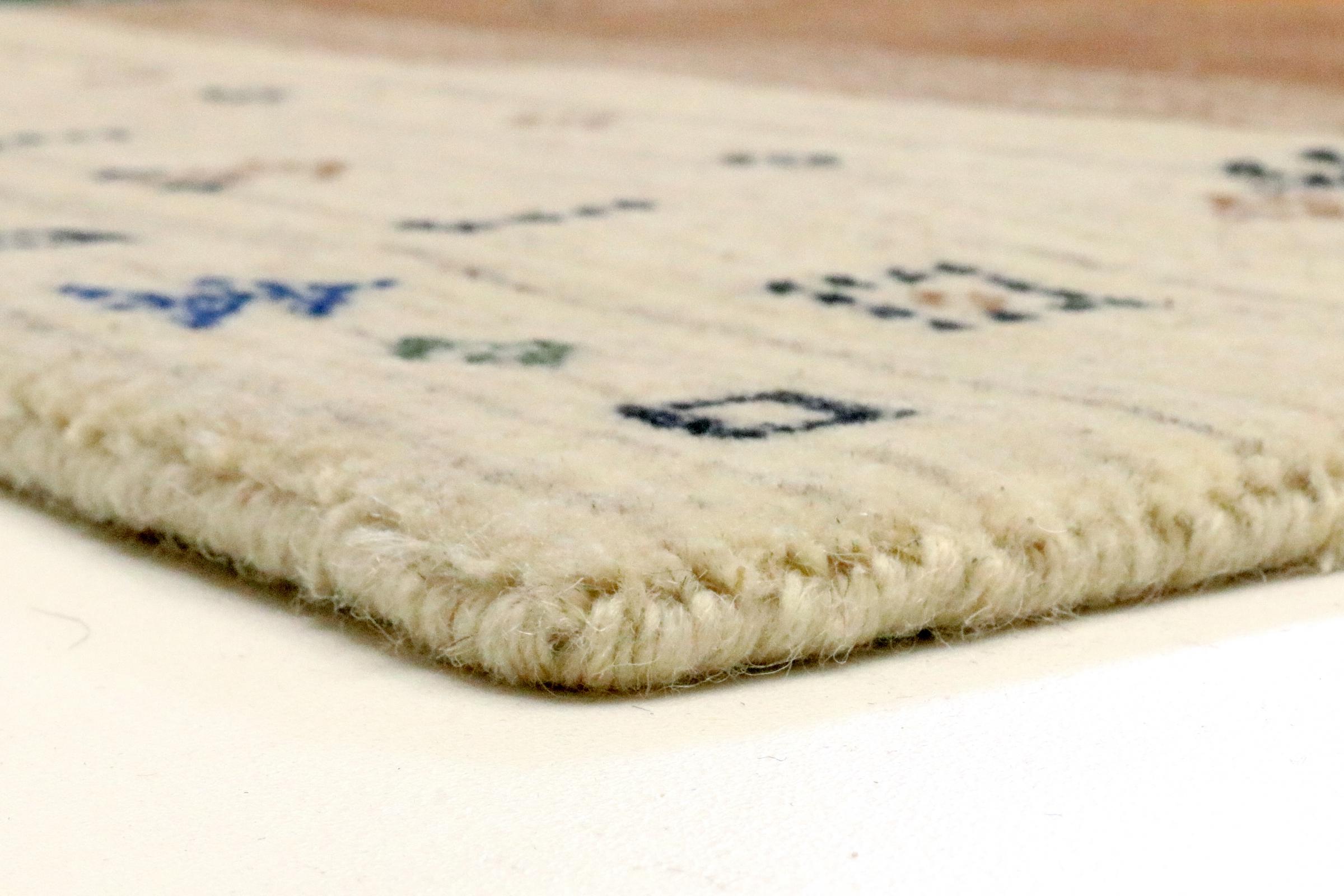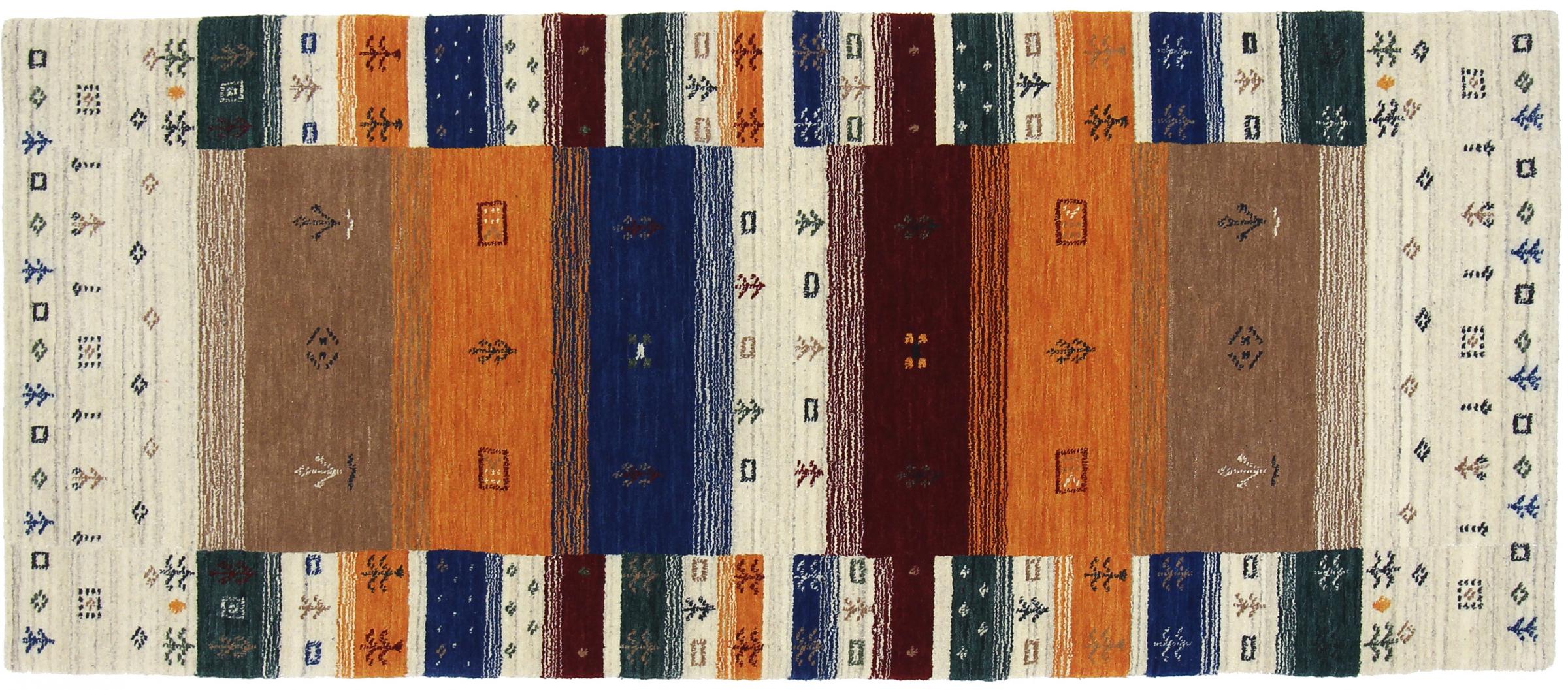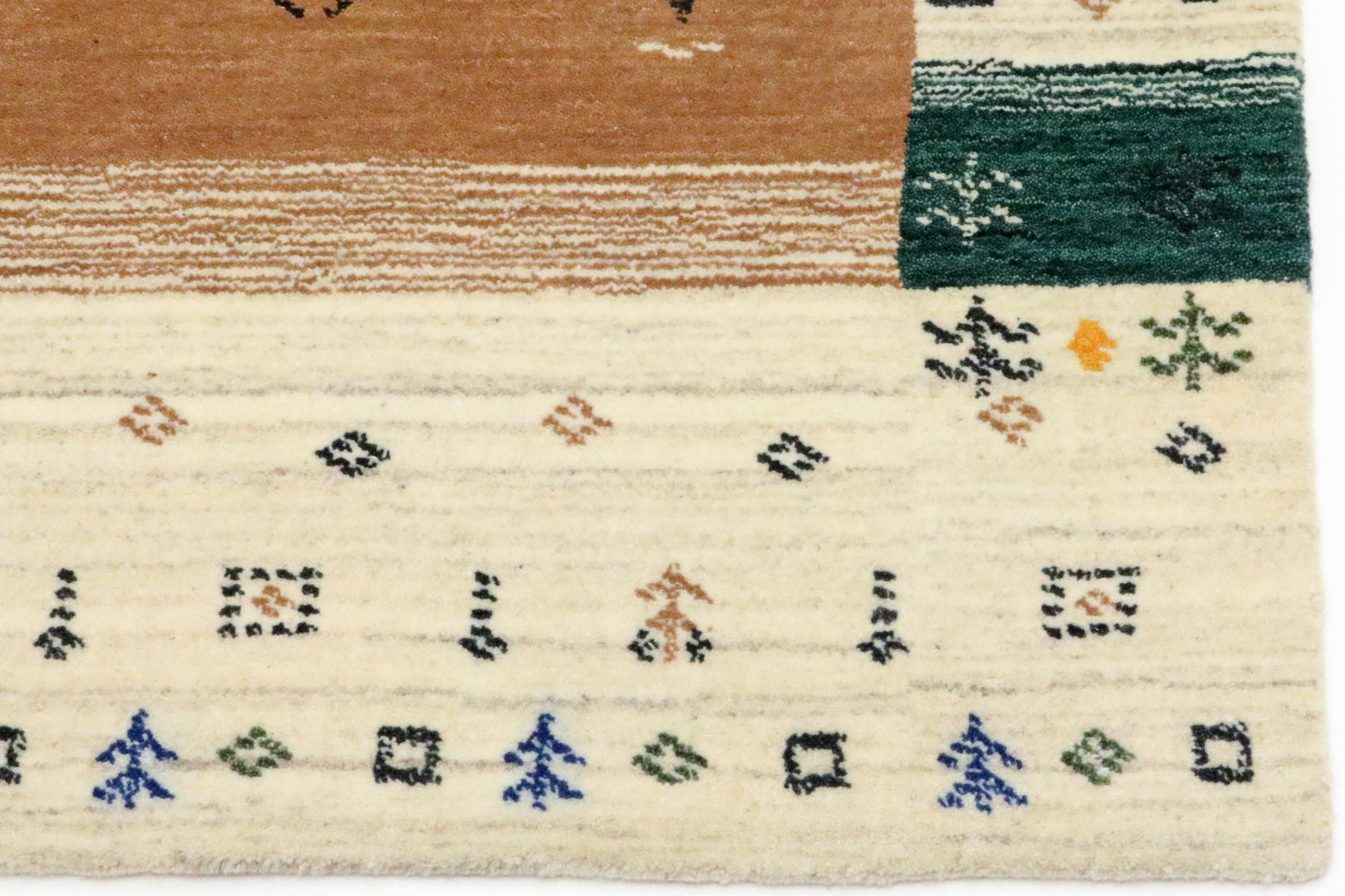Este Loom Gabbeh Lori foi feito à mão com uma nova técnica de tecelagem na pequena cidade de Bhadohi na Índia. Isto torna possível produzir tapetes bonitos e modernos em design Gabbeh com um esforço claro à mão no tear. A lã de alta qualidade continua a ser utilizada. Este tapete é macio e confortável, bem como robusto. Definitivamente uma peça muito bonita para quem valoriza um tapete atado à mão acessível com o seu próprio carácter.