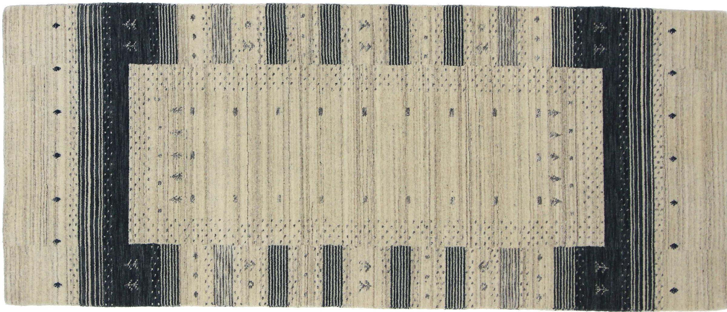 Este Loom Gabbeh Lori foi feito à mão com uma nova técnica de tecelagem na pequena cidade de Bhadohi na Índia. Isto torna possível produzir tapetes bonitos e modernos em design Gabbeh com um esforço claro à mão no tear. A lã de alta qualidade continua a ser utilizada. Este tapete é macio e confortável, bem como robusto. Definitivamente uma peça muito bonita para quem valoriza um tapete atado à mão acessível com o seu próprio carácter.