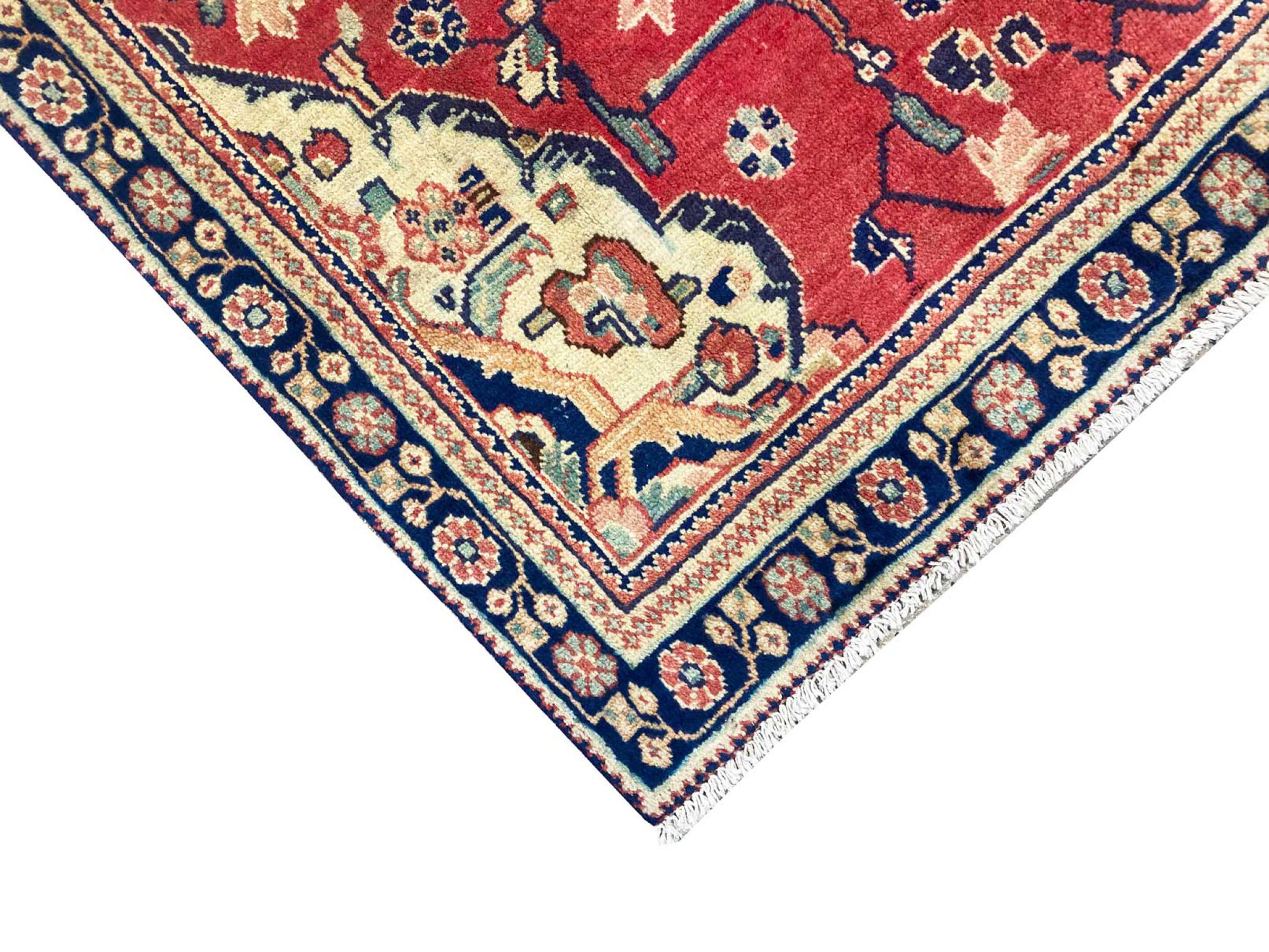 Este tapete oriental vem da proveniência de Mahal, localizada no centro-oeste do Irã. O design brilha em um esquema de cores amigável com cores harmoniosamente coordenadas. A moldura detalhada encena elegantemente os motivos finamente trabalhados no campo interno. Como um genuíno tapete persa feito à mão de qualidade robusta, o modelo é estético e durável ao mesmo tempo - ideal para o seu corredor ou sala de estar.