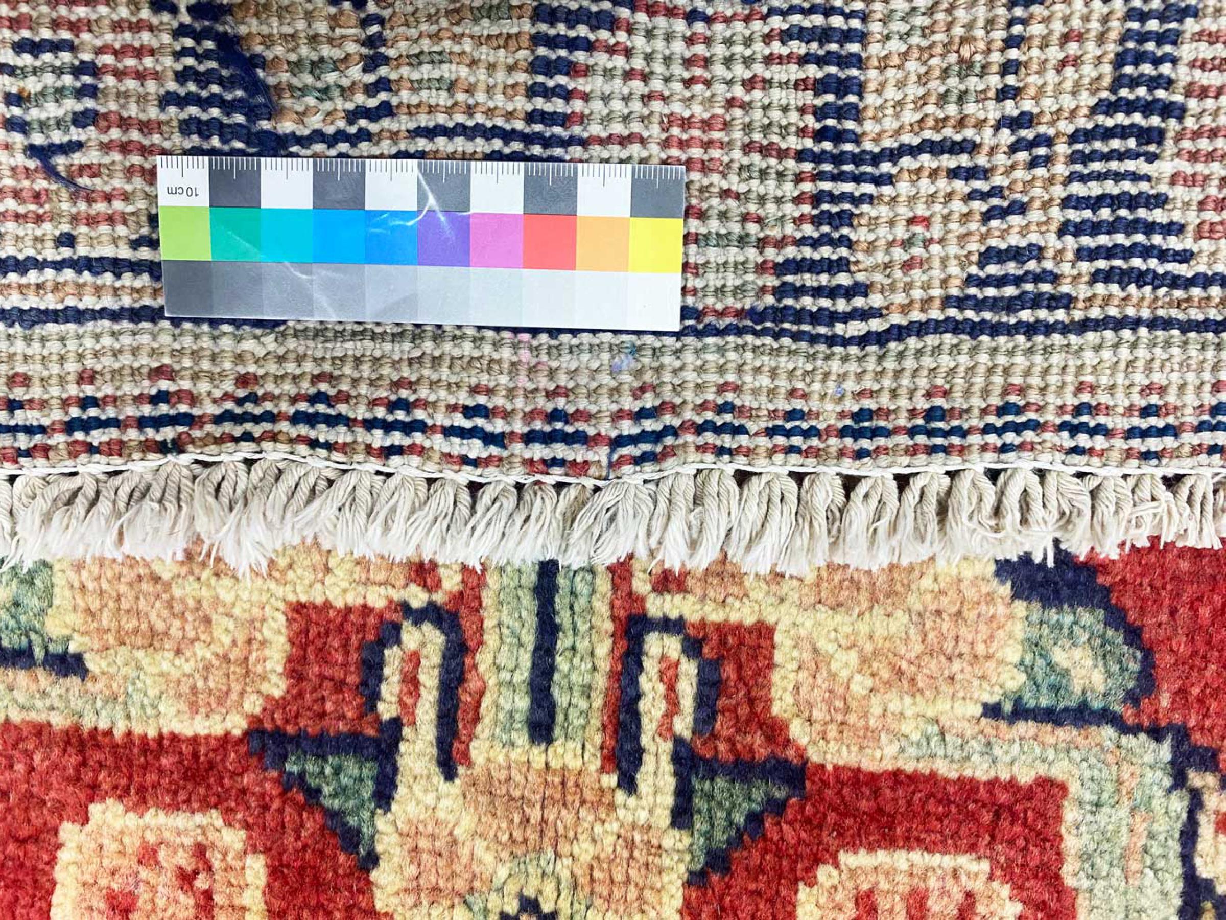 Este tapete é feito de lã de ovelha fiada à mão, da mais alta qualidade. Especialmente no Irão (antiga Pérsia), Afeganistão e Paquistão, a lã ainda é fiada à mão antes do início do nó do tapete. A lã tem provado ser um material natural e extremamente resistente ao longo dos séculos. Entre outras coisas, tem propriedades repelentes de impurezas e isolantes térmicos. Ao mesmo tempo, a lã é incomparavelmente macia e tem um brilho natural.