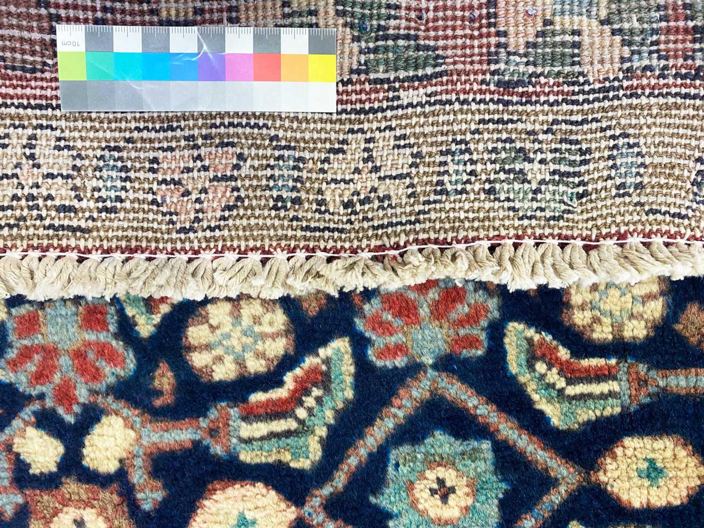 Este tapete é feito de lã de ovelha fiada à mão, da mais alta qualidade. Especialmente no Irão (antiga Pérsia), Afeganistão e Paquistão, a lã ainda é fiada à mão antes do início do nó do tapete. A lã tem provado ser um material natural e extremamente resistente ao longo dos séculos. Entre outras coisas, tem propriedades repelentes de impurezas e isolantes térmicos. Ao mesmo tempo, a lã é incomparavelmente macia e tem um brilho natural.