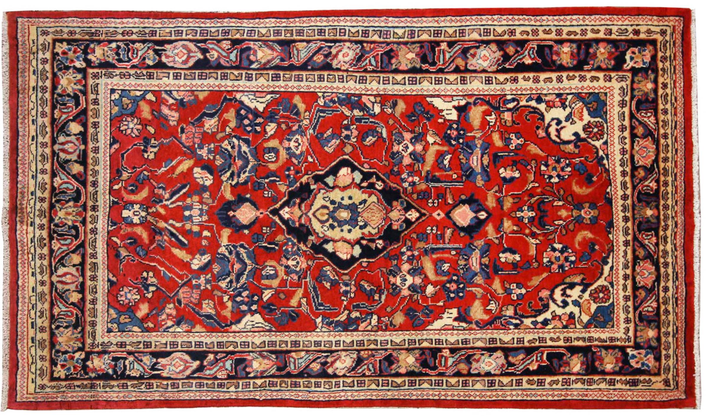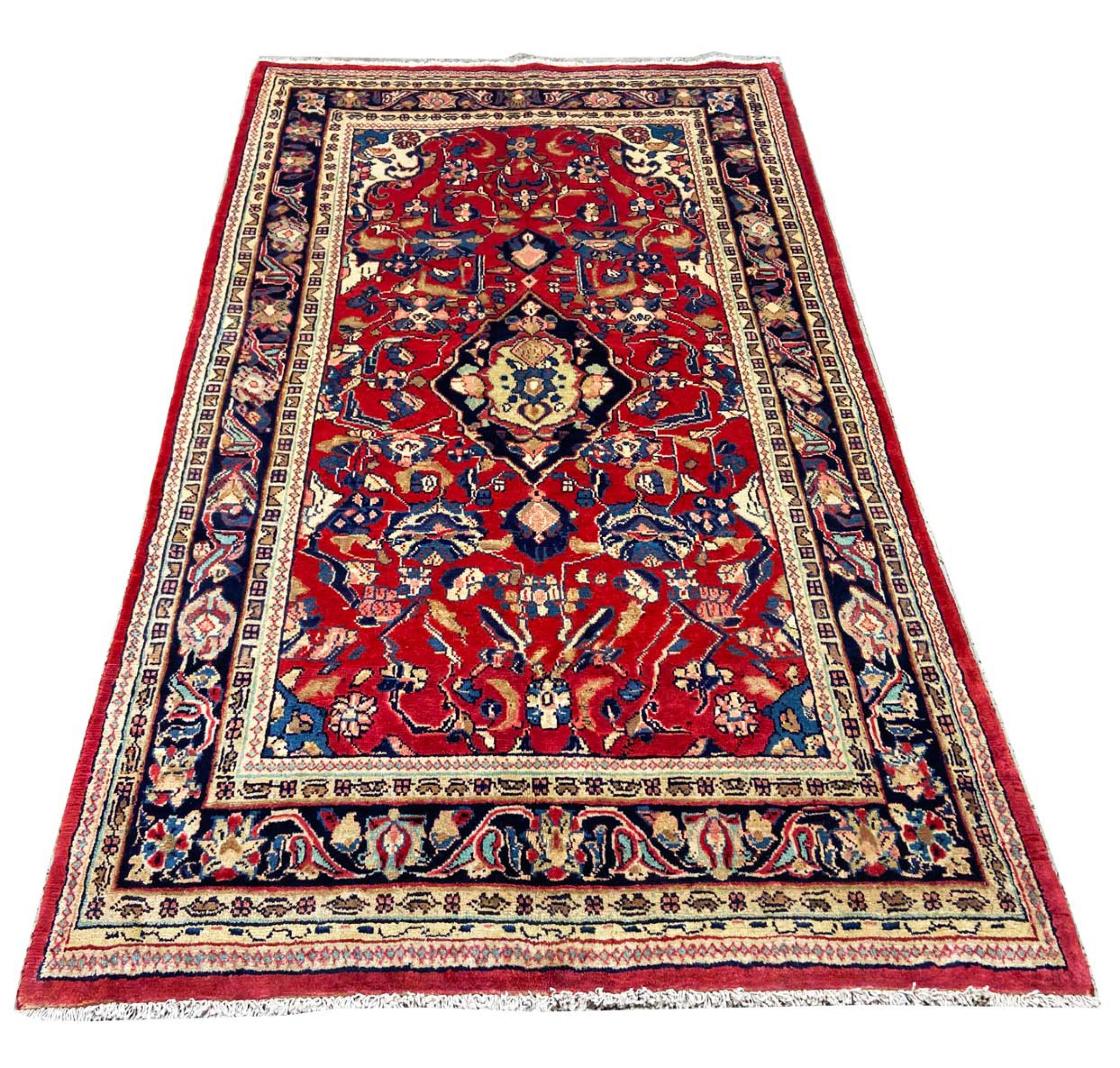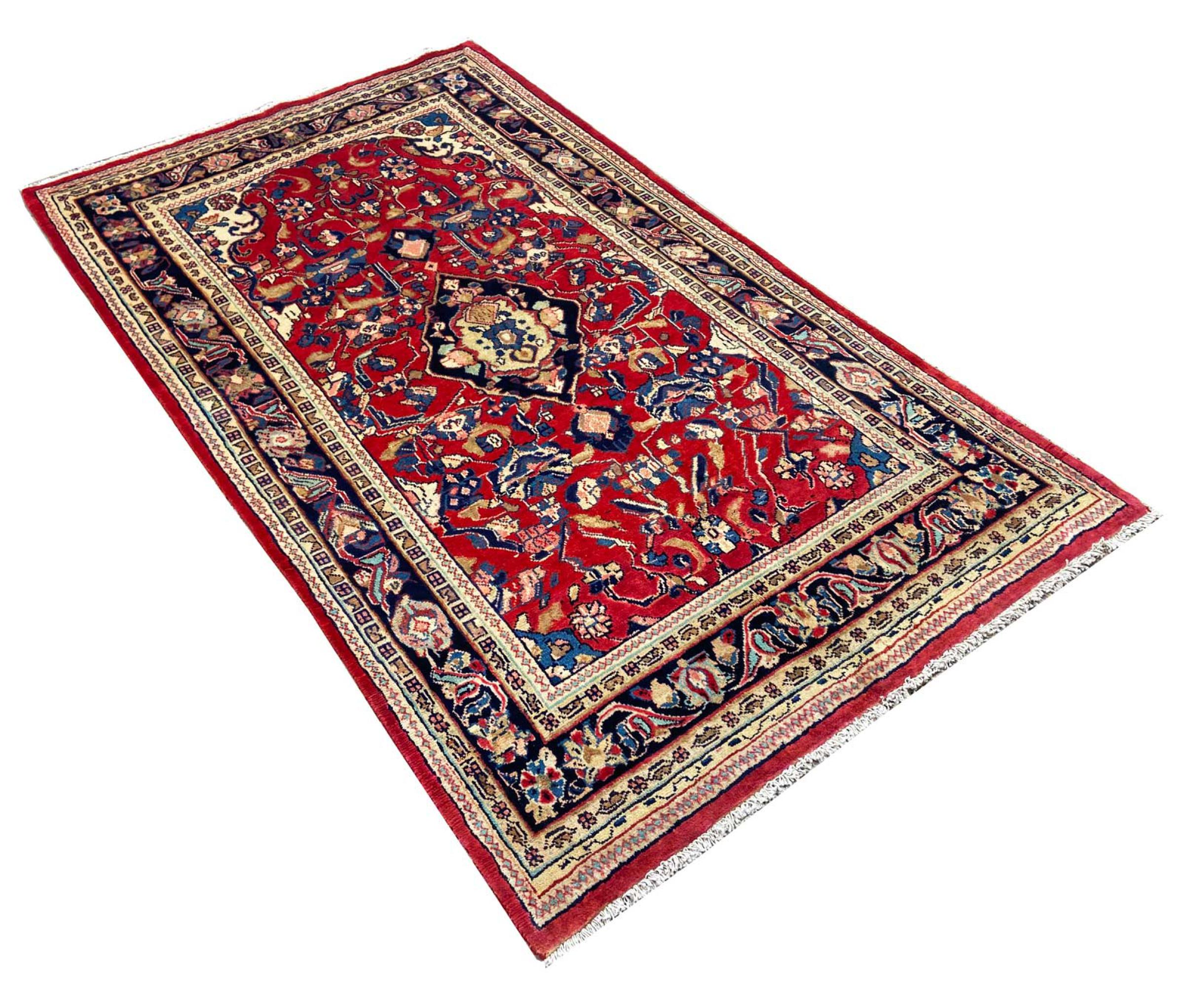 Nº do Tapete: 303171008610958 Tamanho: 231x132 cm Espessura: aproximadamente 12 mm Nós: 128 000 - 160 000 / m² Processamento: Atado à mão Veludo: Lã tecida à mão Urdidura: Algodão Origem: Pérsia / Iran Idade: Novo Peso: aproximadamente 11 kg Também conhecido como Mahalat Em armazém: Único - Apenas 1 em stock