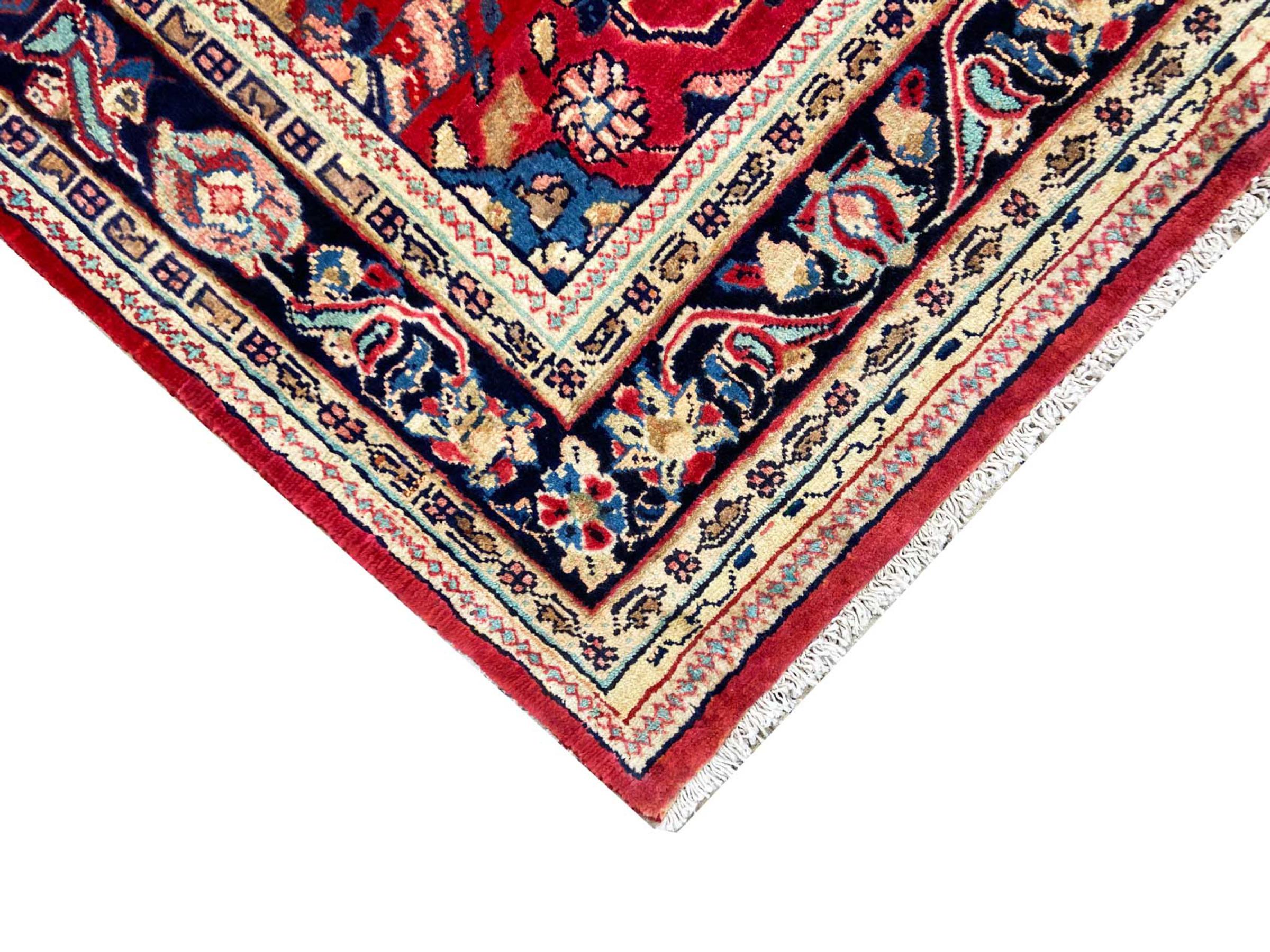 Este tapete oriental vem da proveniência de Mahal, localizada no centro-oeste do Irã. O design brilha em um esquema de cores amigável com cores harmoniosamente coordenadas. A moldura detalhada encena elegantemente os motivos finamente trabalhados no campo interno. Como um genuíno tapete persa feito à mão de qualidade robusta, o modelo é estético e durável ao mesmo tempo - ideal para o seu corredor ou sala de estar.
