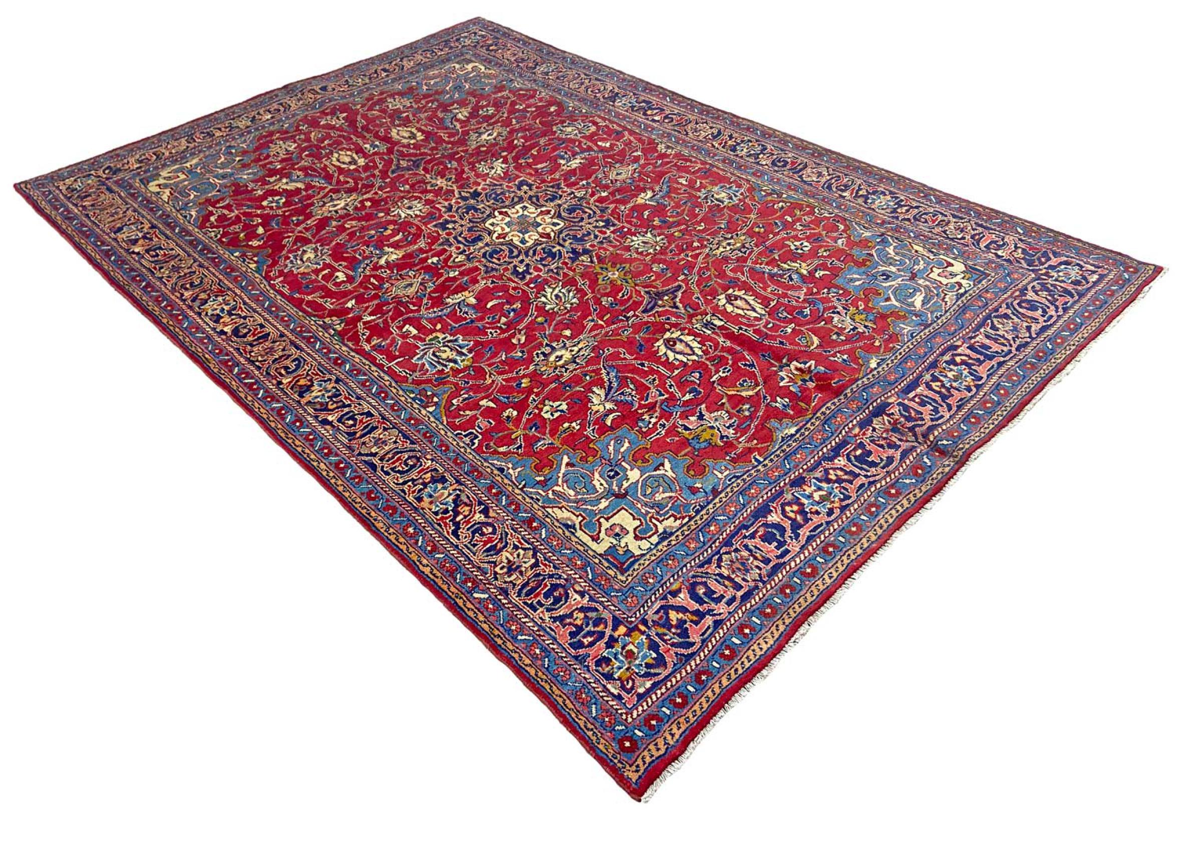 Nº do Tapete: 303081004678939 Tamanho: 309x209 cm Espessura: aproximadamente 12 mm Nós: 128 000 - 160 000 / m² Processamento: Atado à mão Veludo: Lã tecida à mão Urdidura: Algodão Origem: Pérsia / Iran Idade: Novo Peso: aproximadamente 23 kg Também conhecido como Mahalat Em armazém: Único - Apenas 1 em stock