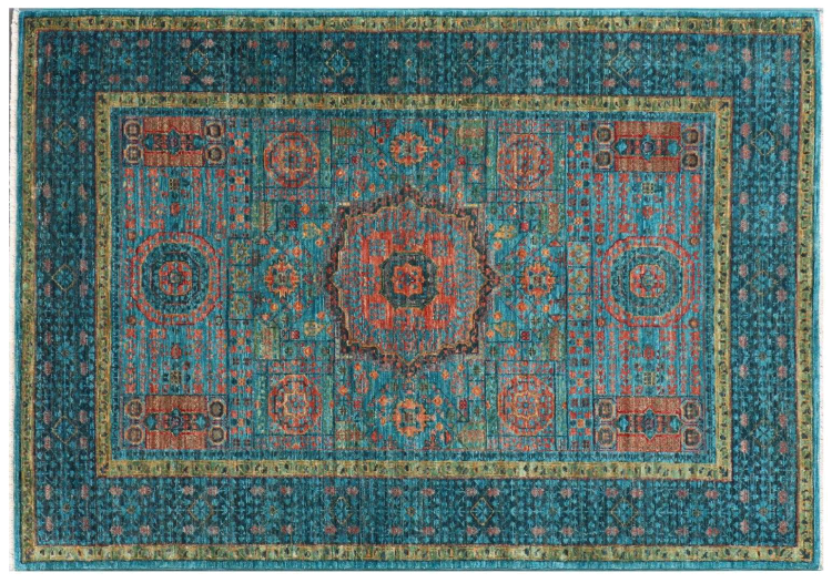 Este tapete é feito de lã de ovelha fiada à mão, da mais alta qualidade. Especialmente no Irão (antiga Pérsia), Afeganistão e Paquistão, a lã ainda é fiada à mão antes do início do nó do tapete. A lã tem provado ser um material natural e extremamente resistente ao longo dos séculos. Entre outras coisas, tem propriedades repelentes de impurezas e isolantes térmicos. Ao mesmo tempo, a lã é incomparavelmente macia e tem um brilho natural.