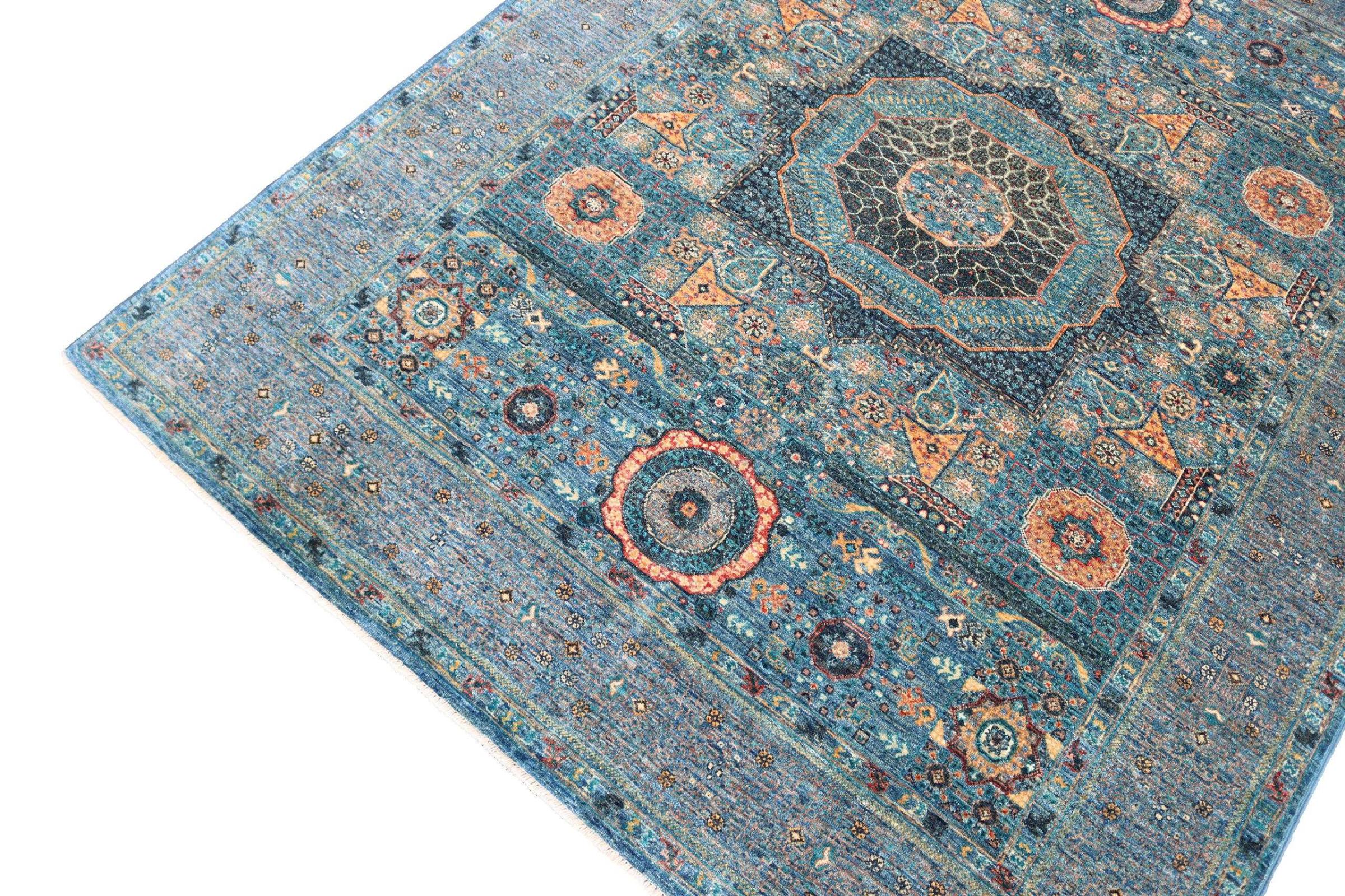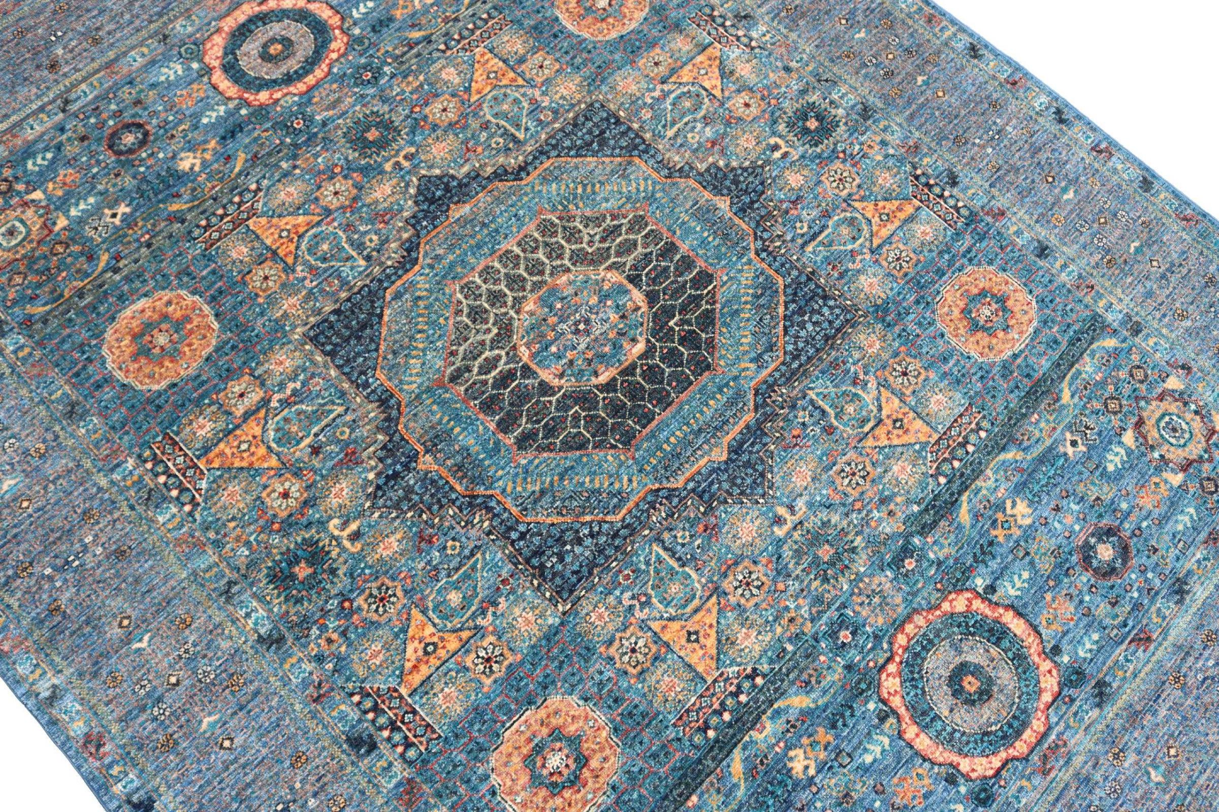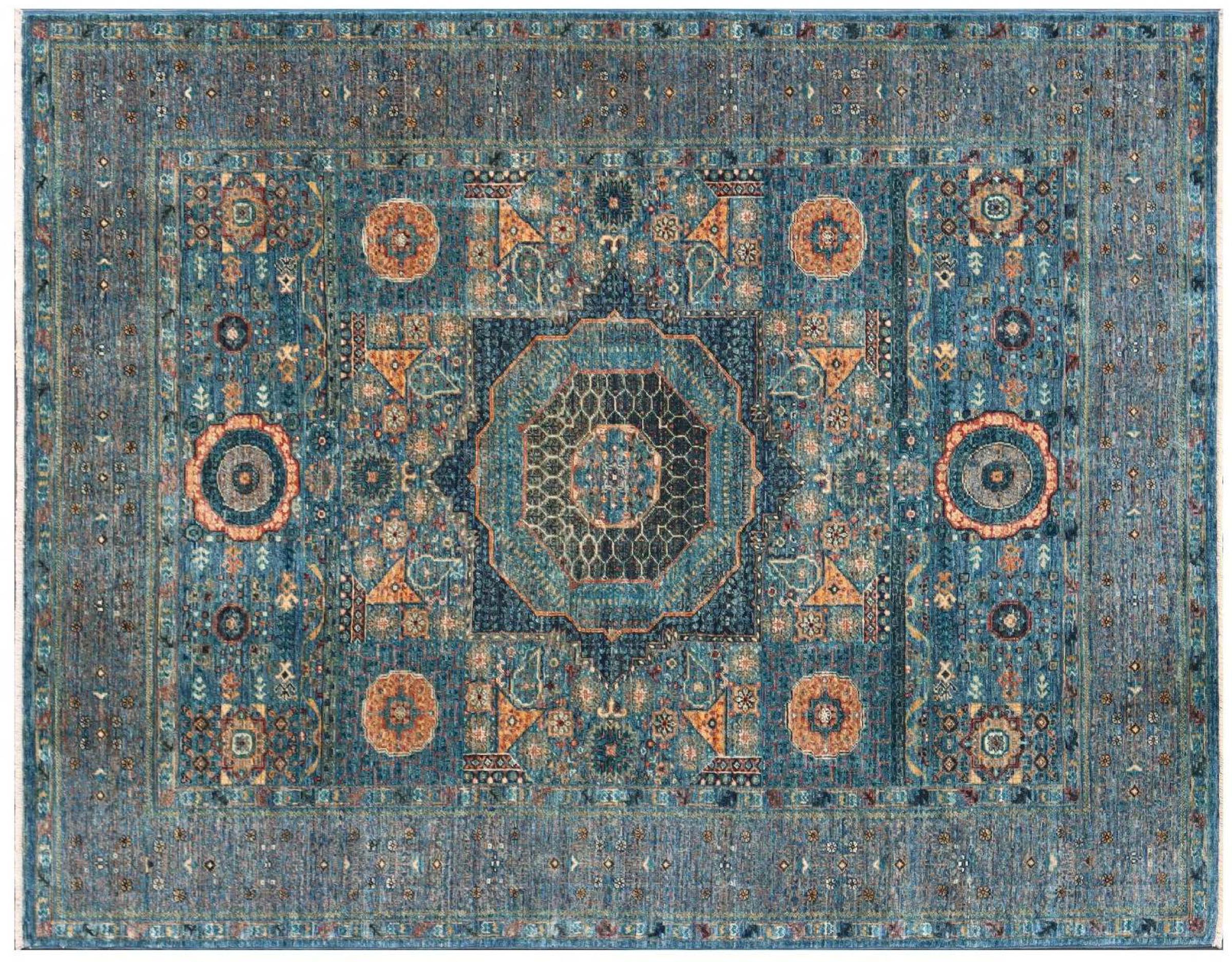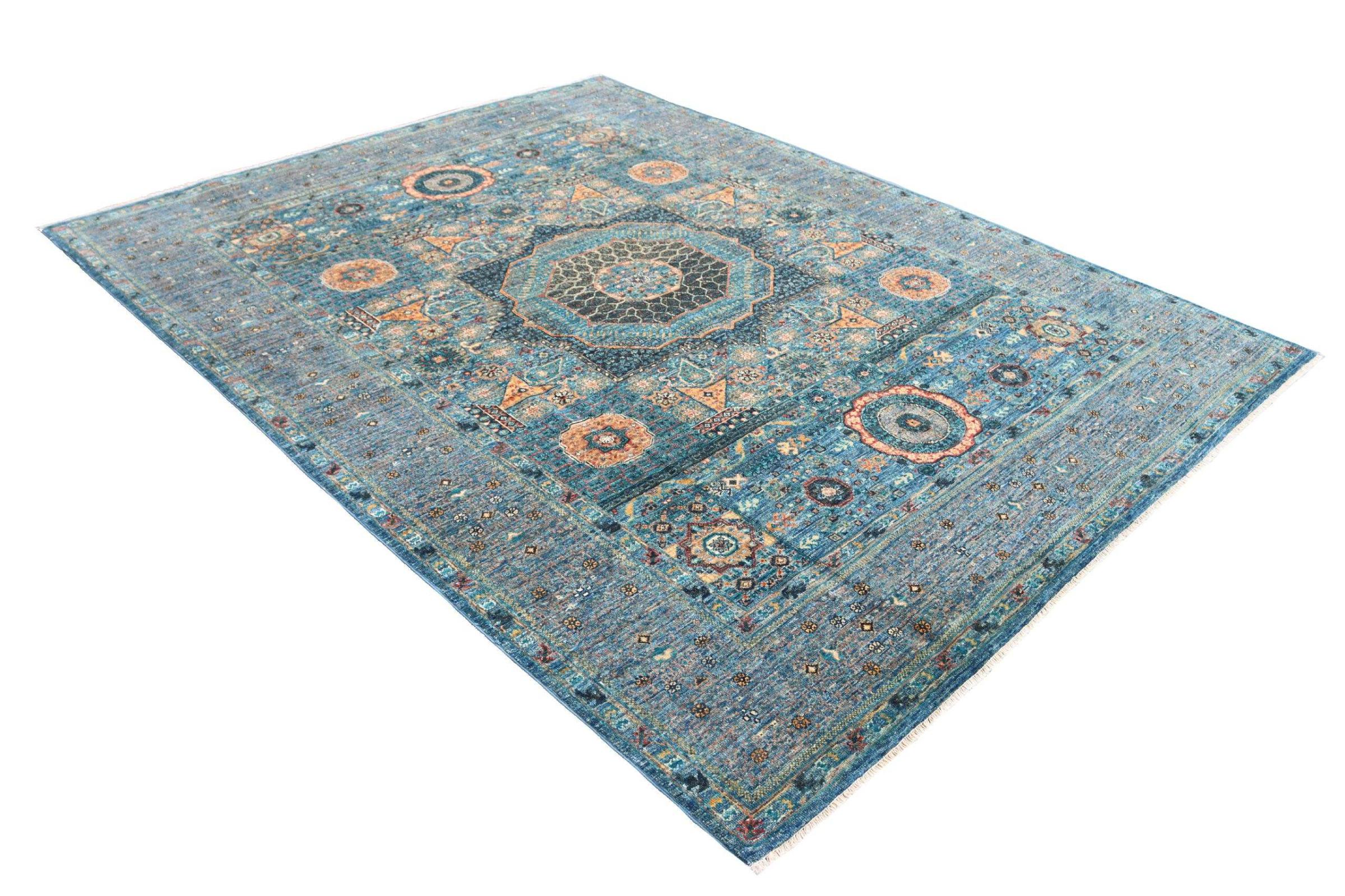 Este Mamluk foi feito à mão e impressiona pela sua elegância emocionante. O design é extravagante e único, mas não muito conhecido. As cores do tapete oriental são combinadas na moda e seus motivos exclusivos garantem vida e admiração ao seu quarto.