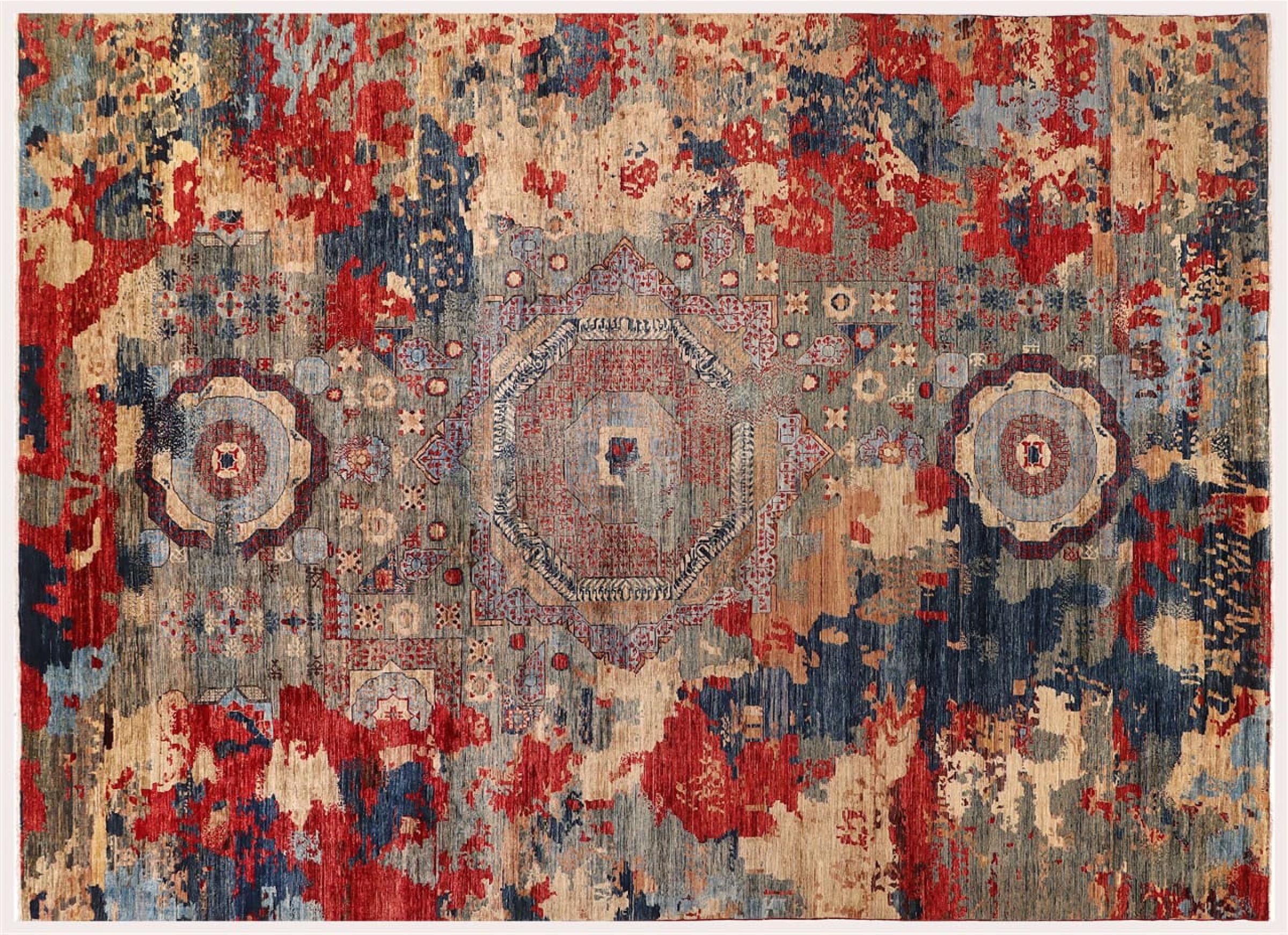 Este Mamluk foi feito à mão e impressiona pela sua elegância emocionante. O design é extravagante e único, mas não muito conhecido. As cores do tapete oriental são combinadas na moda e seus motivos exclusivos garantem vida e admiração ao seu quarto.