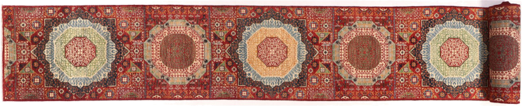 Nº do Tapete: 29909800152518 Tamanho: 910x79 cm Espessura: aproximadamente 6 mm Nós: 160 000 - 200 000 / m² Processamento: Atado à mão Veludo: Lã tecida à mão Urdidura: Algodão Origem: Paquistão Idade: Novo Peso: aproximadamente 22 kg Em armazém: Único - Apenas 1 em stock