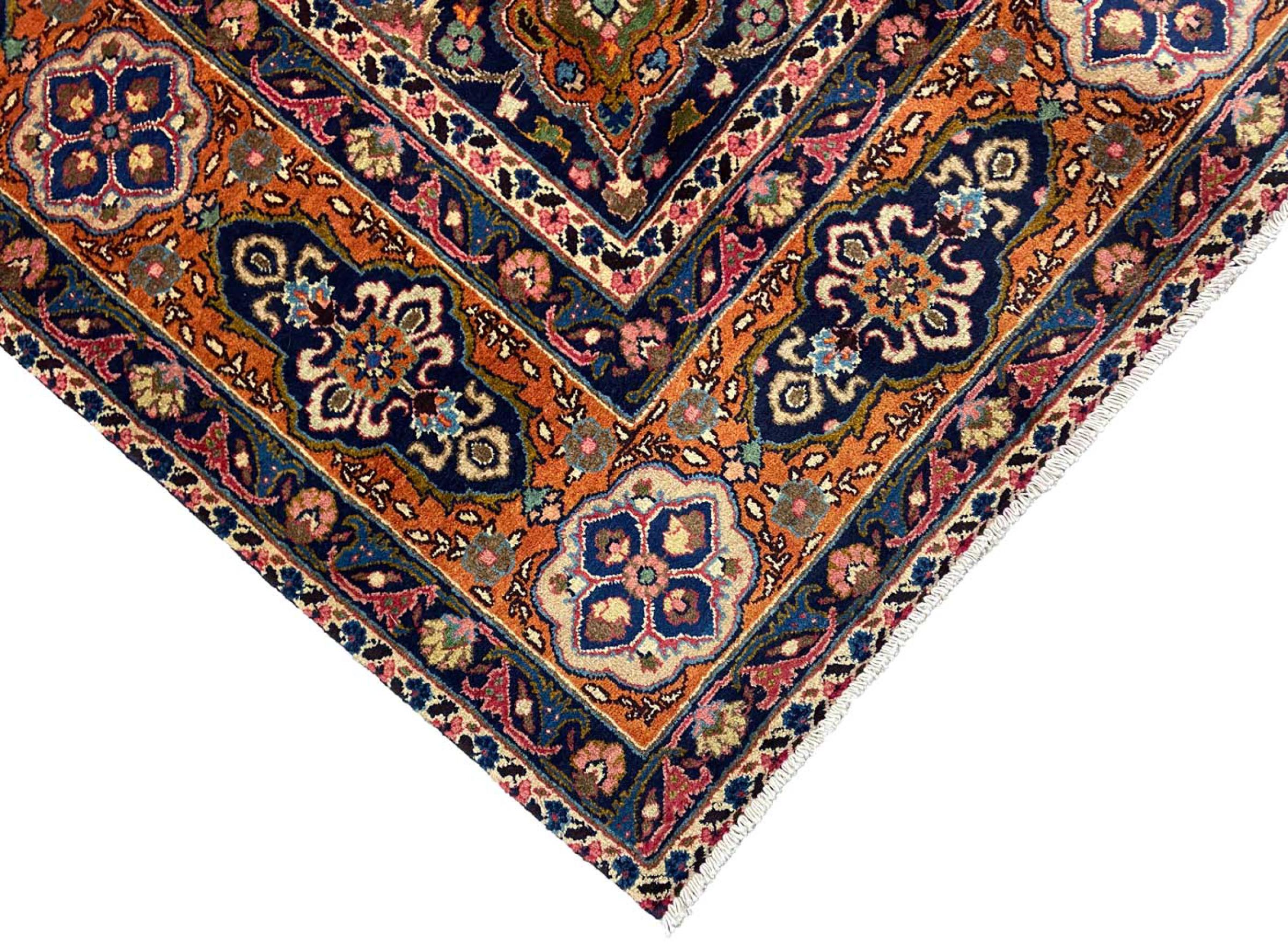 Este tapete de Mashad, uma das maiores cidades do Irão, foi feito à mão com pura lã natural. Todos os anos, milhões de pessoas fazem uma peregrinação a esta cidade sagrada persa. Os tapetes de Mashad são conhecidos pelos seus tamanhos invulgares e pela sua lã de extrema qualidade.
