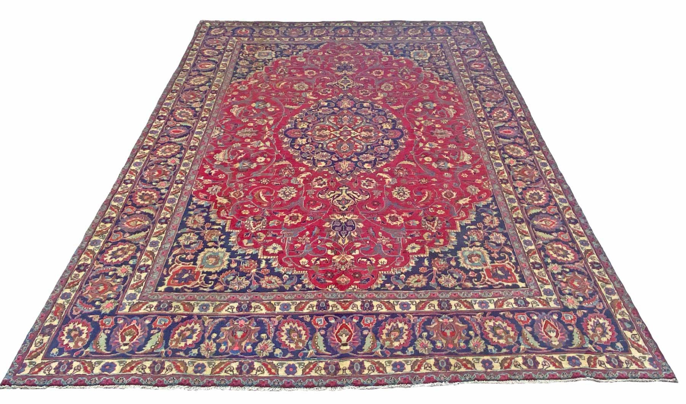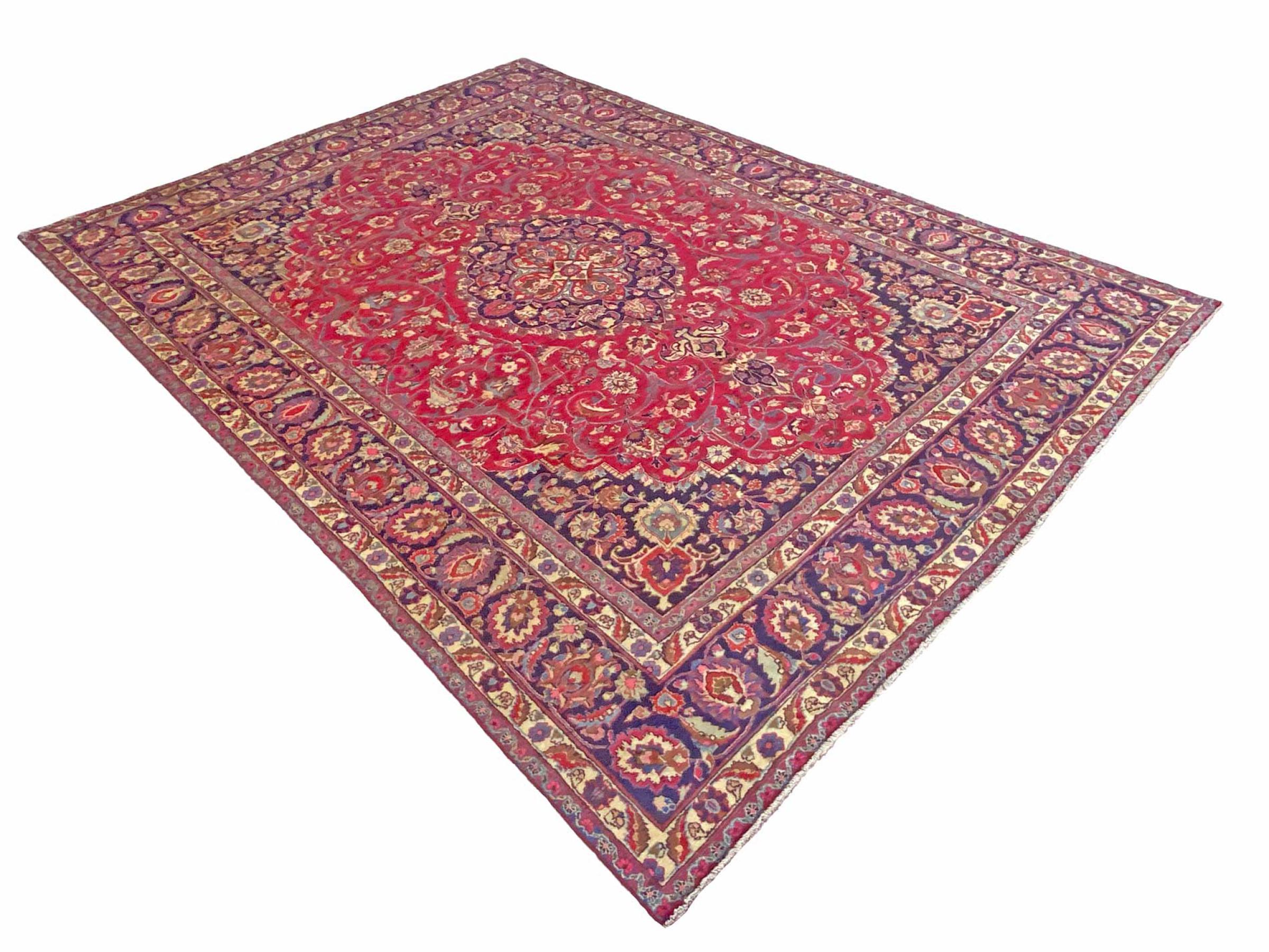 Este tapete de Mashad, uma das maiores cidades do Irão, foi feito à mão com pura lã natural. Todos os anos, milhões de pessoas fazem uma peregrinação a esta cidade sagrada persa. Os tapetes de Mashad são conhecidos pelos seus tamanhos invulgares e pela sua lã de extrema qualidade.