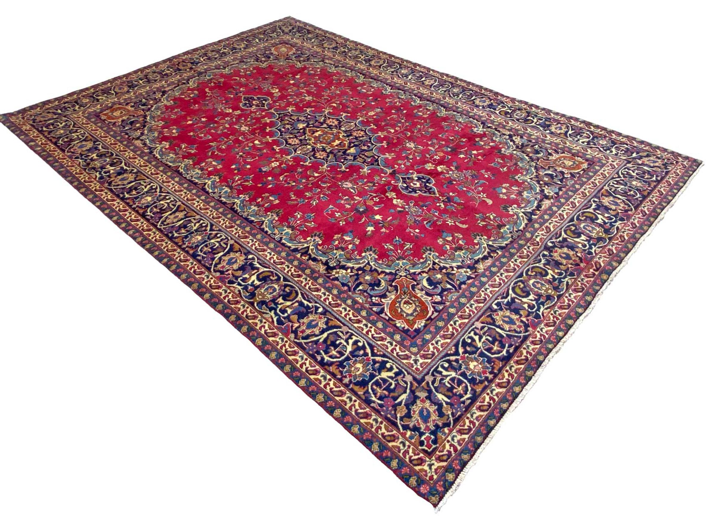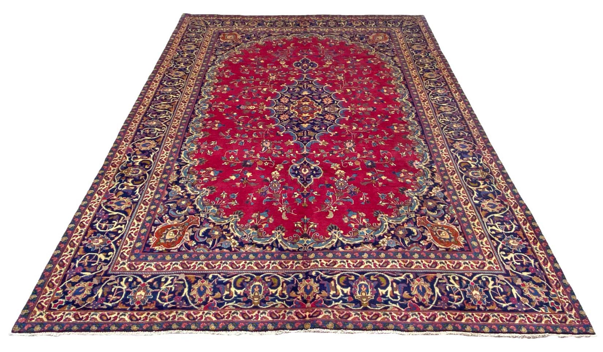 Este tapete de Mashad, uma das maiores cidades do Irão, foi feito à mão com pura lã natural. Todos os anos, milhões de pessoas fazem uma peregrinação a esta cidade sagrada persa. Os tapetes de Mashad são conhecidos pelos seus tamanhos invulgares e pela sua lã de extrema qualidade.