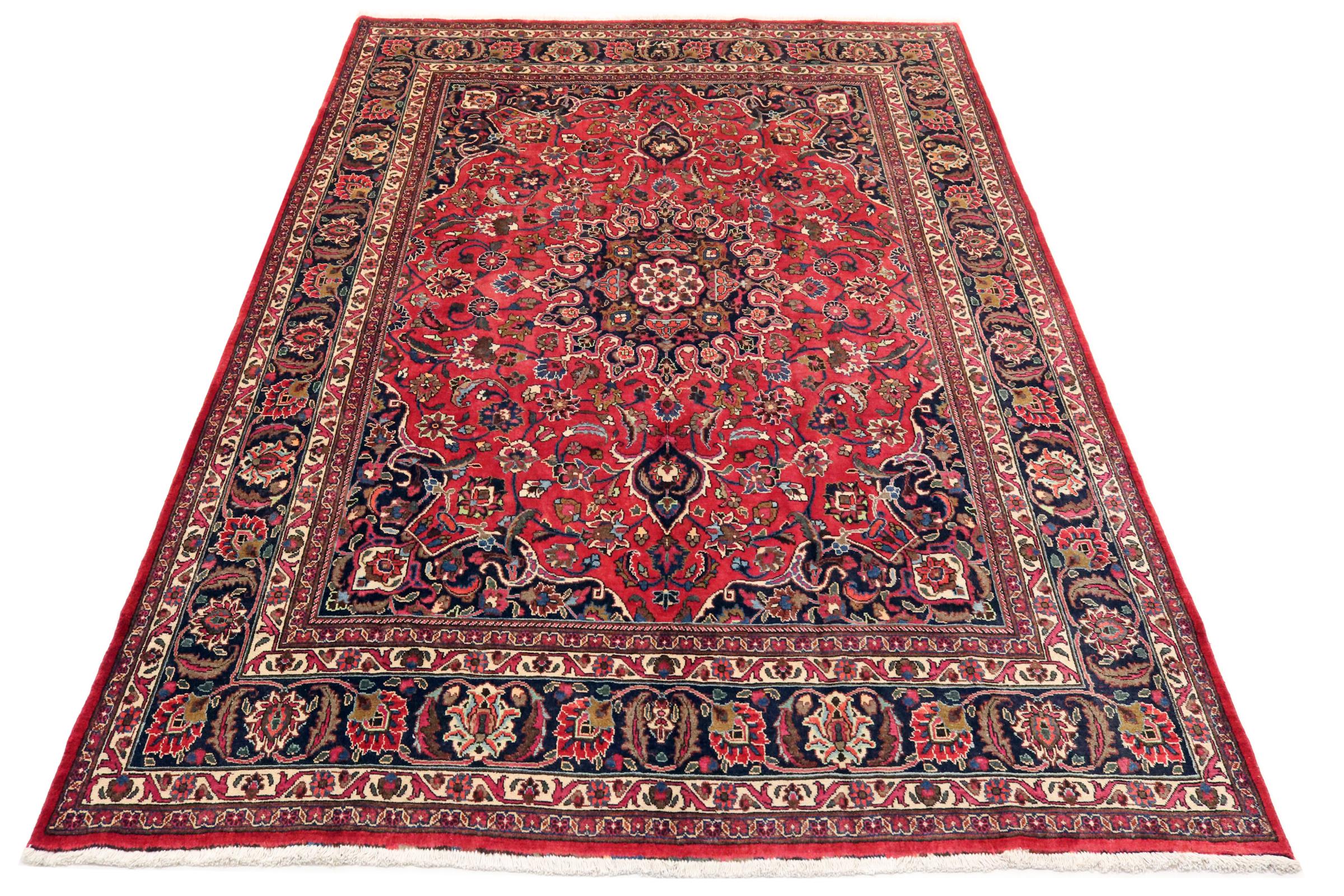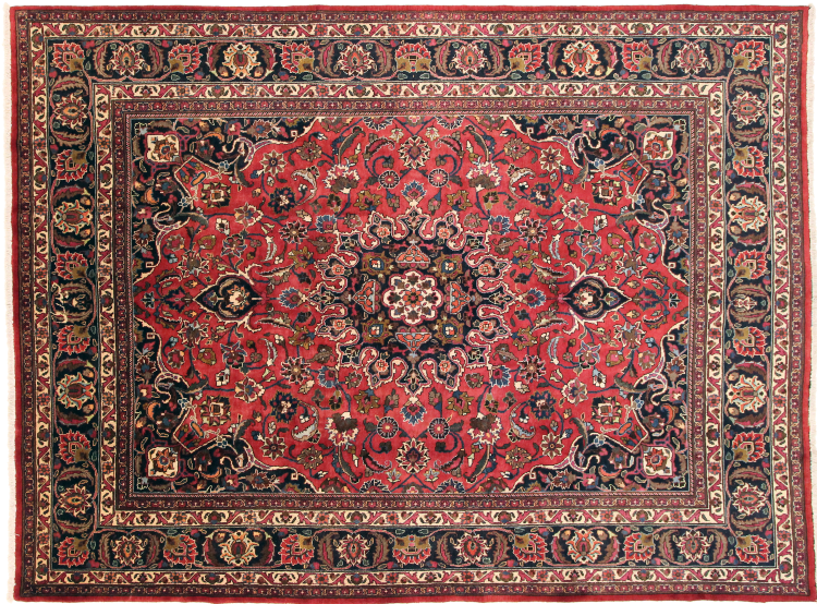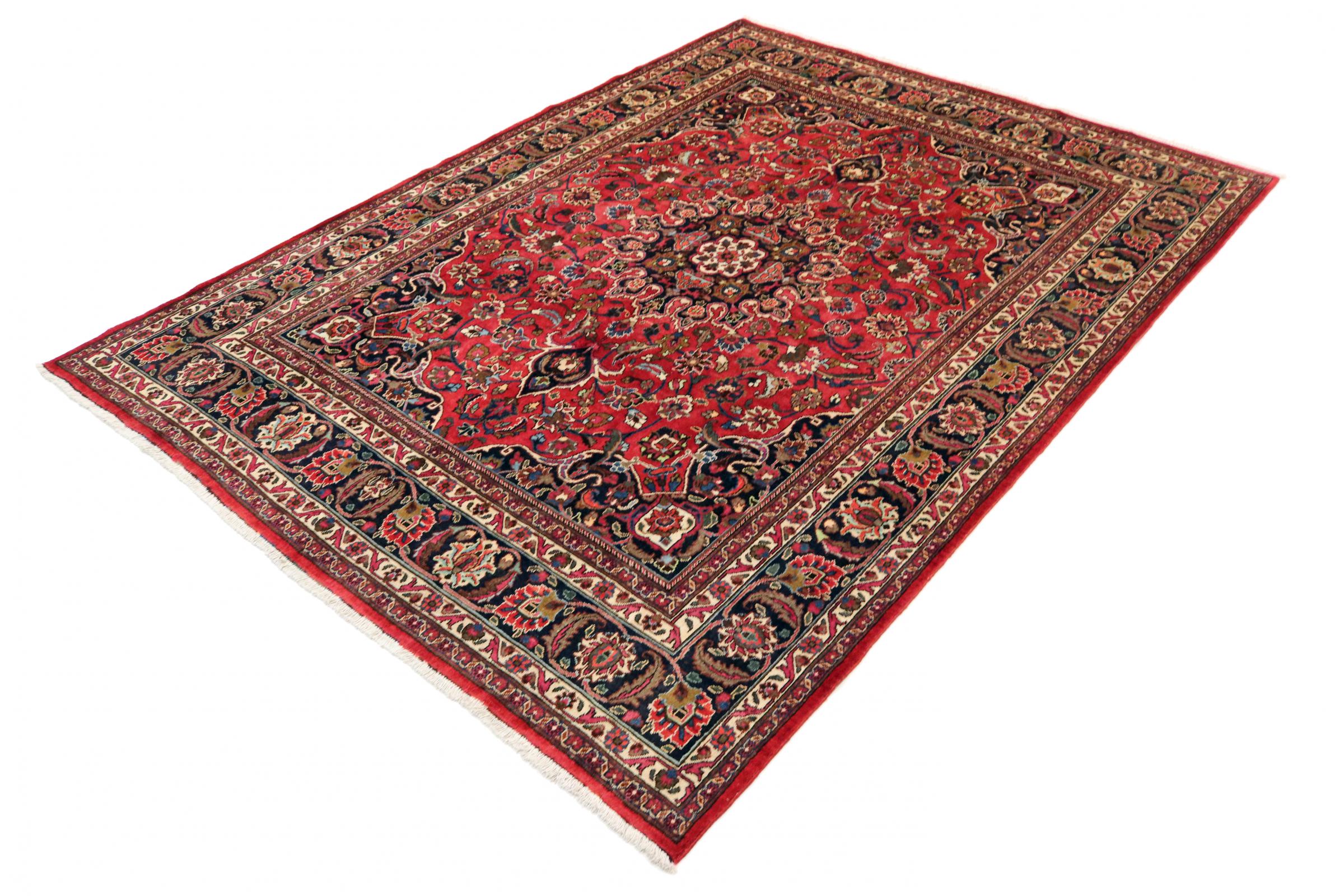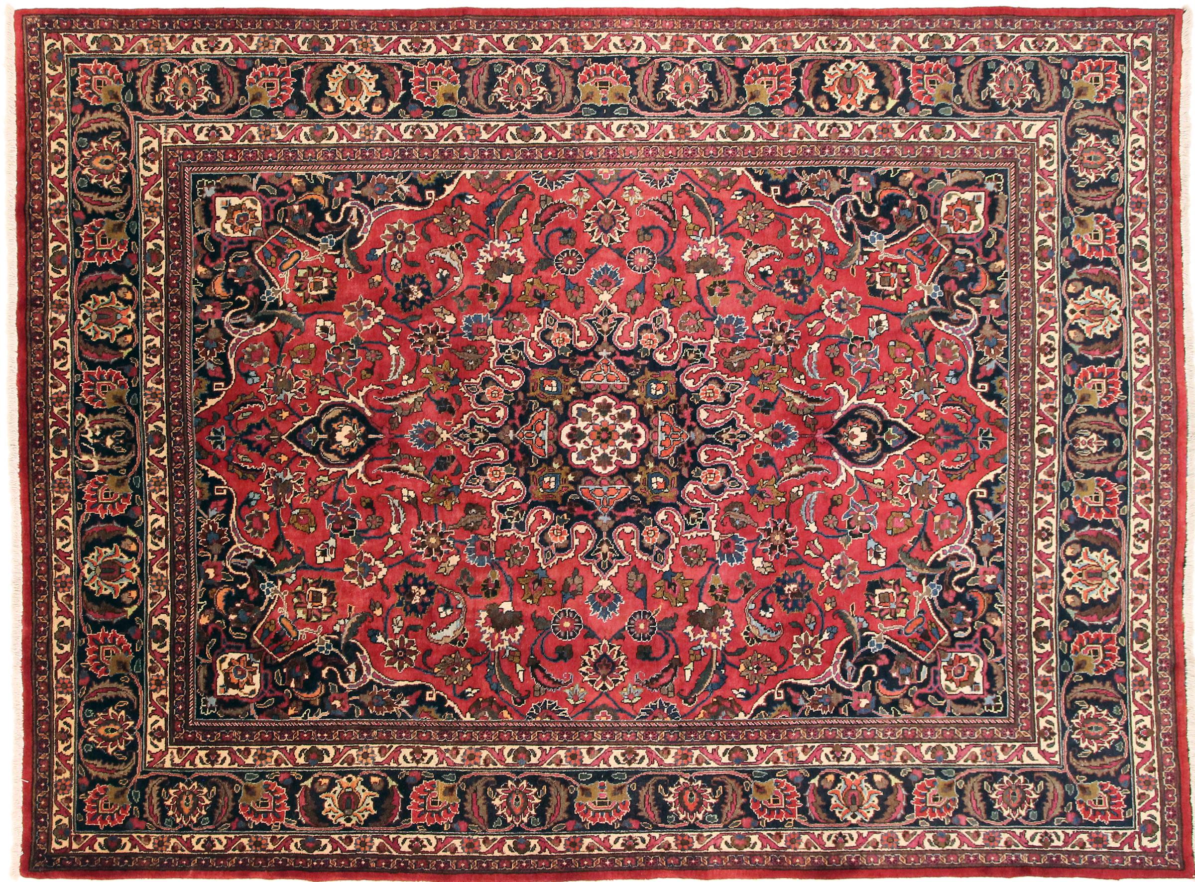Este tapete de Mashad, uma das maiores cidades do Irão, foi feito à mão com pura lã natural. Todos os anos, milhões de pessoas fazem uma peregrinação a esta cidade sagrada persa. Os tapetes de Mashad são conhecidos pelos seus tamanhos invulgares e pela sua lã de extrema qualidade.