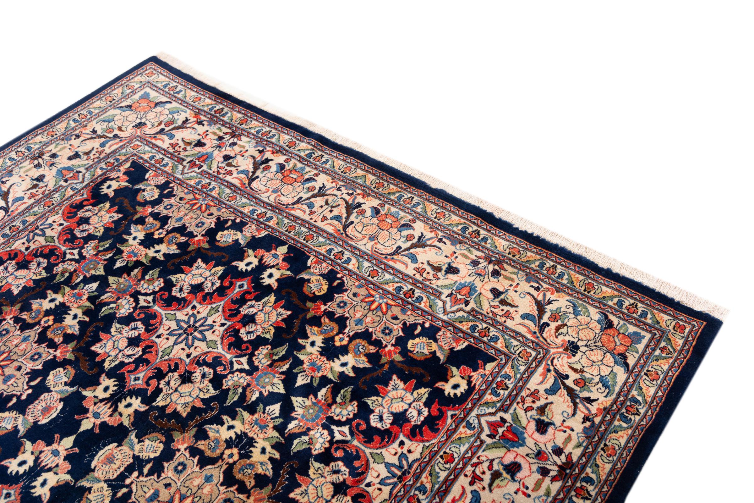 Este tapete de Mashad, uma das maiores cidades do Irão, foi feito à mão com pura lã natural. Todos os anos, milhões de pessoas fazem uma peregrinação a esta cidade sagrada persa. Os tapetes de Mashad são conhecidos pelos seus tamanhos invulgares e pela sua lã de extrema qualidade.