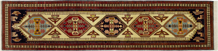 Nº do Tapete: 303866003069357 Tamanho: 273x74 cm Espessura: aproximadamente 5 mm Nós: 128 000 - 160 000 / m² Processamento: Atado à mão Veludo: Lã tecida à mão Urdidura: Algodão Origem: Pérsia / Iran Idade: Novo Peso: aproximadamente 7 kg Em armazém: Único - Apenas 1 em stock