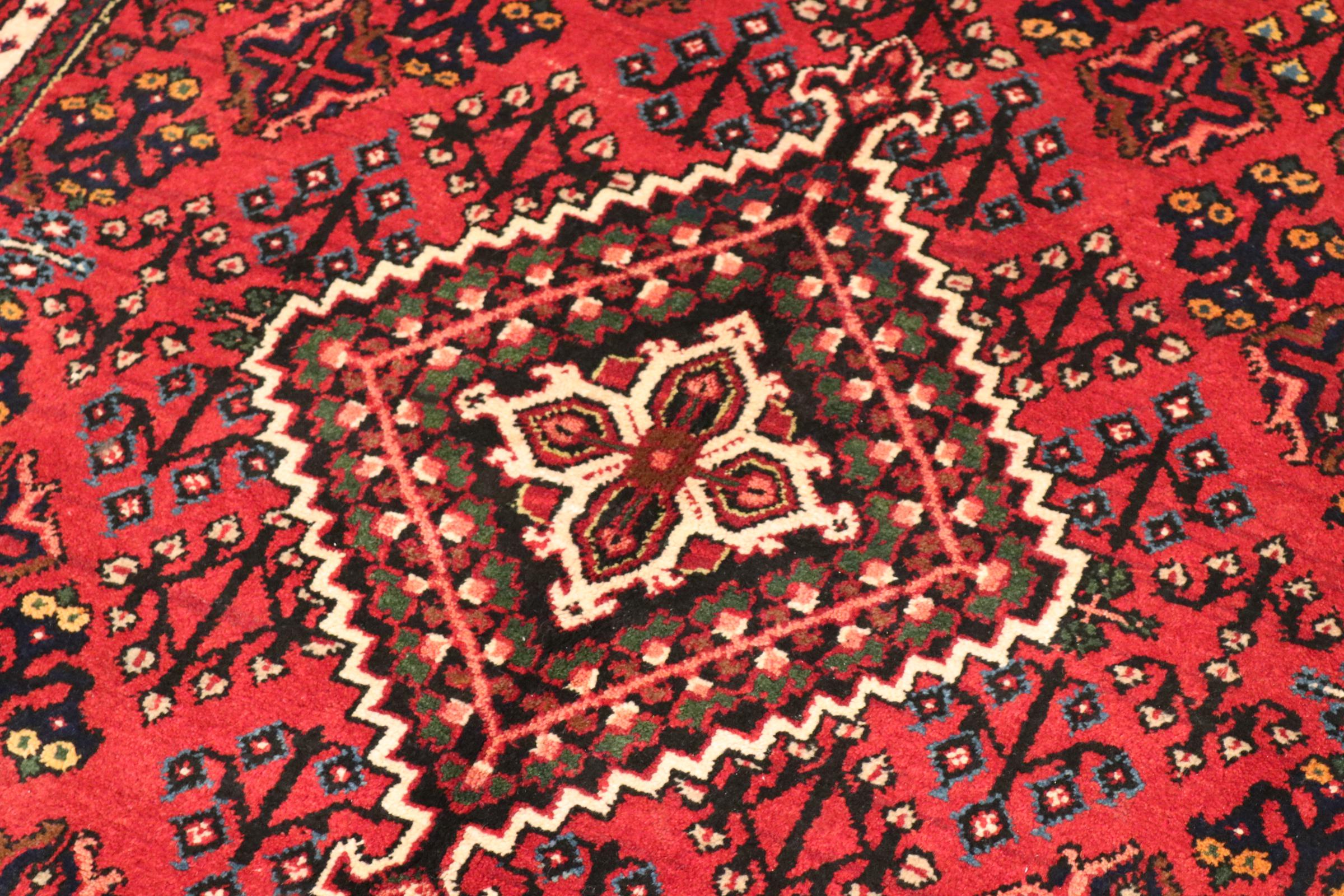 Este tapete pertence a tapetes de aldeia e nómadas do Irão, antiga Pérsia. Este tipo de tapete é atado à mão em cidades mais pequenas e aldeias da velha tradição. Mesmo os nómadas ainda atam tapetes persas ao ar livre. Os tapetes são atados sem padrão e completamente a partir da cabeça. Caracterizam-se por ornamentos clássicos, dispostos em padrões rectos e geométricos. Graças à sua origem cultural-tradicional, estes tapetes têm um carácter único que encarna a antiga Pérsia.