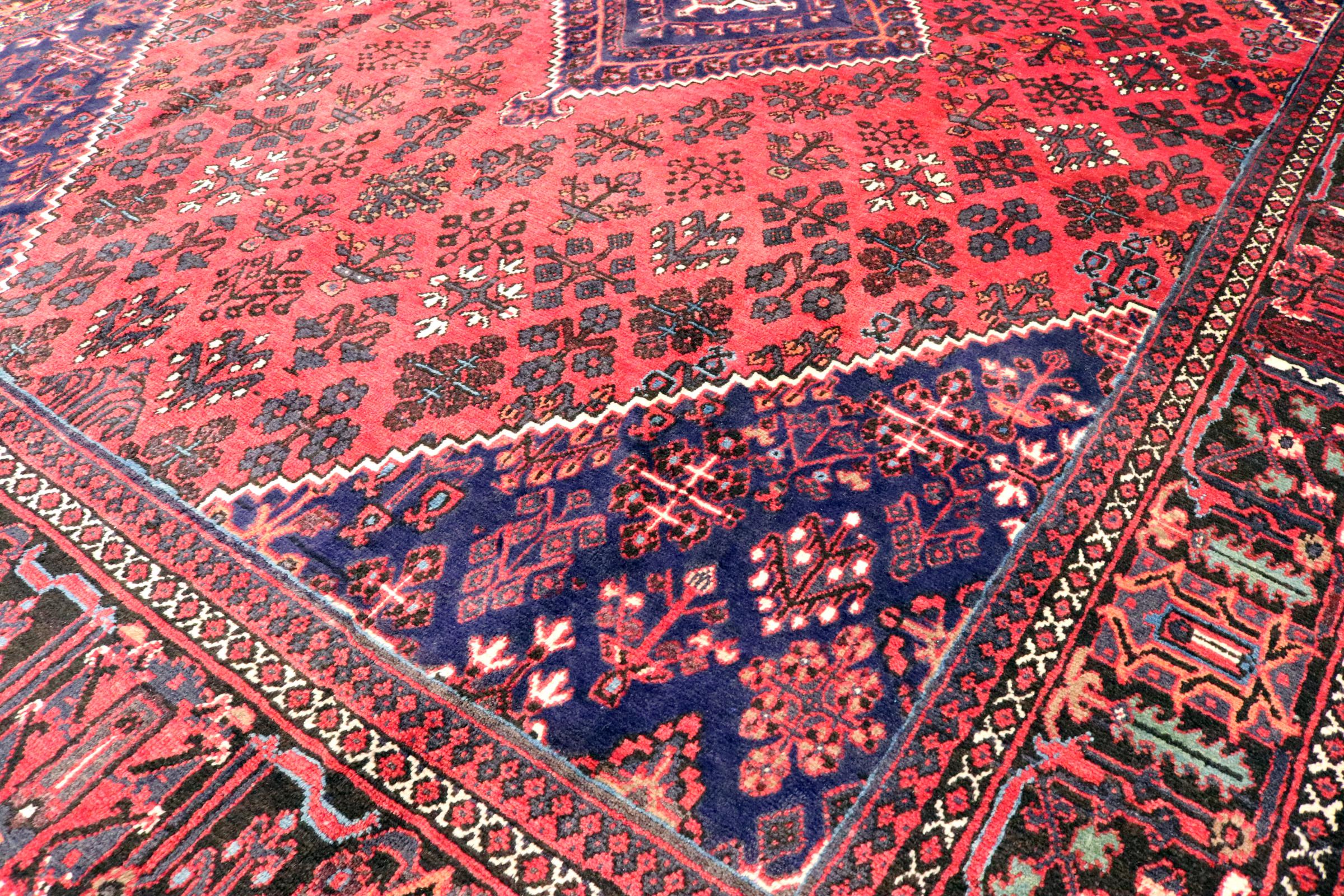 Este tapete pertence a tapetes de aldeia e nómadas do Irão, antiga Pérsia. Este tipo de tapete é atado à mão em cidades mais pequenas e aldeias da velha tradição. Mesmo os nómadas ainda atam tapetes persas ao ar livre. Os tapetes são atados sem padrão e completamente a partir da cabeça. Caracterizam-se por ornamentos clássicos, dispostos em padrões rectos e geométricos. Graças à sua origem cultural-tradicional, estes tapetes têm um carácter único que encarna a antiga Pérsia.