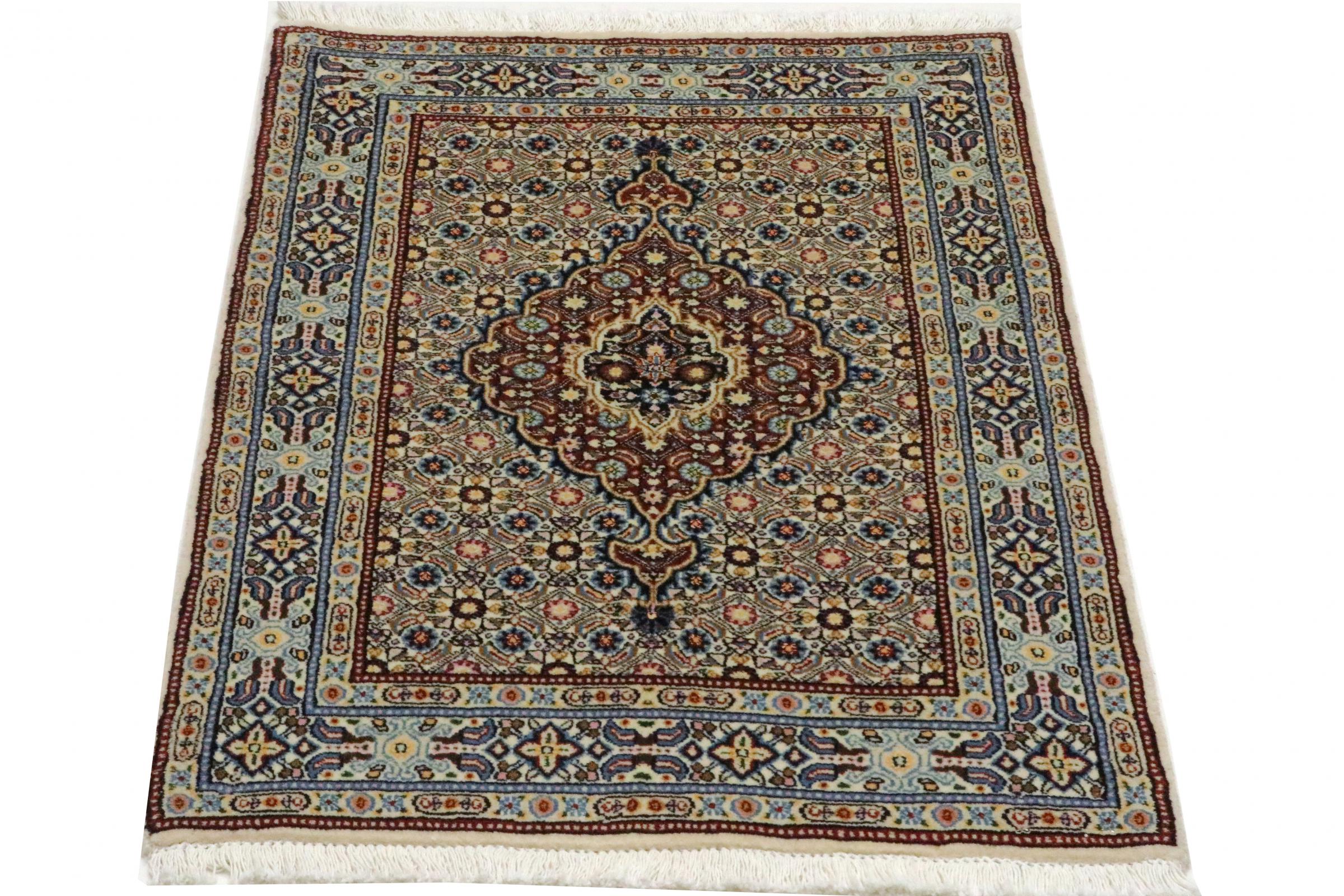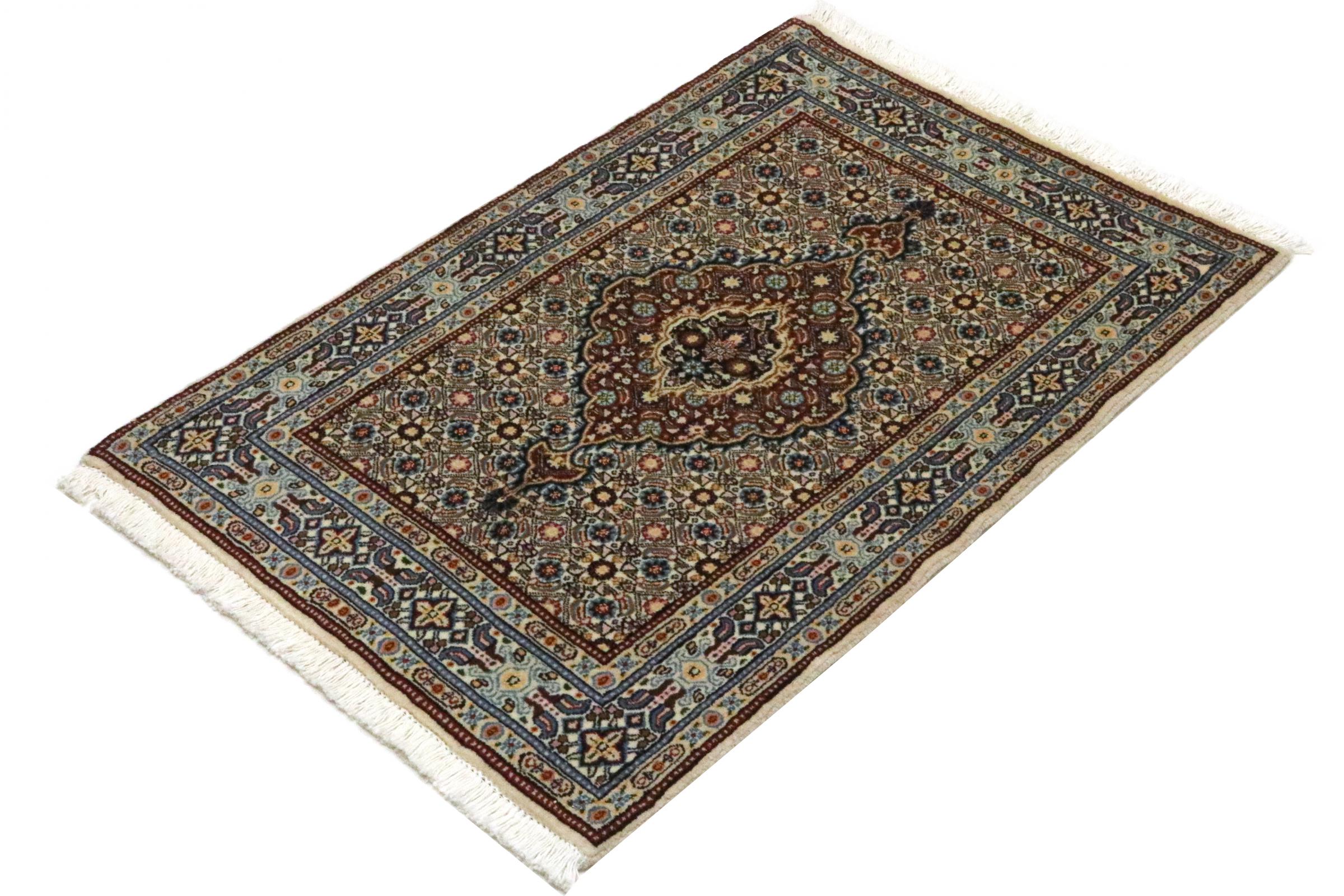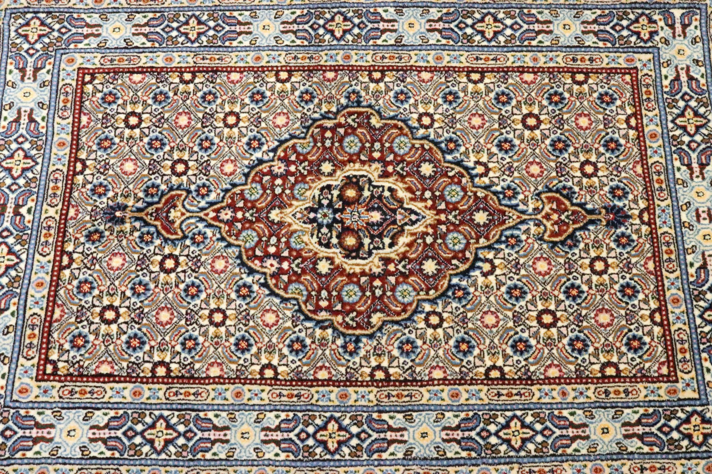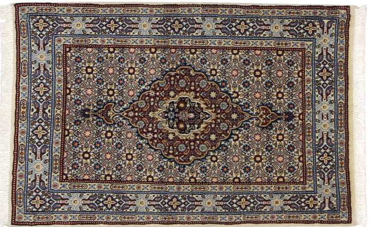 Moud está no Irão, a sul de Mashhad. Como cidade da antiga Pérsia, a sua tradição de nó de tapete remonta a muitos séculos, se não milhares de anos. Os tapetes de Moud têm uma excelente reputação. São feitos com o famoso nó persa. Tipicamente, os tapetes Persas Moud têm um padrão de cobertura total. O padrão Jardim com motivos dos jardins persas ou o padrão Herati.