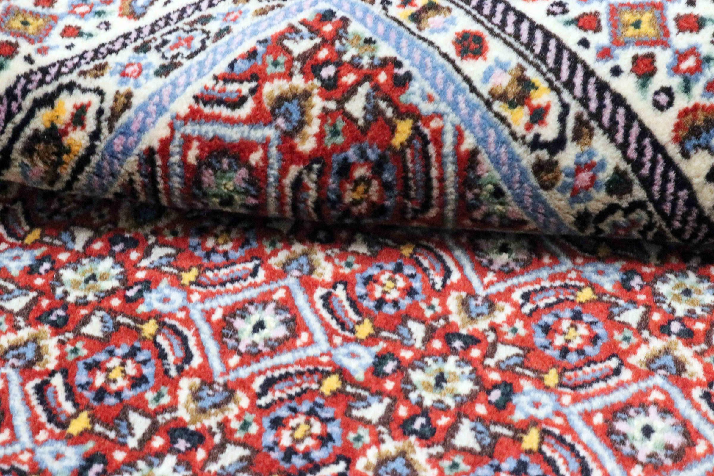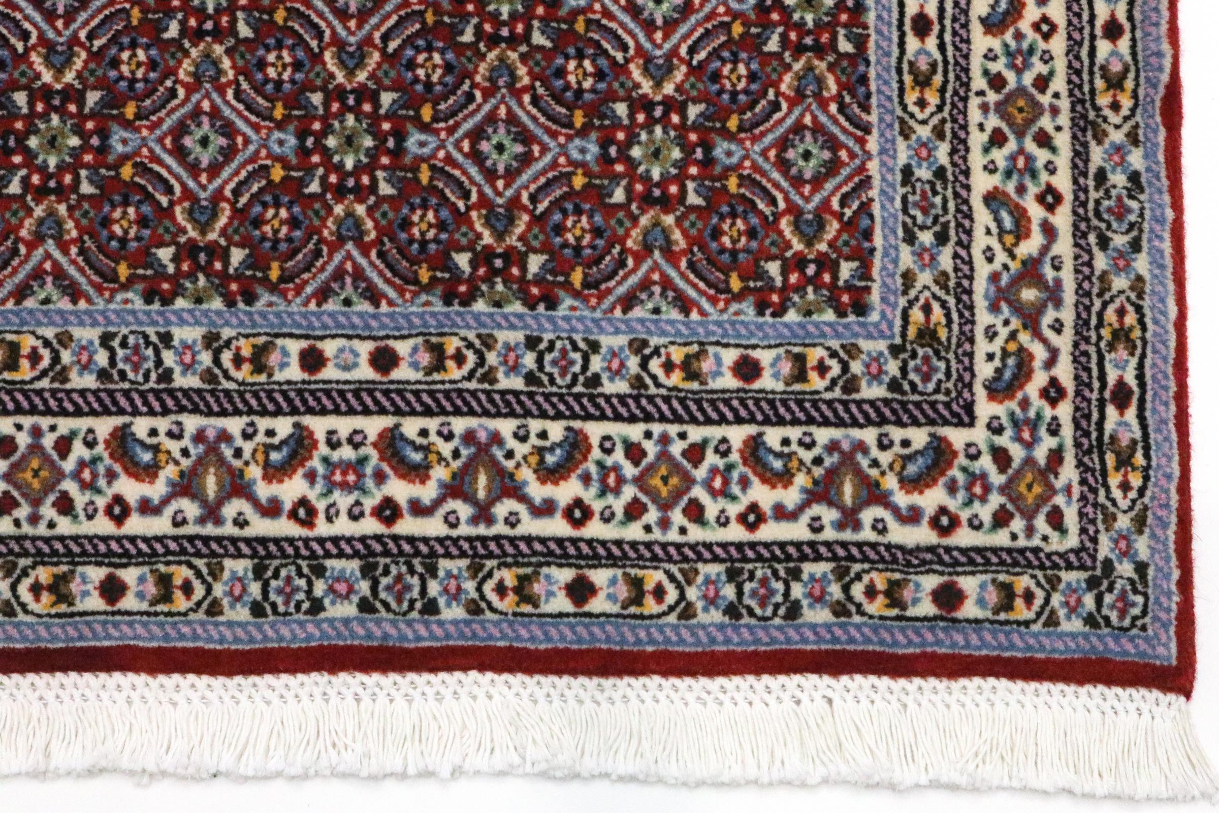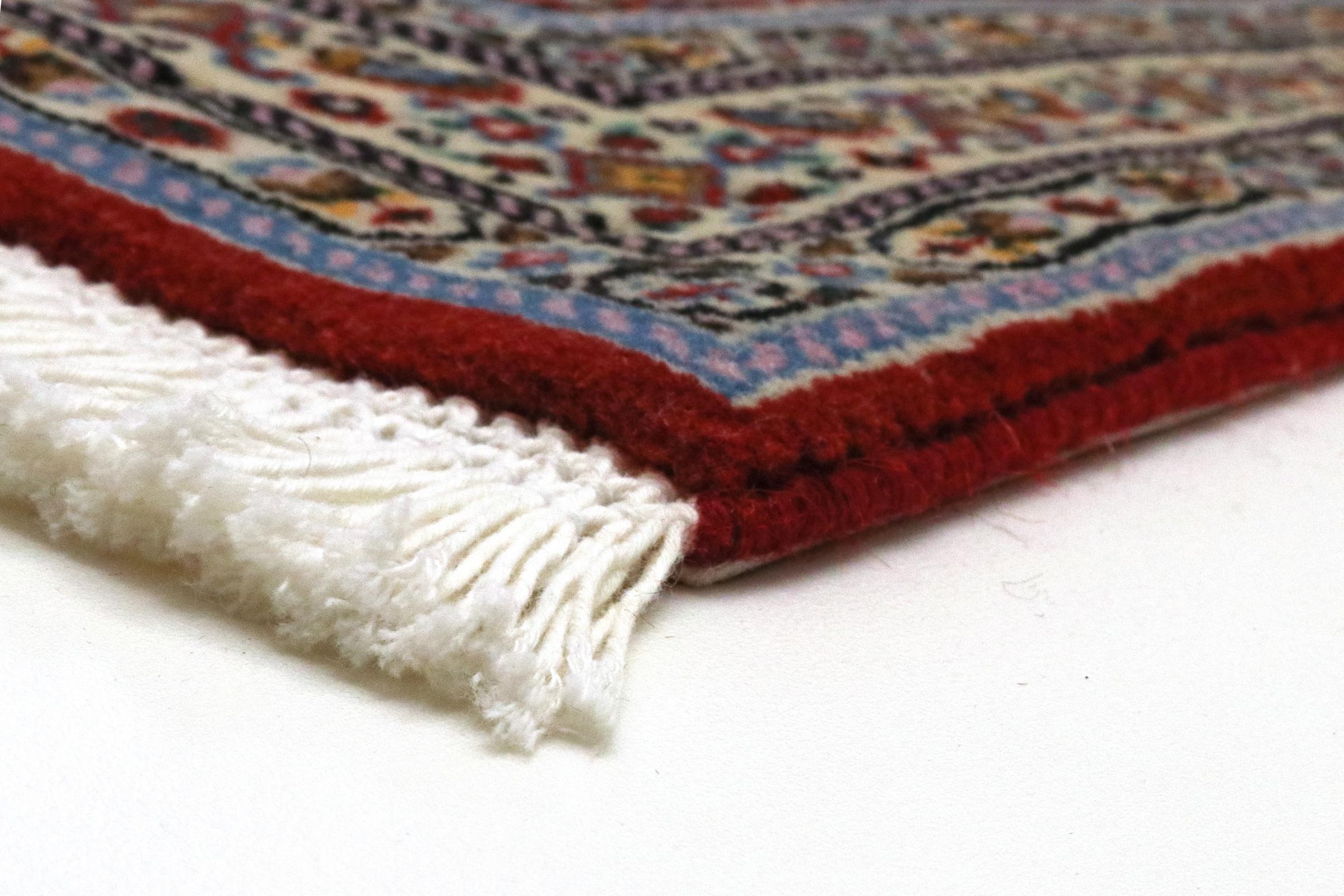Este tapete de Moud, uma cidade situada 300 km a sul de Mashhad, impressiona à primeira vista. O padrão típico Herati ou desenho de jardim é apreciado por conhecedores e amantes de tapetes persas genuínos. Se procura um tapete feito à mão de excelente qualidade com um design muito distinto e caraterístico, está absolutamente certo com este tipo de tapete.