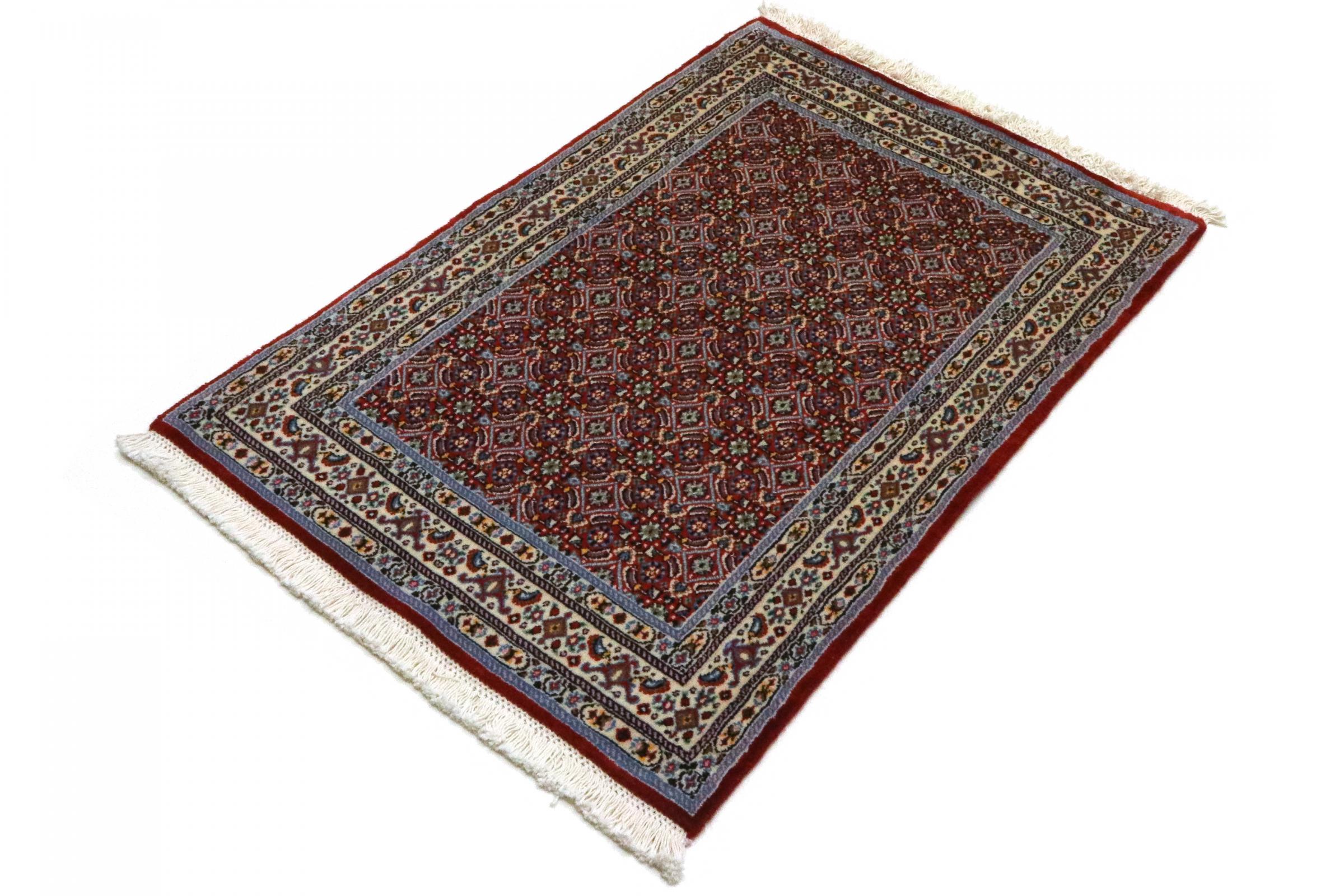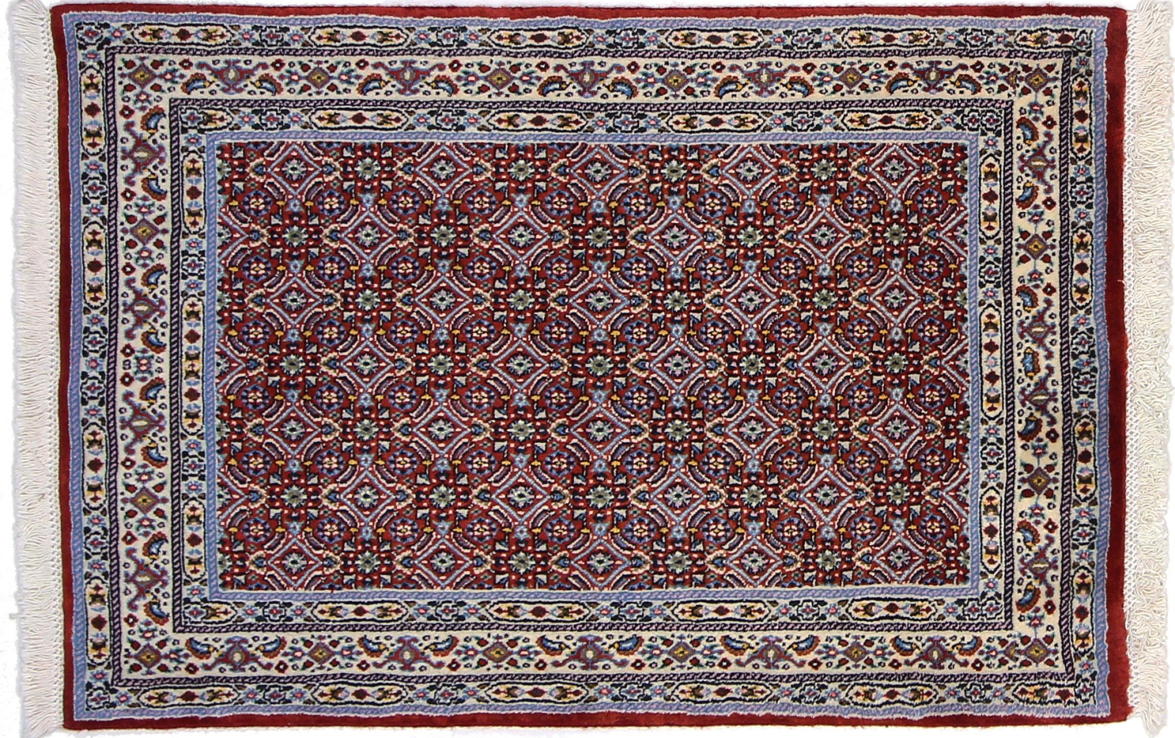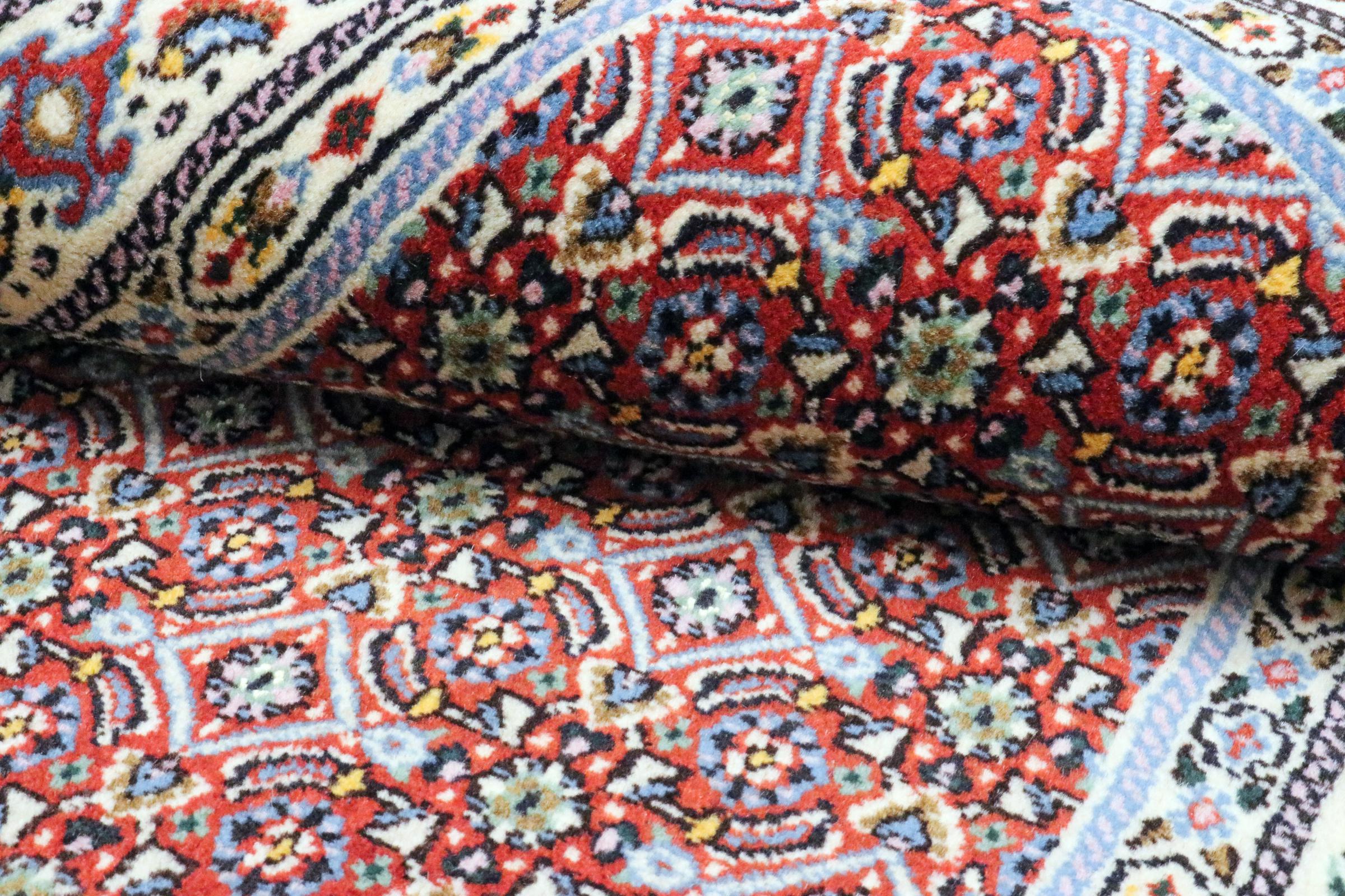Este tapete de Moud, uma cidade situada 300 km a sul de Mashhad, impressiona à primeira vista. O padrão típico Herati ou desenho de jardim é apreciado por conhecedores e amantes de tapetes persas genuínos. Se procura um tapete feito à mão de excelente qualidade com um design muito distinto e caraterístico, está absolutamente certo com este tipo de tapete.