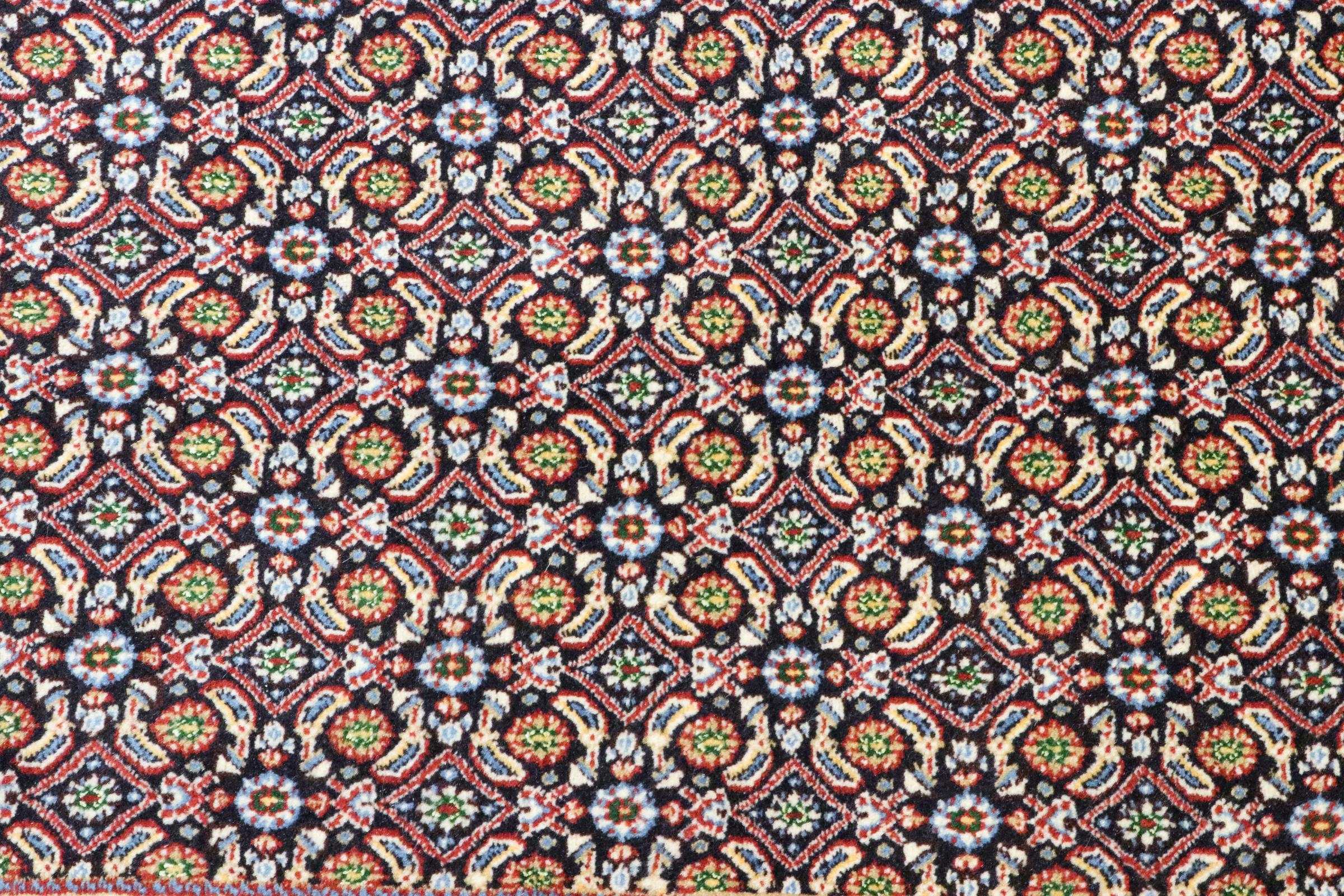 Este tapete de Moud, uma cidade situada 300 km a sul de Mashhad, impressiona à primeira vista. O padrão típico Herati ou desenho de jardim é apreciado por conhecedores e amantes de tapetes persas genuínos. Se procura um tapete feito à mão de excelente qualidade com um design muito distinto e caraterístico, está absolutamente certo com este tipo de tapete.
