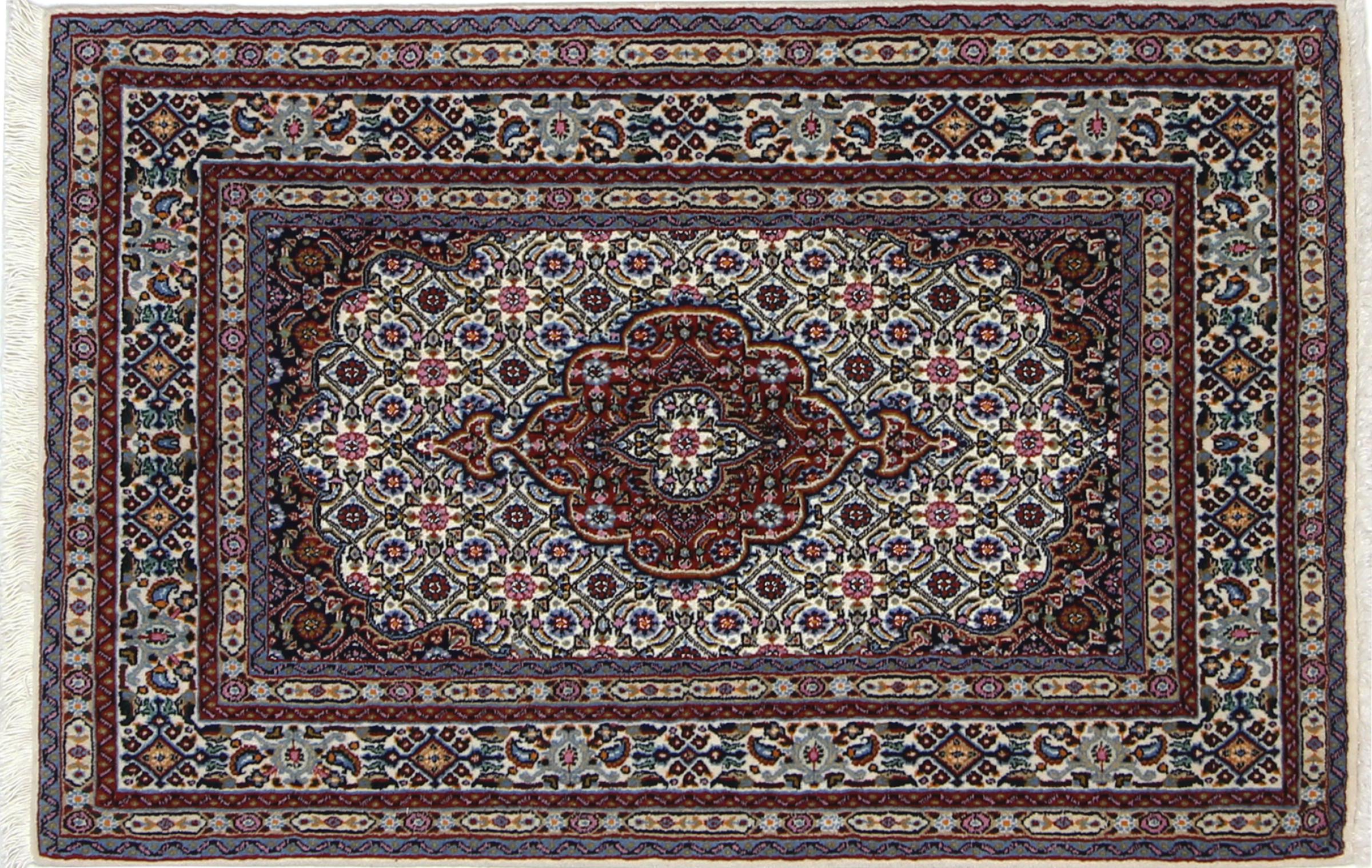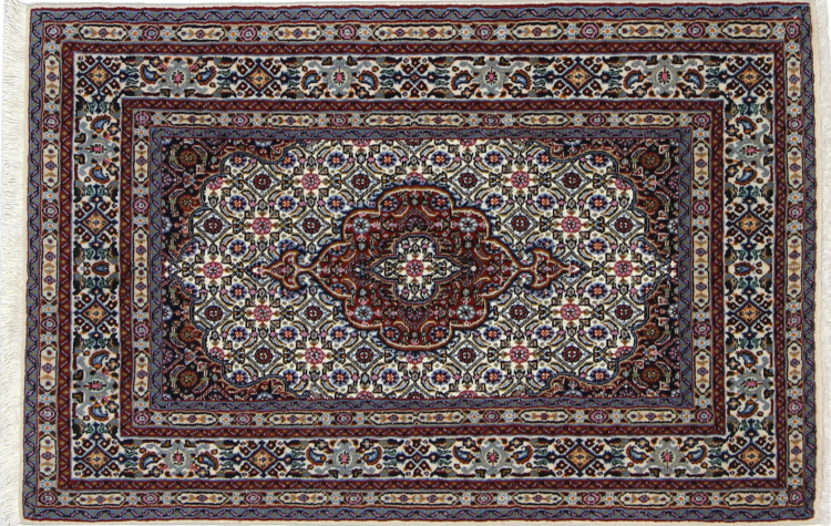 Moud está no Irão, a sul de Mashhad. Como cidade da antiga Pérsia, a sua tradição de nó de tapete remonta a muitos séculos, se não milhares de anos. Os tapetes de Moud têm uma excelente reputação. São feitos com o famoso nó persa. Tipicamente, os tapetes Persas Moud têm um padrão de cobertura total. O padrão Jardim com motivos dos jardins persas ou o padrão Herati.